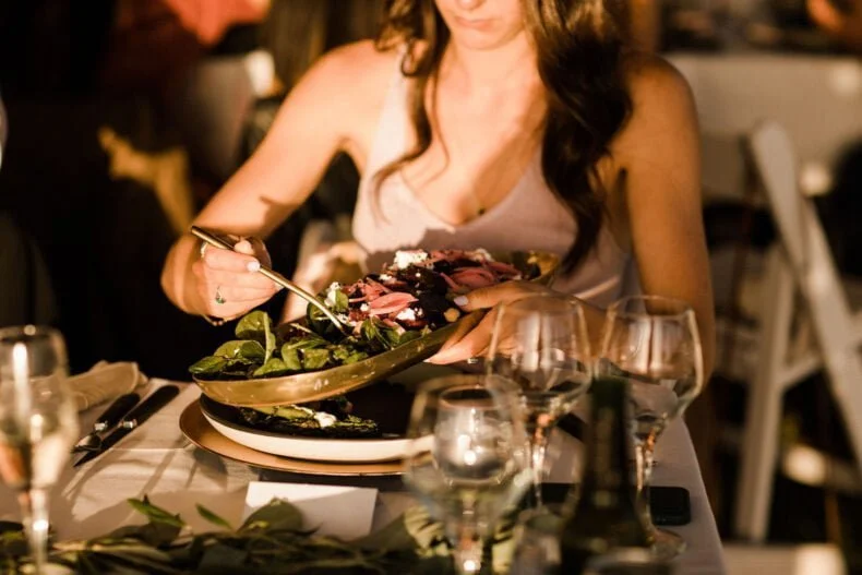 FAVE DEETS “The highlight for me, as well as for many of the guests, was the food. The catering by Sabre was truly delicious. Since we hadn’t had the opportunity to sample the food beforehand, we were essentially relying on hope for the best. Fortunately, there was an abundance of delectable dishes that not only met but exceeded our expectations in taste. Anticipating my post-celebration hunger, I had requested some food to take back with us. This added touch truly enhanced our evening, allowing us to bring a platter of scrumptious delights home and unwind on the couch, fully satiated after a day that was both grand and beautiful.”