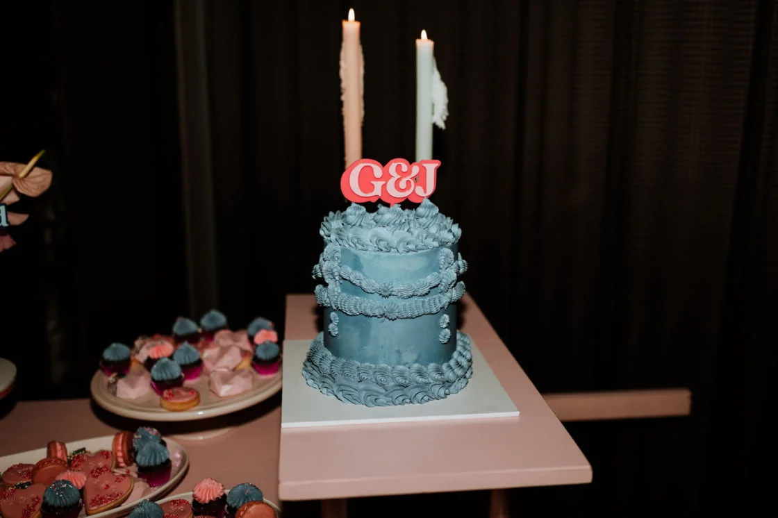 FAVE DETAILS “Hands down the flowers and our cakes! I could not believe my eyes when Carla from Franc Flora walked in with my bridal bouquet and then to see that on an even bigger scale at the ceremony and reception, we were blown away. Our cakes, by Butterdream Baking, were next level – yes we had two! We had my ‘something blue’ with one cake and a pop of pink with the other. Heather then took our florals and tied them in with the cakes and they were next level.”