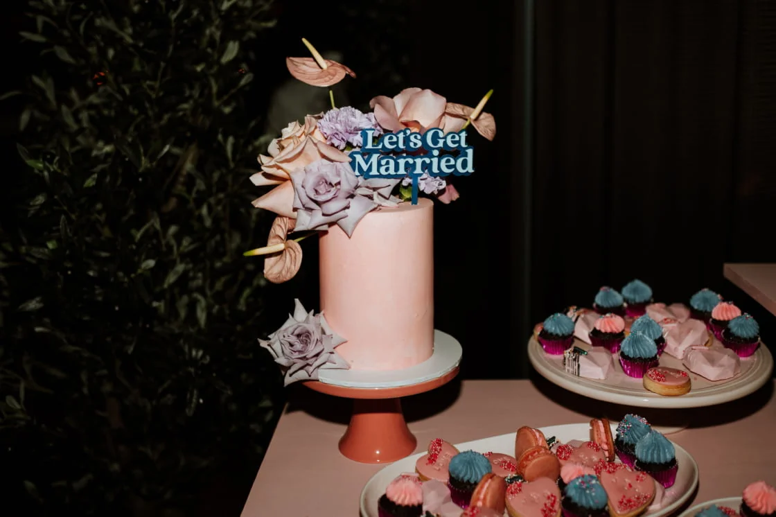 FAVE DETAILS “Hands down the flowers and our cakes! I could not believe my eyes when Carla from Franc Flora walked in with my bridal bouquet and then to see that on an even bigger scale at the ceremony and reception, we were blown away. Our cakes, by Butterdream Baking, were next level – yes we had two! We had my ‘something blue’ with one cake and a pop of pink with the other. Heather then took our florals and tied them in with the cakes and they were next level.”
