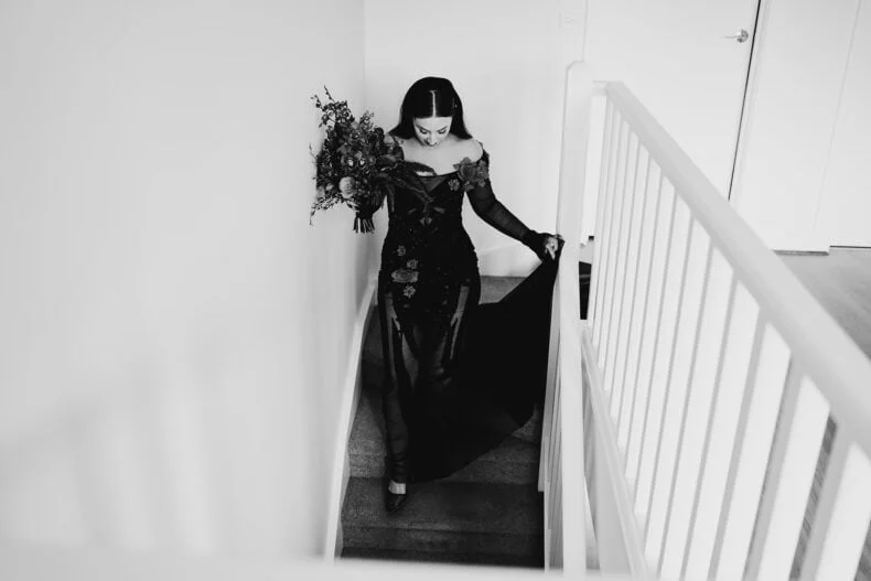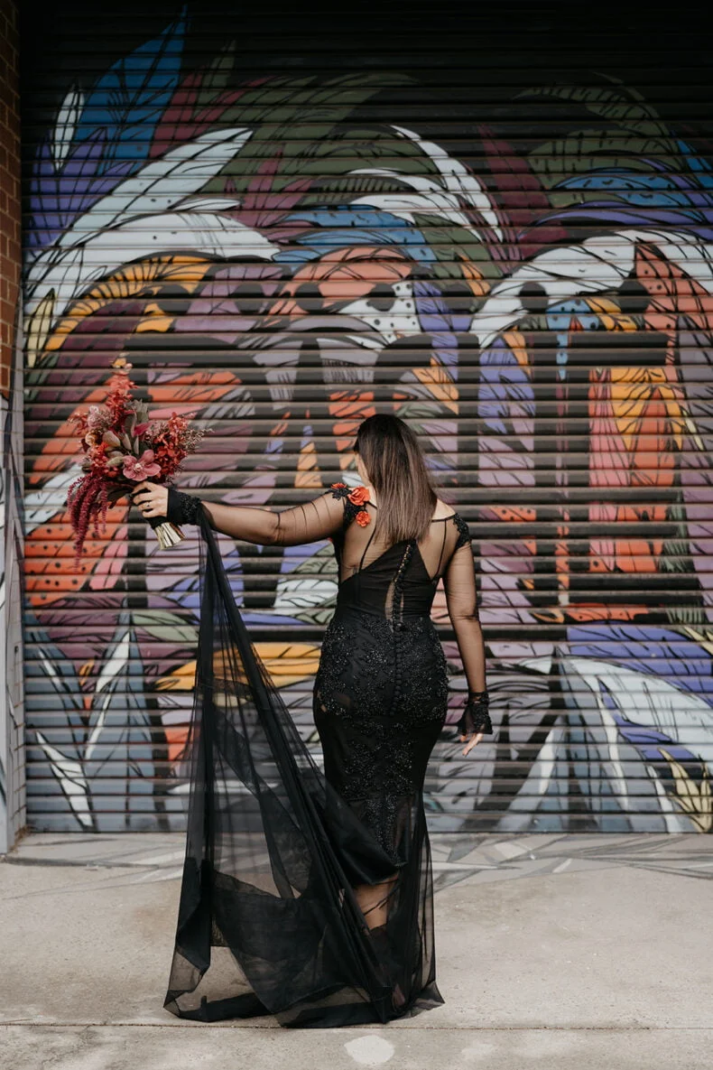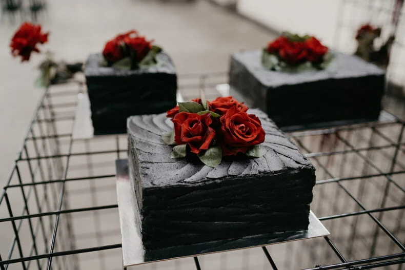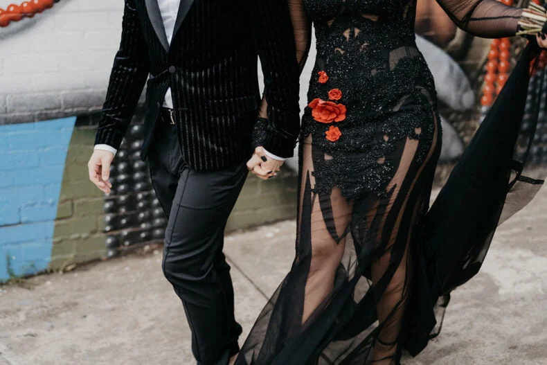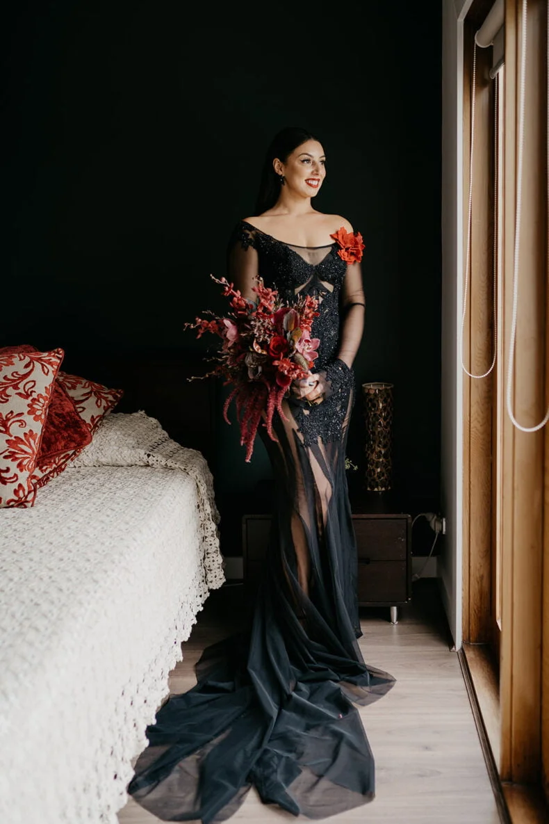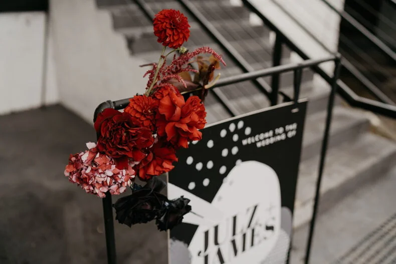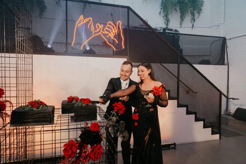 THE VIBE “We are both very energetic people who thrive with our loved ones around us; so we knew that the enjoyment of our loved ones was key to the day. But on our terms: ‘Dark romance with a touch of neon’ defined the aesthetic. ‘Party party party’ defined… well… the party! Seeing people of all ages refusing to leave the d floor proved we got it right.”