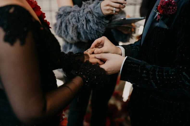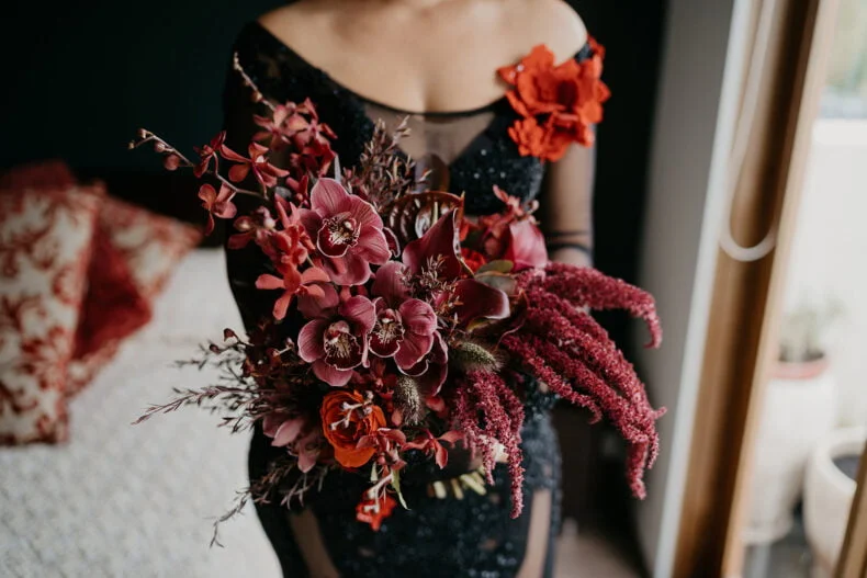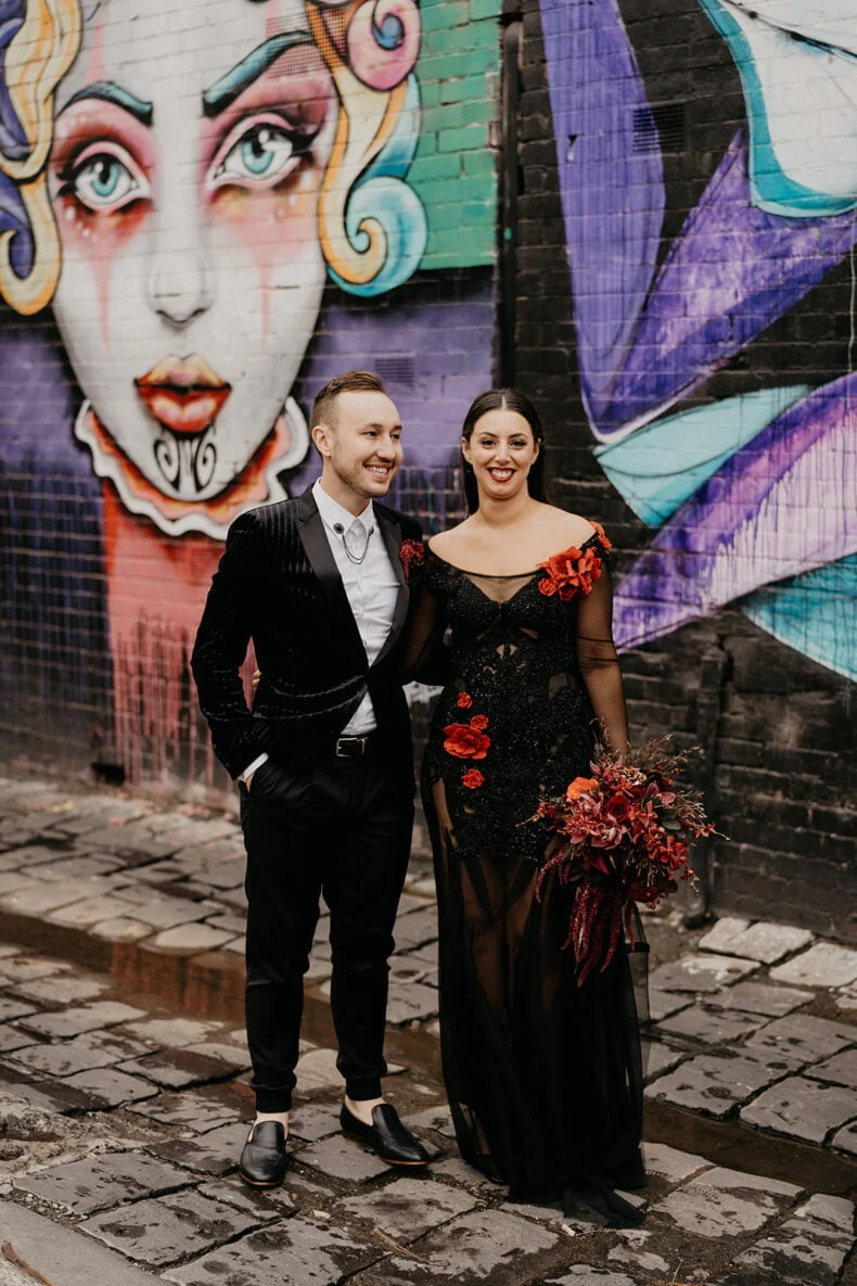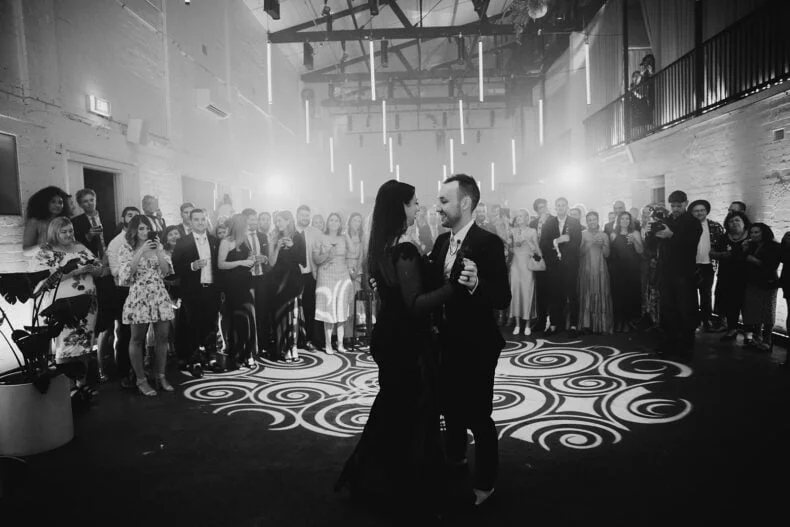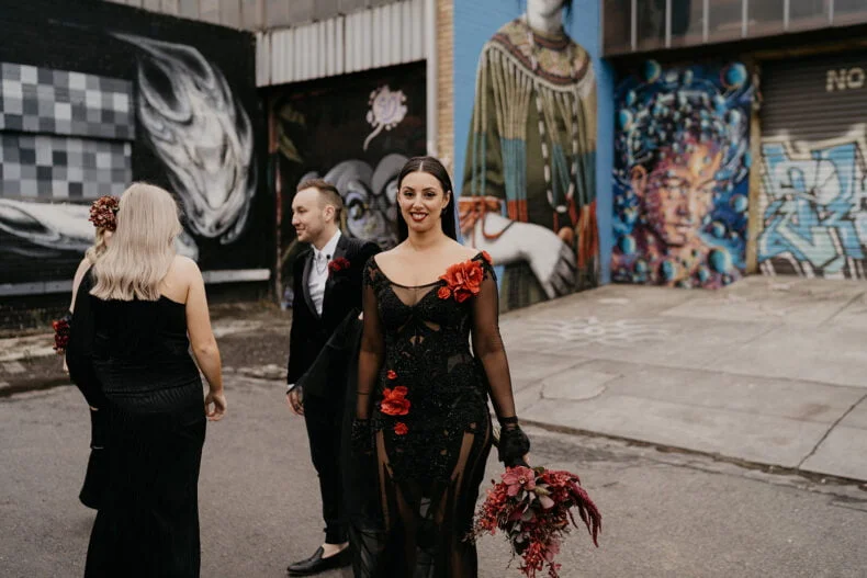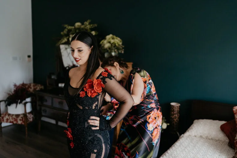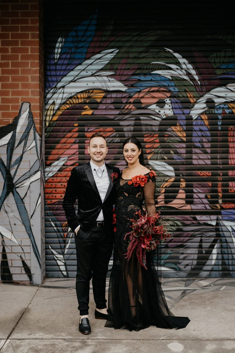 THE VIBE “We are both very energetic people who thrive with our loved ones around us; so we knew that the enjoyment of our loved ones was key to the day. But on our terms: ‘Dark romance with a touch of neon’ defined the aesthetic. ‘Party party party’ defined… well… the party! Seeing people of all ages refusing to leave the d floor proved we got it right.”