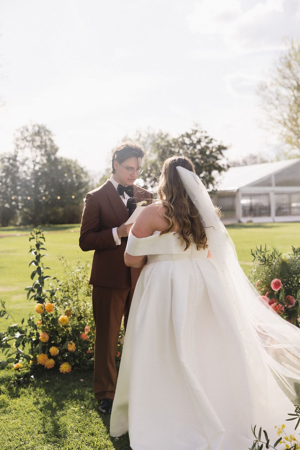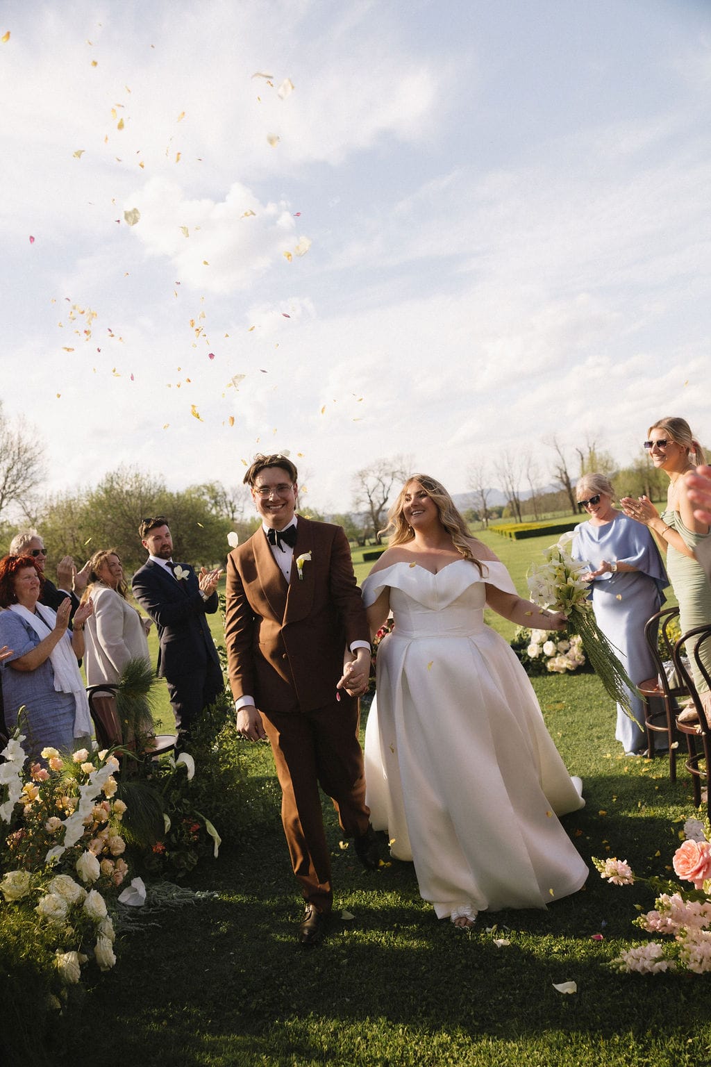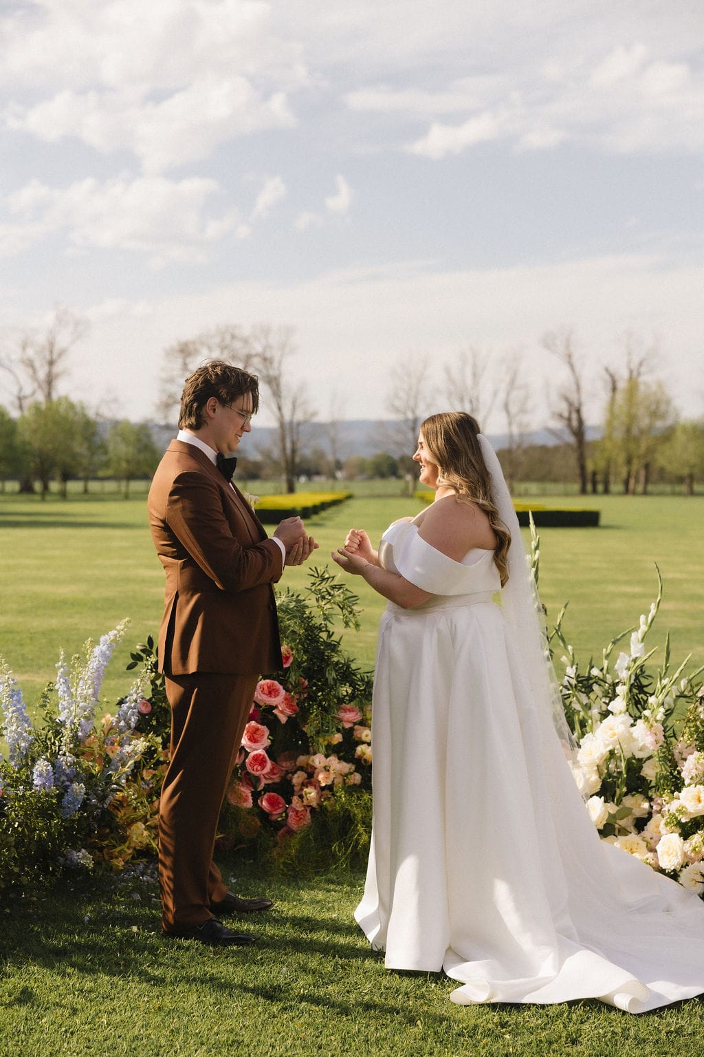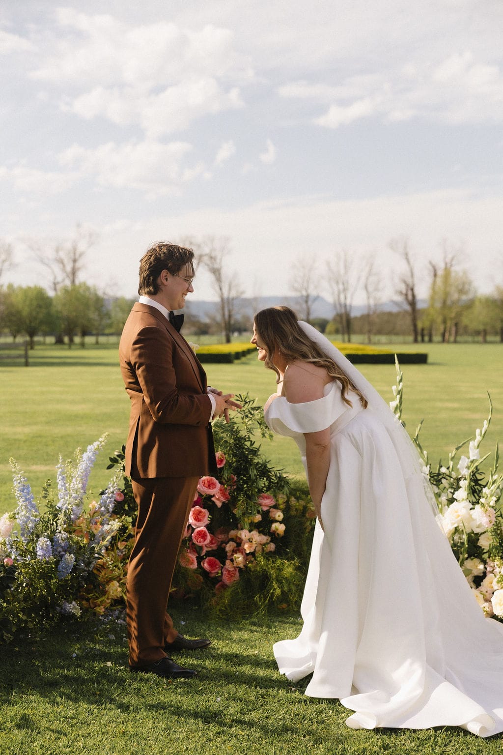 “.We really connected with our photographer (Joeyy Lee). She was so lovely [and] has been so lovely in the process afterwards as well. Our celebrant (Konnubials by Kiki) was also extremely helpful with writing our vows, doing check-in video calls, and coming up to Sydney to meet us before the wedding and for us to sign some paperwork (which was so exciting). The team at Terrara were phenomenal with answering emails, picking up packages from the post office, and even helping us with quantities for our alcohol order.”