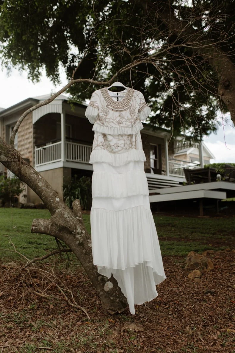 THE DRESS “Pretty early on in my Pinteresting I’d come across Bo & Luca. I fell in love with how their gowns managed to combine an effortless boho aesthetic with designs that still felt really unique and special. I found them stocked in Bloom boutique in Brisbane, and went there with my mum. I saw Amelie hanging on the rack as soon as I walked in, and was so excited – it was feminine and fun and catered to my love of crop tops, and I just felt like myself when I was wearing it (plus I couldn’t wipe the smile off my face, so I knew it had to be the one).”