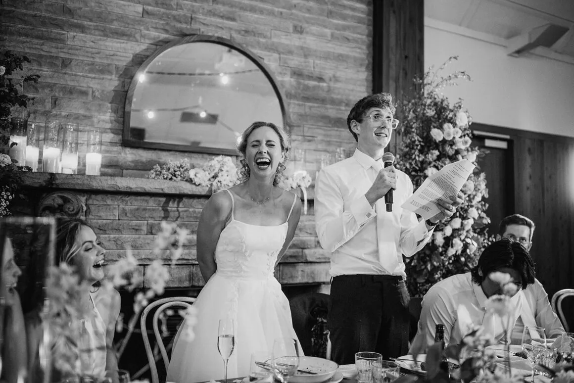 The duo, who have now been together six years, saw a bunch of venues in the planning process, but nothing ticked the boxes quite like Audley Dance Hall, nestled in Royal National Park. As the newlyweds explained, “We really wanted our wedding week to feel like a bit of a getaway [whilst] also being close enough to Sydney for those who couldn’t stay.” Neighbouring both the beach and the bush, the heritage-listed dance hall also married two elements that were key to Lauren and Benson’s wedding day vision. “I was adamant I wanted to start my wedding day with a swim at the beach, and Benson wanted to get married in the bush. Audley was perfect for us!”