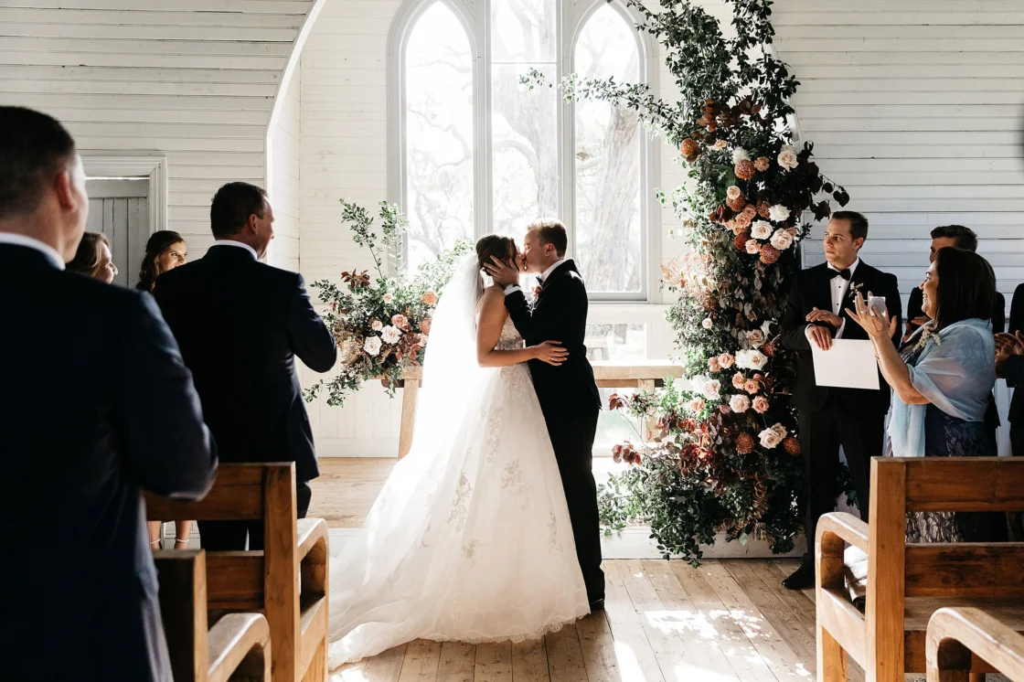 FAVOURITE DETAILS “Goodness, so hard to choose. I think the flowers that framed the chapel for the ceremony were pretty incredible – I feel like for me that’s become the iconic image in my mind of our wedding. One of the best parts of having a stylist and planner was that we didnt 100% know what things would look like until we saw them for the first time on the day with everyone else. We put a lot of trust in our vendors and they exceeded our expectations in every way.”