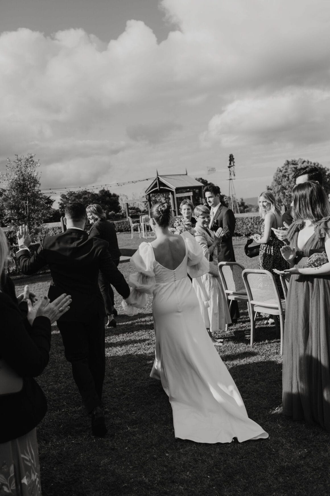 Naturally, we needed to chat to the newlyweds about every gorgeous detail, including where they found their inspo (“Hello May, obviously”). Scroll on for whimsical floral canopies, top-notch vendor testimonials, the coolest bridal sleeves in the universe, and much more goodness.