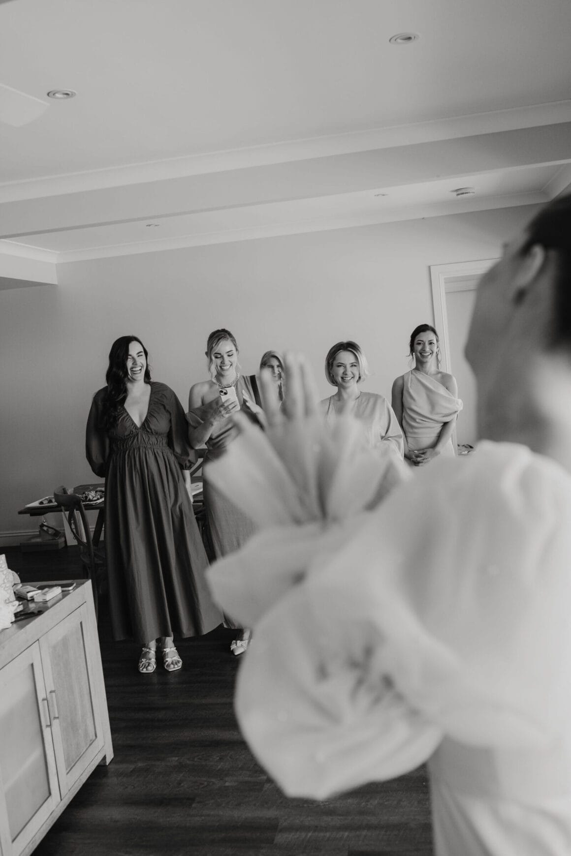 MEMORABLE MOMENT “The speeches were our absolute favourite part. We might be biased, but they were the best speeches we have ever heard. They brought many laughs and many tears. Taylor, our photographer, was on hand, capturing everyone’s reactions. It was so lovely getting those photos back and reliving them. We also decided to have a first look, which was so special to have a few moments of peace together before the madness. It really settled Lily’s nerves before walking down the aisle.”