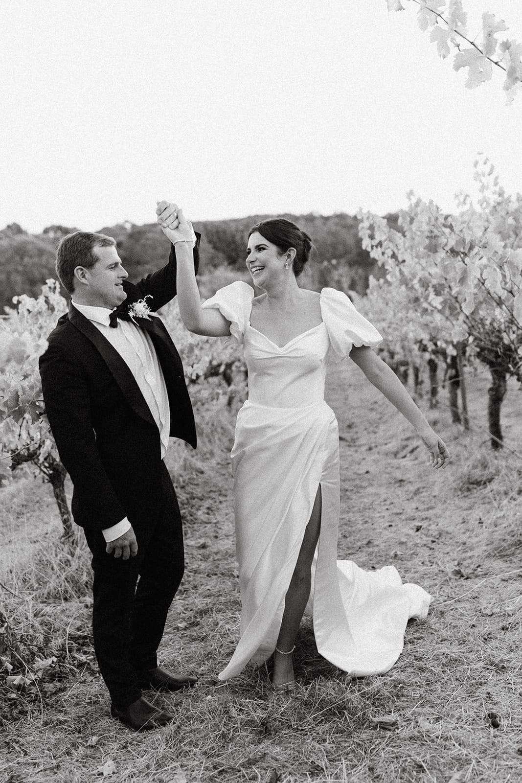 CONTRIBUTING VENDORS Photographer Emma MacAulay Photography Cinematographer Hayley Narvaez Films Event Planner & Stylist Confetti and Co Events Florist Signature Floral Design Stationery & Signage Tawo Studio Venue Credaro Estate Cellar Door Catering Tiller Cake Maker Claudio Bakehouse Wedding Favours AliExpress & Tawo Studio Hire Items Yallingup Event Hire & Hire In Style Marquee / Teepee Hire In Style Lighting Hire Festoon Entertainment Varley Strings & DJ Aslan Celebrant Confetti Days Rings She Fine Jewellery Transport Gannaways Charters THE BRIDE Bridal Gown Designer Faith Anderson – Coutil Studio Shoes Wittner Accessories Swarovski Hair Abbey Hair Expert Makeup Hooper Artistry Perfume Chanel Bridesmaid Dresses Rachel Gilbert, Sir The Label & Alemais Bridesmaid Shoes The Iconic THE GROOM Suit, Jacket, Shirt, Pants & Bow Tie Suit Vault Shoes Connor Groomsmen Suits Suit Vault Groomsmen Gifts Yeti