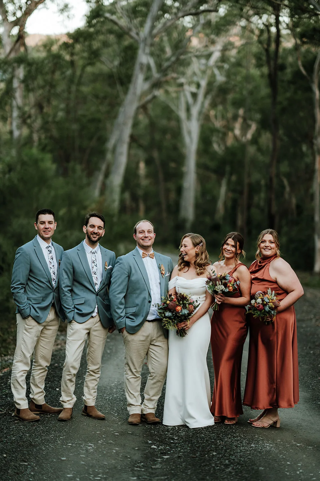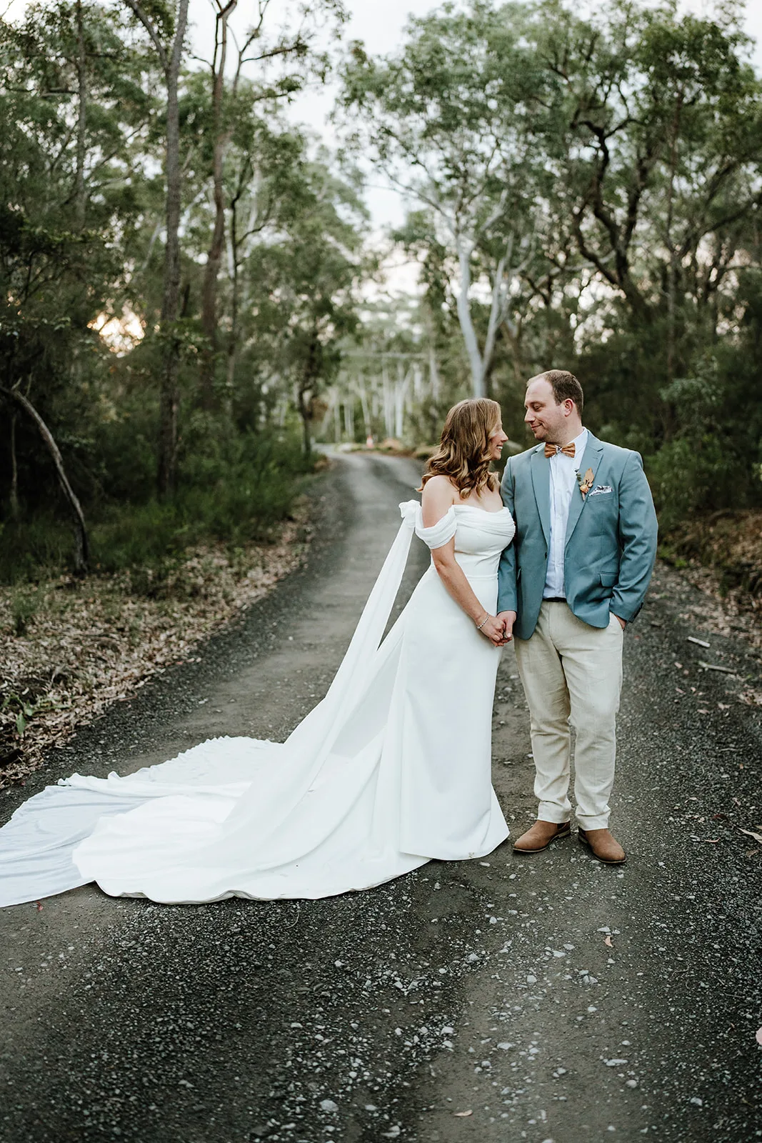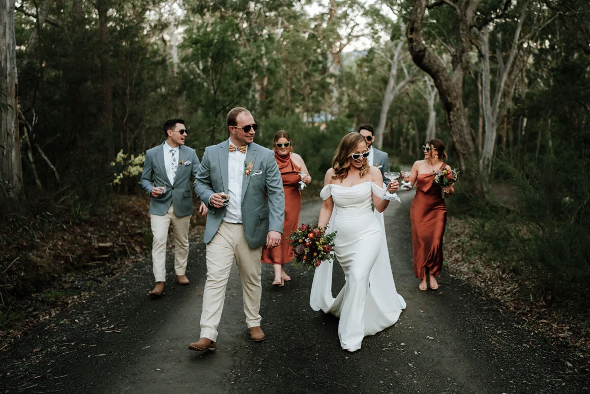 CONTRIBUTING VENDORS Photographer Translucent Photography Florist Wattlewood Floral Stationery Vistaprint (Invites) & Liz & Joel (Bride & Groom) (Save the dates, Wedding favours & Cake Topper) Printer Vistaprint Venue Wildwood Kangaroo Valley Catering Caterina Cake Maker Zweefers Signage Liz & Joel (Bride & Groom), Canva & Officeworks Celebrant Cathy Hayes Rings WedgeWood (Joel) & Unique Jewellers (Liz) Ring Boxes LeylaPet via ETSY THE BRIDE Bridal Gown Designer Miss Scarlett Bridal Boutique Storybook Bridal Robes / Getting Ready Tees Bridesmaid Boxes Shoes Betts Earrings Joel (Groom) Hair Chantelle – Willow Hair Spa Makeup Stephanie Grace Perfume Chanel Bridesmaid Dresses Billy J Bridesmaid Shoes Betts Bride & Bridesmaid Sunglasses Amazon THE GROOM Jacket, Shirt, Pants, Shoes Connor Grooming The Hair Lab Groomsmen Suits Connor