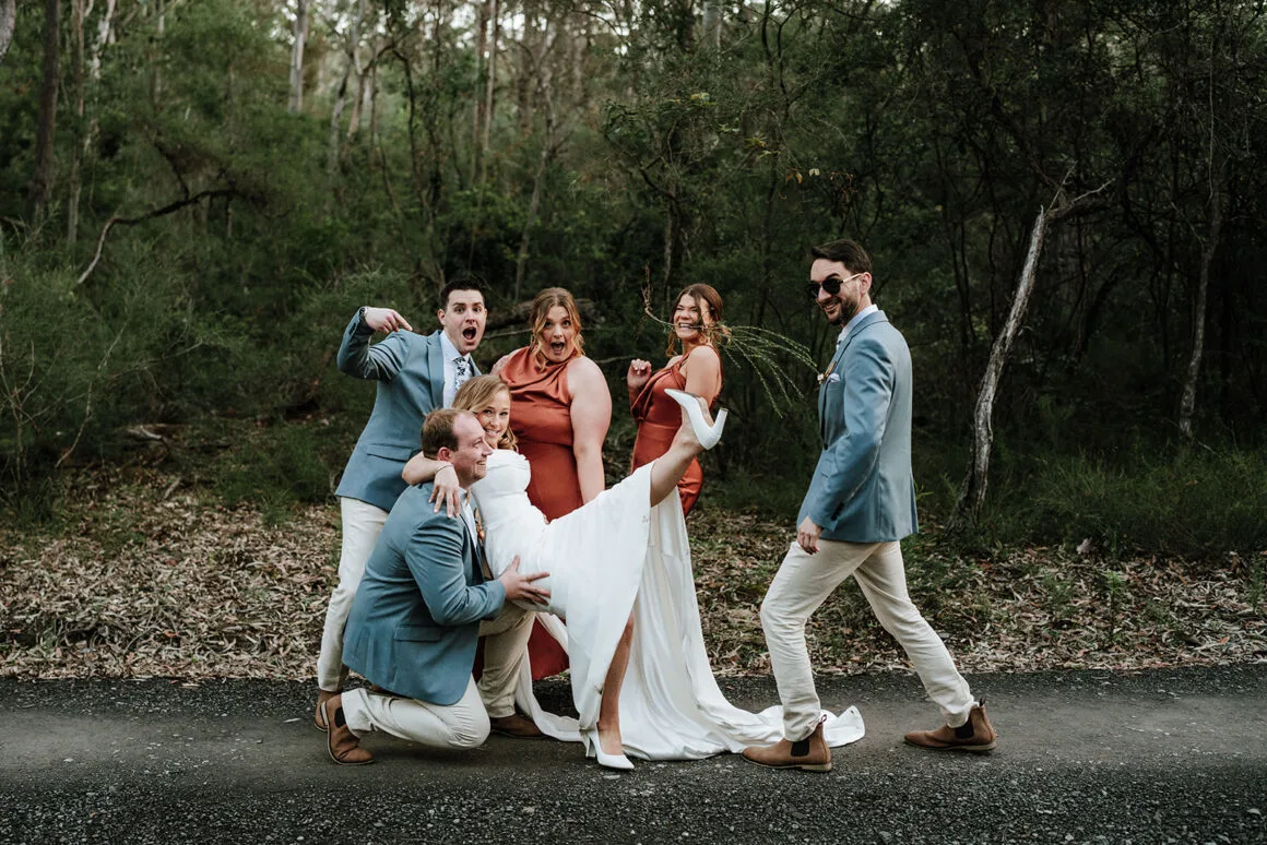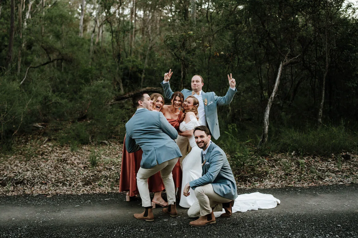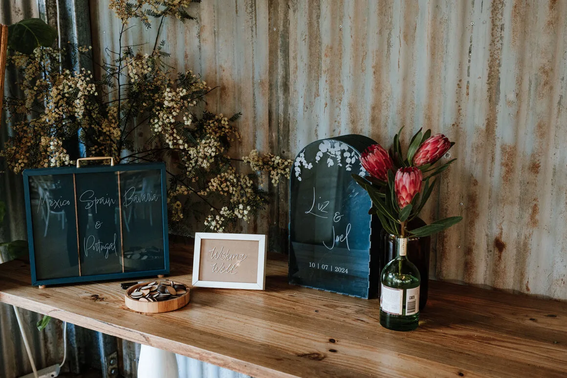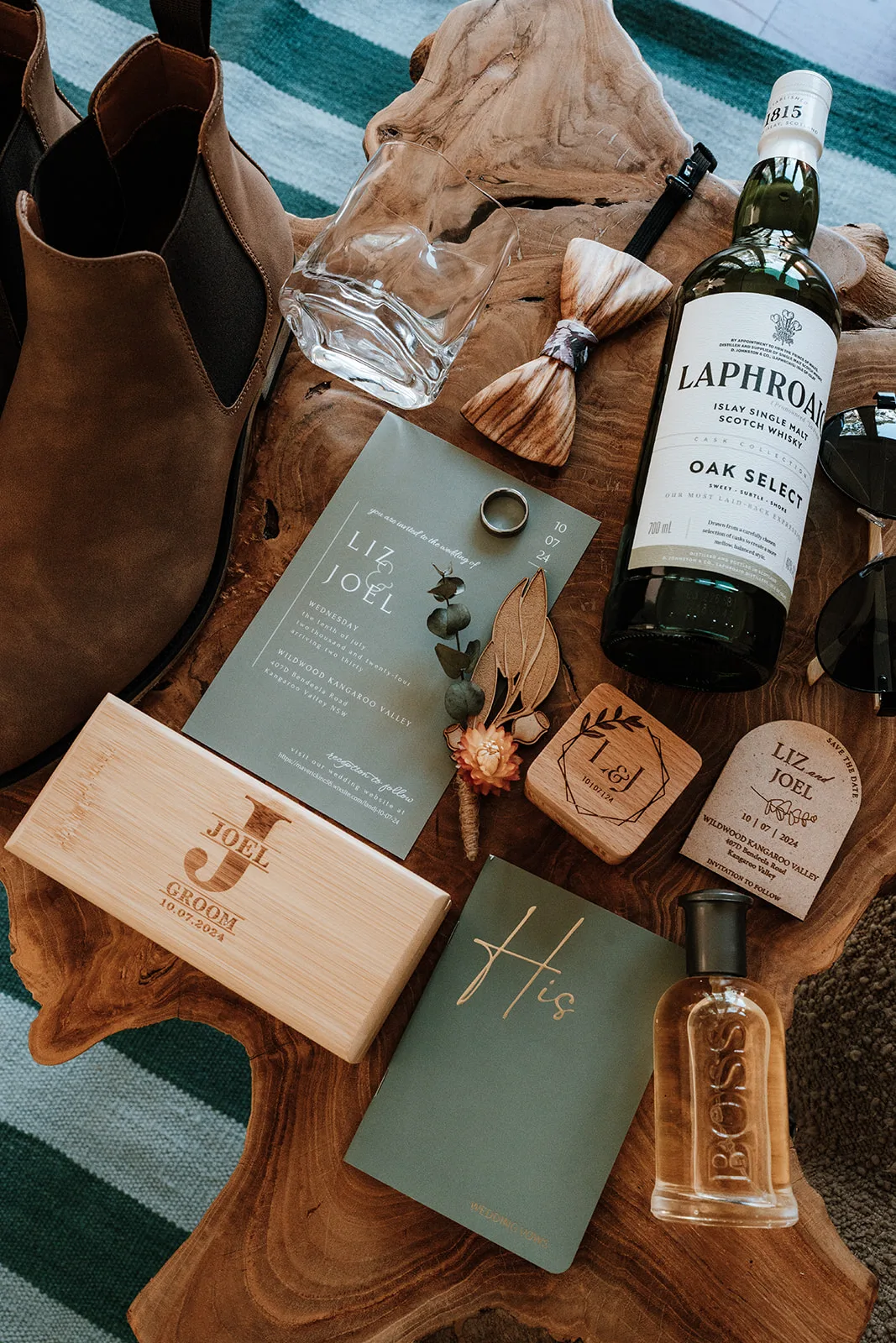 CONTRIBUTING VENDORS Photographer Translucent Photography Florist Wattlewood Floral Stationery Vistaprint (Invites) & Liz & Joel (Bride & Groom) (Save the dates, Wedding favours & Cake Topper) Printer Vistaprint Venue Wildwood Kangaroo Valley Catering Caterina Cake Maker Zweefers Signage Liz & Joel (Bride & Groom), Canva & Officeworks Celebrant Cathy Hayes Rings WedgeWood (Joel) & Unique Jewellers (Liz) Ring Boxes LeylaPet via ETSY THE BRIDE Bridal Gown Designer Miss Scarlett Bridal Boutique Storybook Bridal Robes / Getting Ready Tees Bridesmaid Boxes Shoes Betts Earrings Joel (Groom) Hair Chantelle – Willow Hair Spa Makeup Stephanie Grace Perfume Chanel Bridesmaid Dresses Billy J Bridesmaid Shoes Betts Bride & Bridesmaid Sunglasses Amazon THE GROOM Jacket, Shirt, Pants, Shoes Connor Grooming The Hair Lab Groomsmen Suits Connor