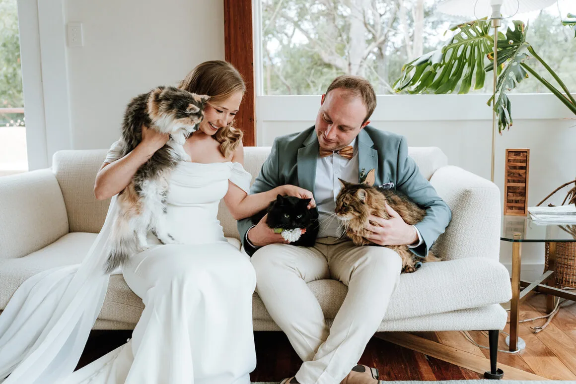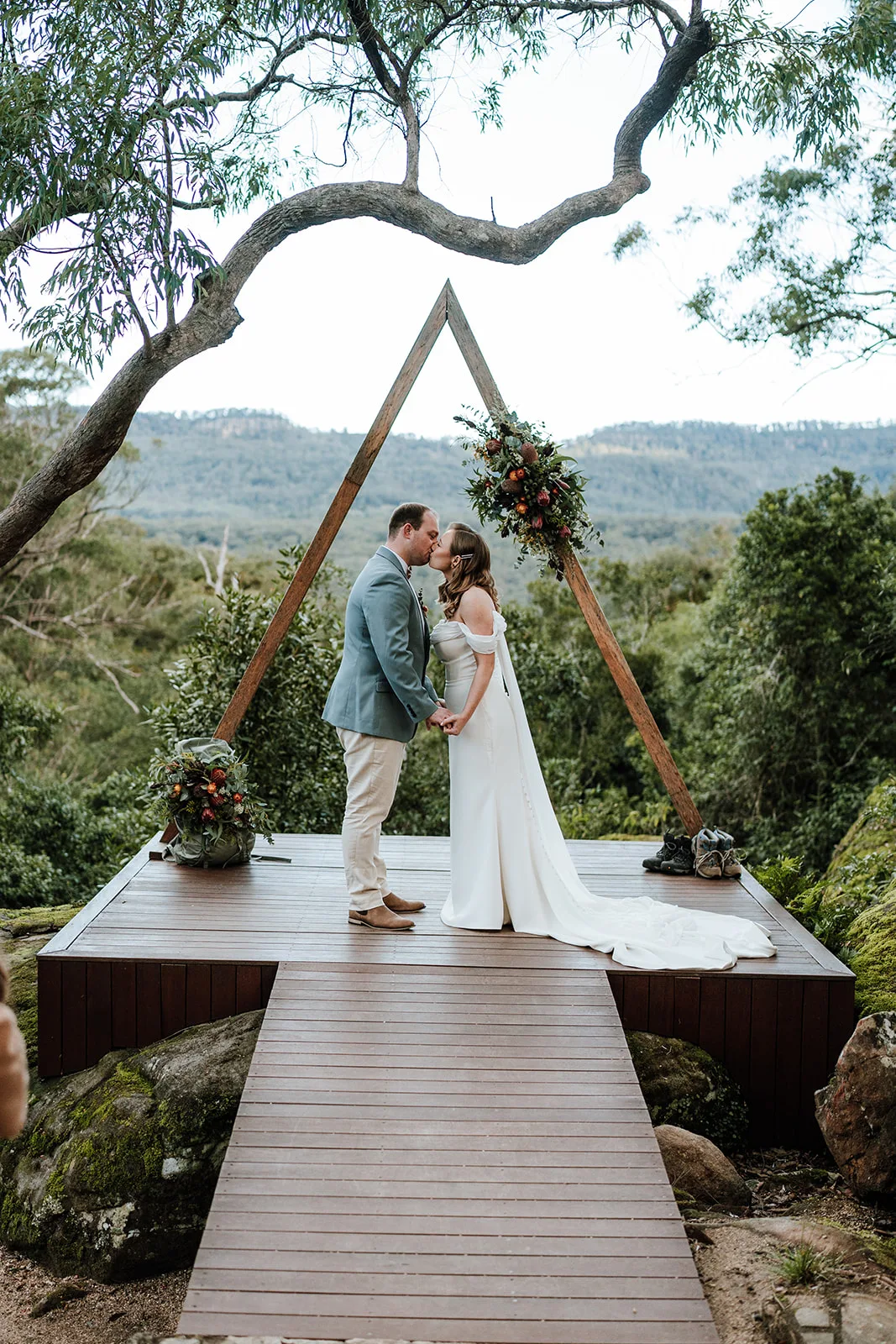 When Liz and Joel entered the grounds of Wildwood, they “instantly felt at peace”. With its rustic charm, lush green forestry and the tranquil tone of running water nearby, it was the perfect place to carry out their Kangaroo Valley wedding. Plus, when Wildwood confirmed that the couple’s cats were welcome, the deal was sealed!