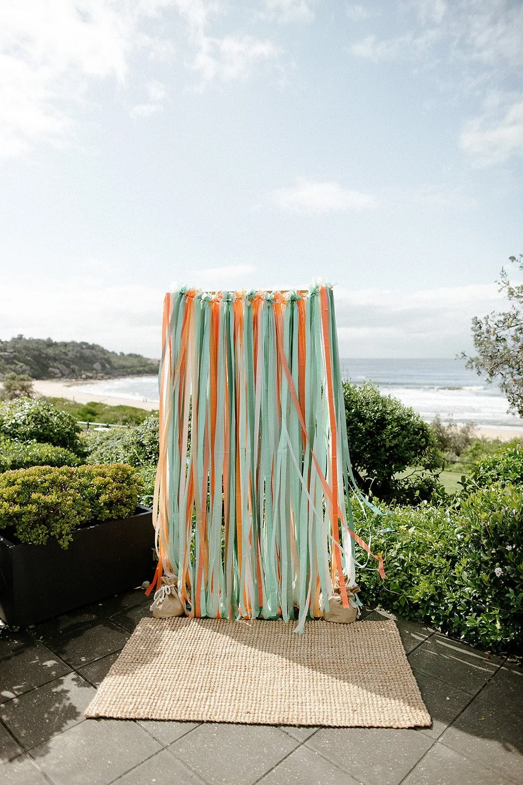 THE INSPO “The inspiration was an eclectic mix of our love for Mexico and a relaxed boozy lunch! We opted not to use a stylist so Lucy managed to pull everything together! She paired bright colours, (matching the Poppies For Grace Streamers, DIY linen napkins by our Aunty Heidi, and candles) with ratan and we even had a wedding cake piñata. Thanks to our friends Lauren, Wayde and Charlotte, we used all the decorations from the ceremony straight into the lunch with bouquets in vases and the streamer altar into a bridal party backdrop.”