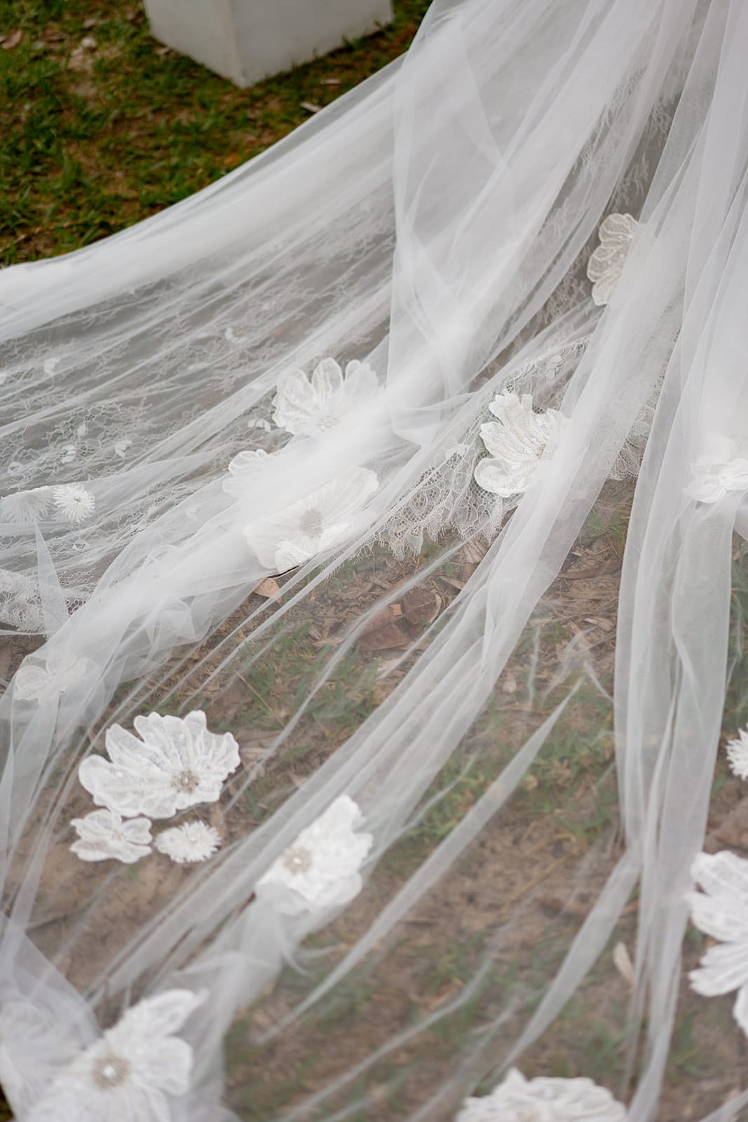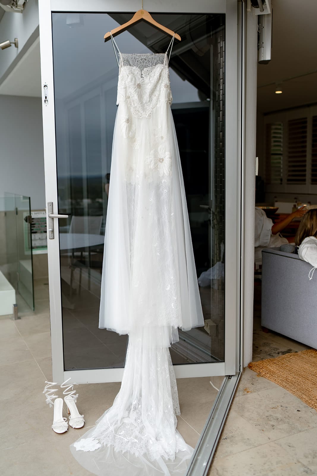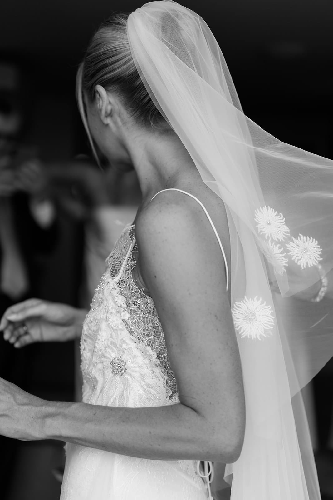 “My dress was from Grace Loves Lace in South Melbourne, and my dress-shopping experience was surprisingly quick and really calming. I first spotted the dress on Instagram and fell in love at first sight. I tried on five dresses – all gorgeous, but none felt like me, until I finally slipped into the Rosie. I instantly fell in love, and my family did too. Every detail was perfect: delicate hand-embroidered flowers, subtle sequins, two thin spaghetti straps flowing into a beautiful bodice and train, and a veil that elevated the entire look. It was honestly the most stress-free dress experience I could have imagined, and I’d highly recommend Grace Loves Lace to any bride-to-be!”
