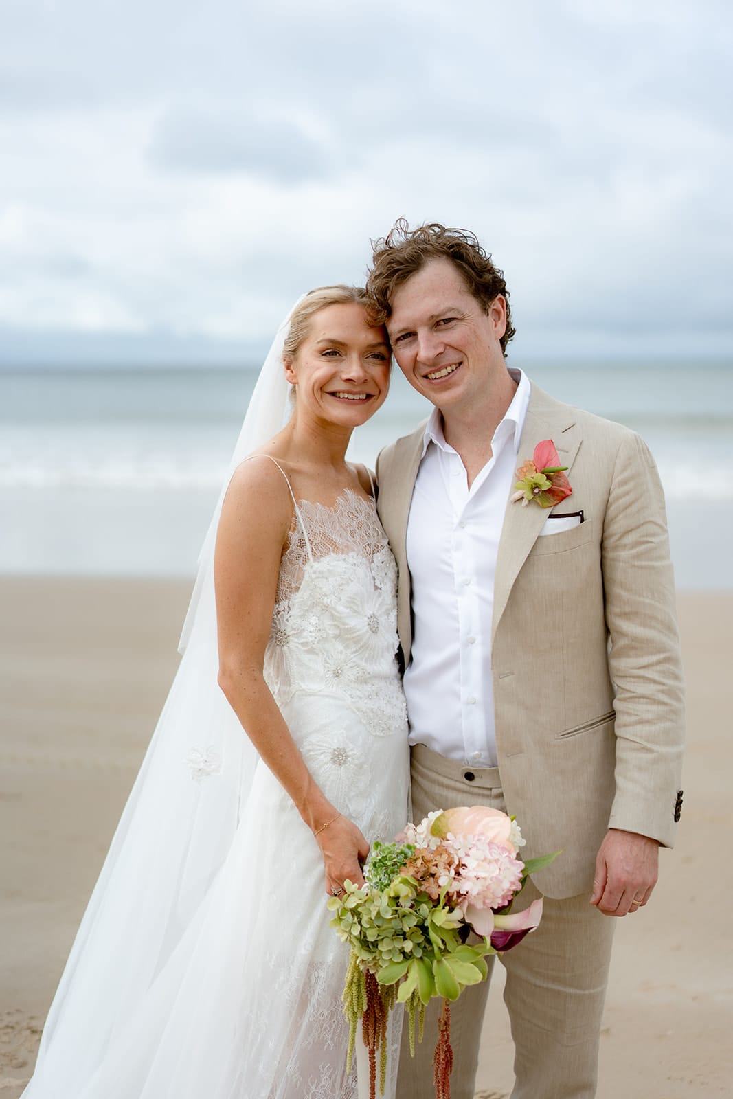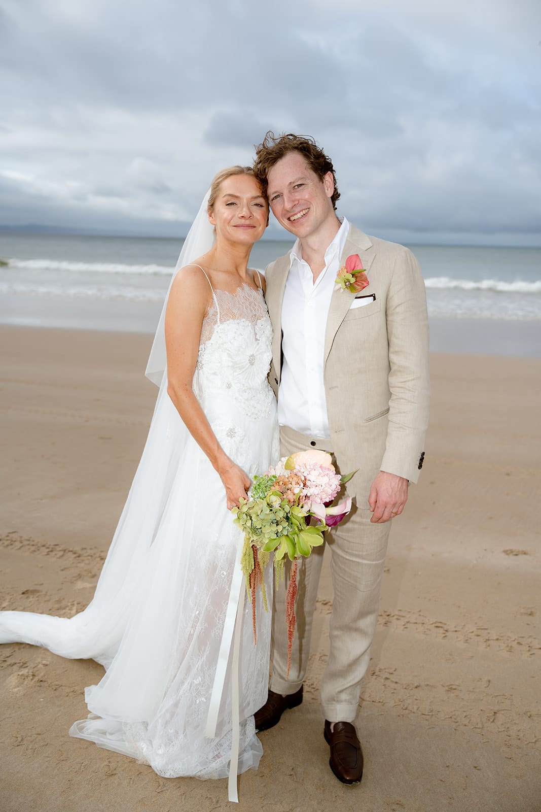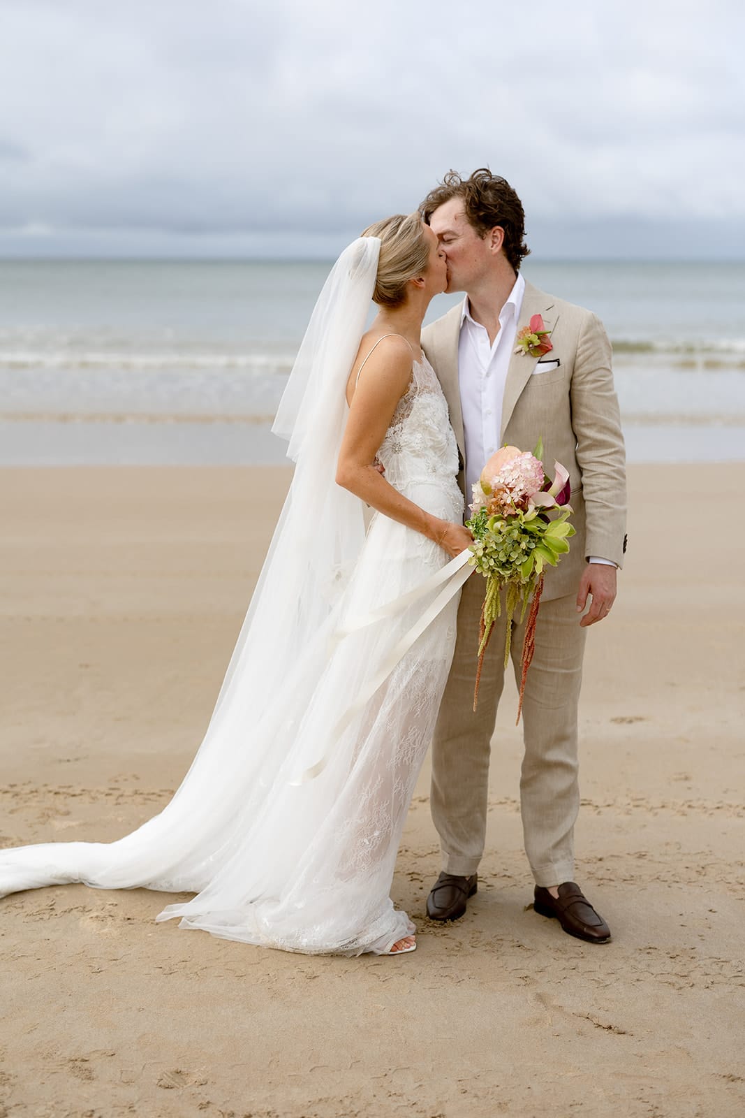 It was a day of easy-going, contemporary coastal elegance, and the lovebirds set the tone – Louis in a textured, light-toned Oscar Hunt suit, and Lucy in a Grace Loves Lace sheer stunner, complete with floral lace details.