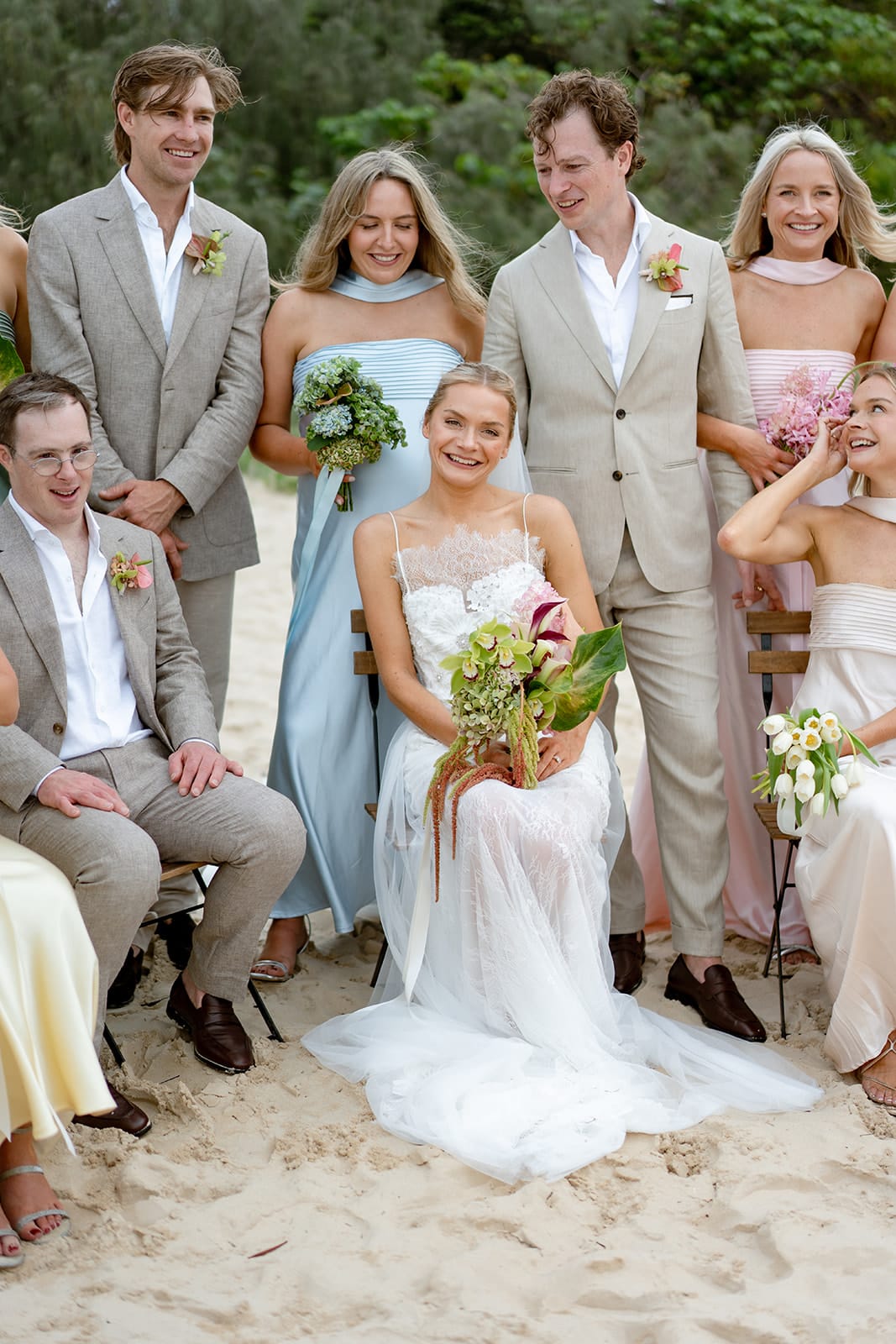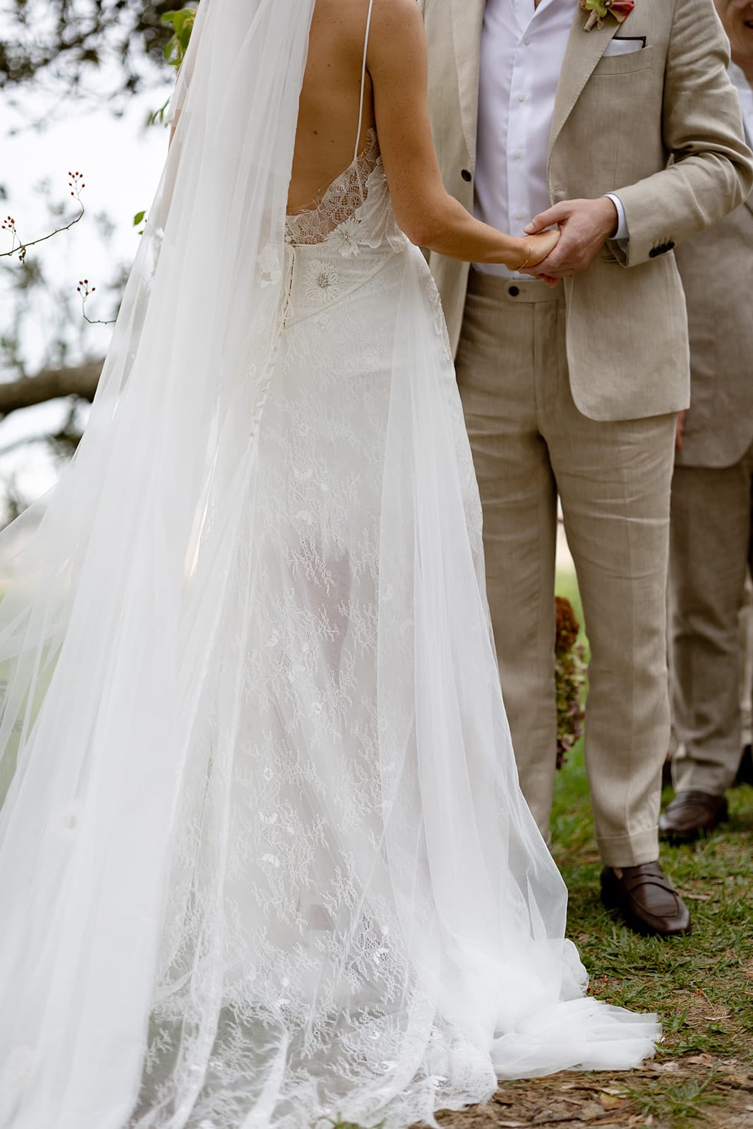 CONTRIBUTING VENDORS Photographer White Parrot Event Planner & Stylist With You + Me Florist Aster & Wilde Stationery Signed With Love Ceremony Venue Noosa Foreshore Reception Venue & Catering Peli’s Noosa Cake Maker Zoe Clark Cakes Hire Items L & M Events, Table Art Candles Hall Of Flame Sound Hire Mudcrab Music, Chris & James Meehan Entertainment Chris & James Meehan Celebrant Married by Tori Rings Daniel Jewellery Transport Niche Luxury Transfers, Lilo Noosa THE BRIDE Bridal Gown & Veil Designer Grace Loves Lace Getting Ready Princess Polly Shoes Azalea Wang Accessories Linden Cook Hair Weiss Hair Makeup Dolly May Artistry Fragrance Le Labo Bridesmaid Dresses Runaway the Label THE GROOM Suit, Jacket, Shirt & Pants Oscar Hunt Shoes & Groomsmen Suits Country Road Grooming Weiss Hair