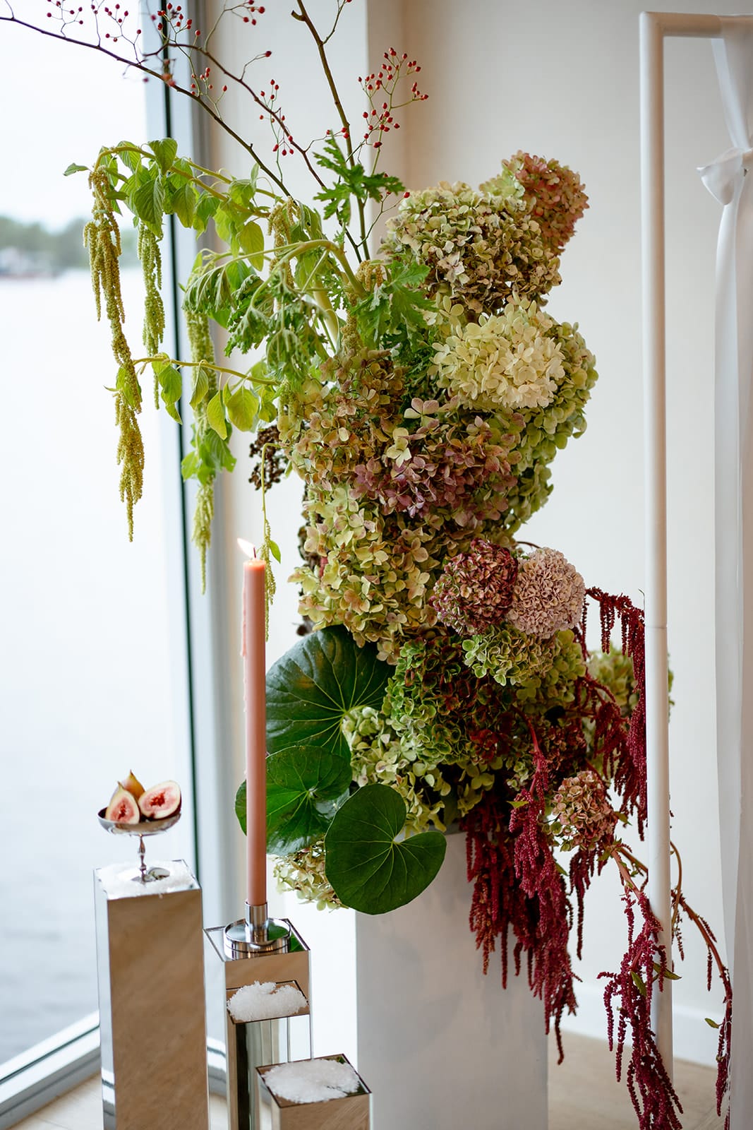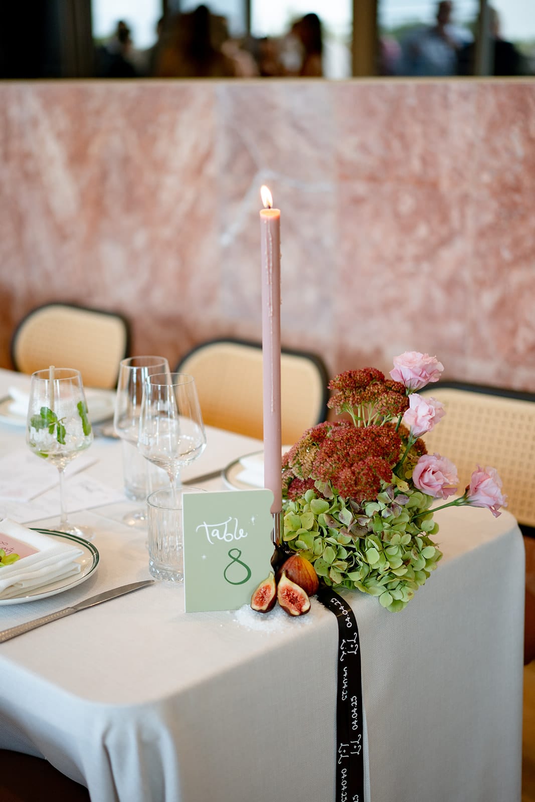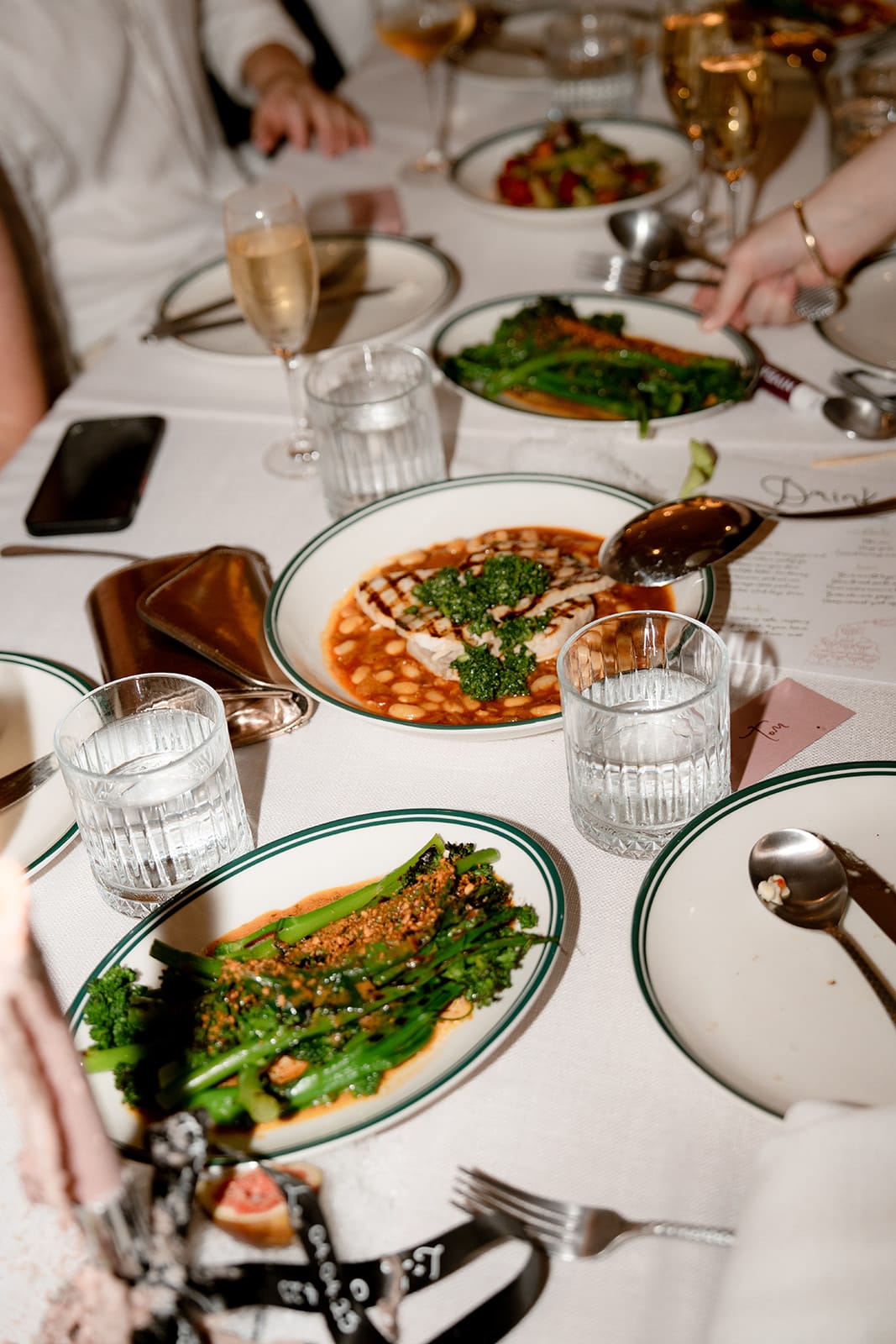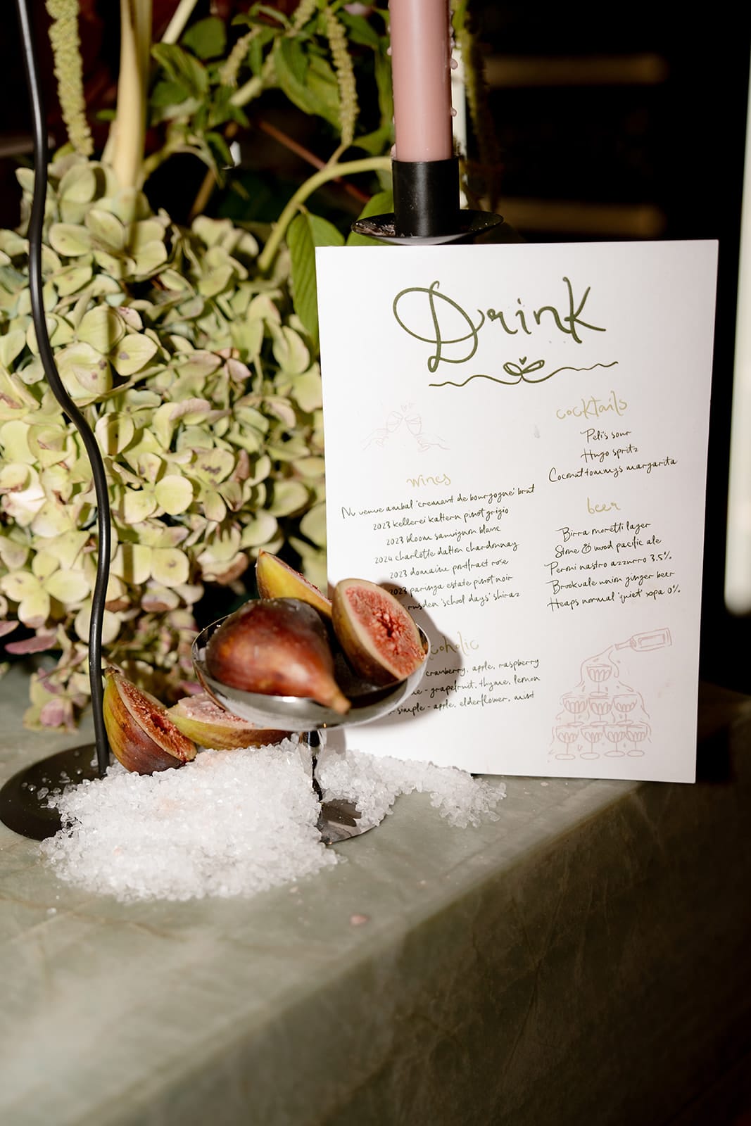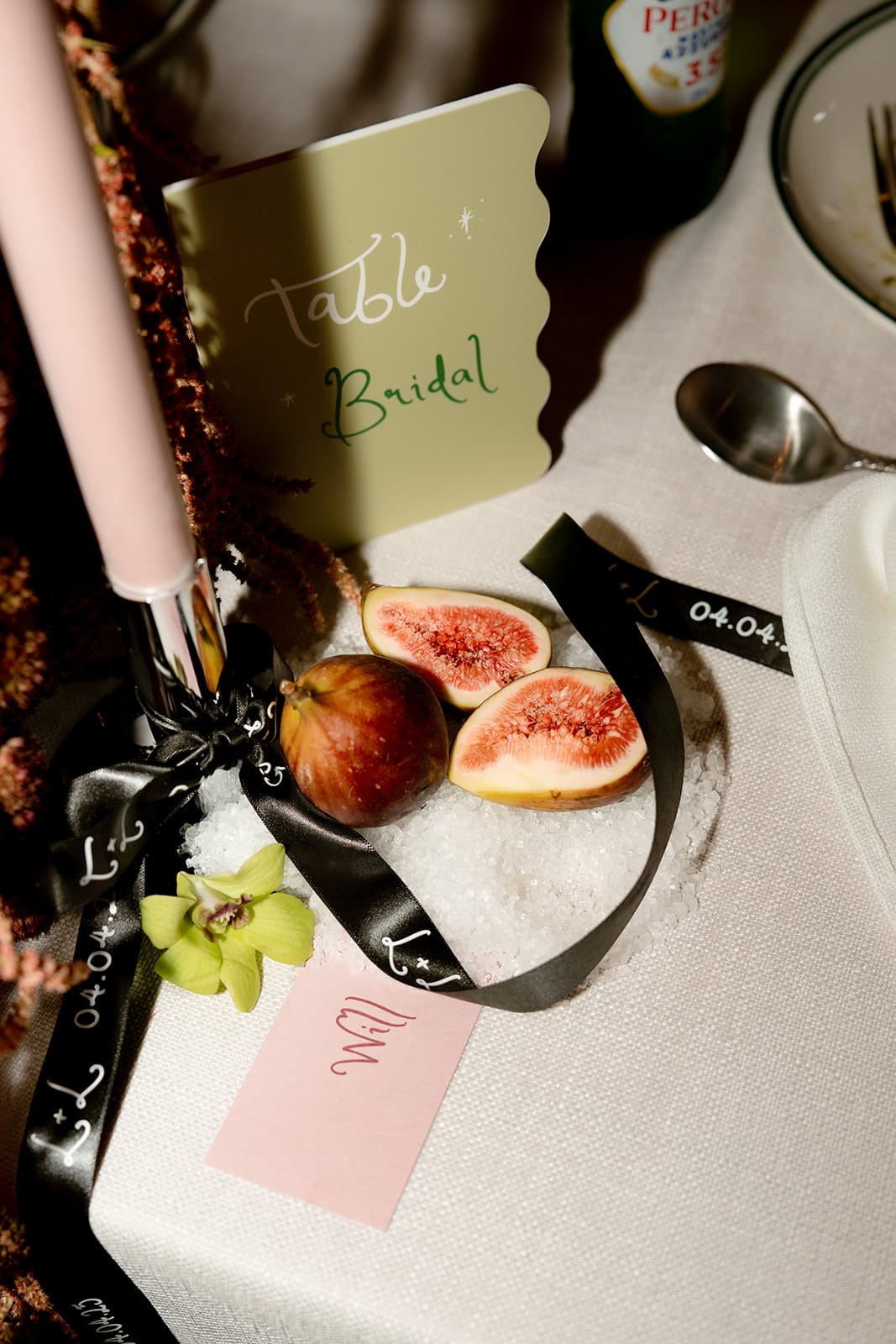 “We always wanted the overall vibe to feel relaxed – it’s Noosa, after all, but most importantly, we wanted our guests to have an unforgettable time. At the same time, it was the little details that really came to life in the most beautiful way. One idea I’d fallen in love with was using rock salt in the table styling (inspired by a shoot With You + Me had previously done at Peli’s). It looked so striking piled across the tables, paired with tall, elegant candles. I’ve also always loved the look of incorporating fruit or vegetables into table décor, so we added fresh figs to each tablescape and honestly, it turned out even more incredible than I imagined.”