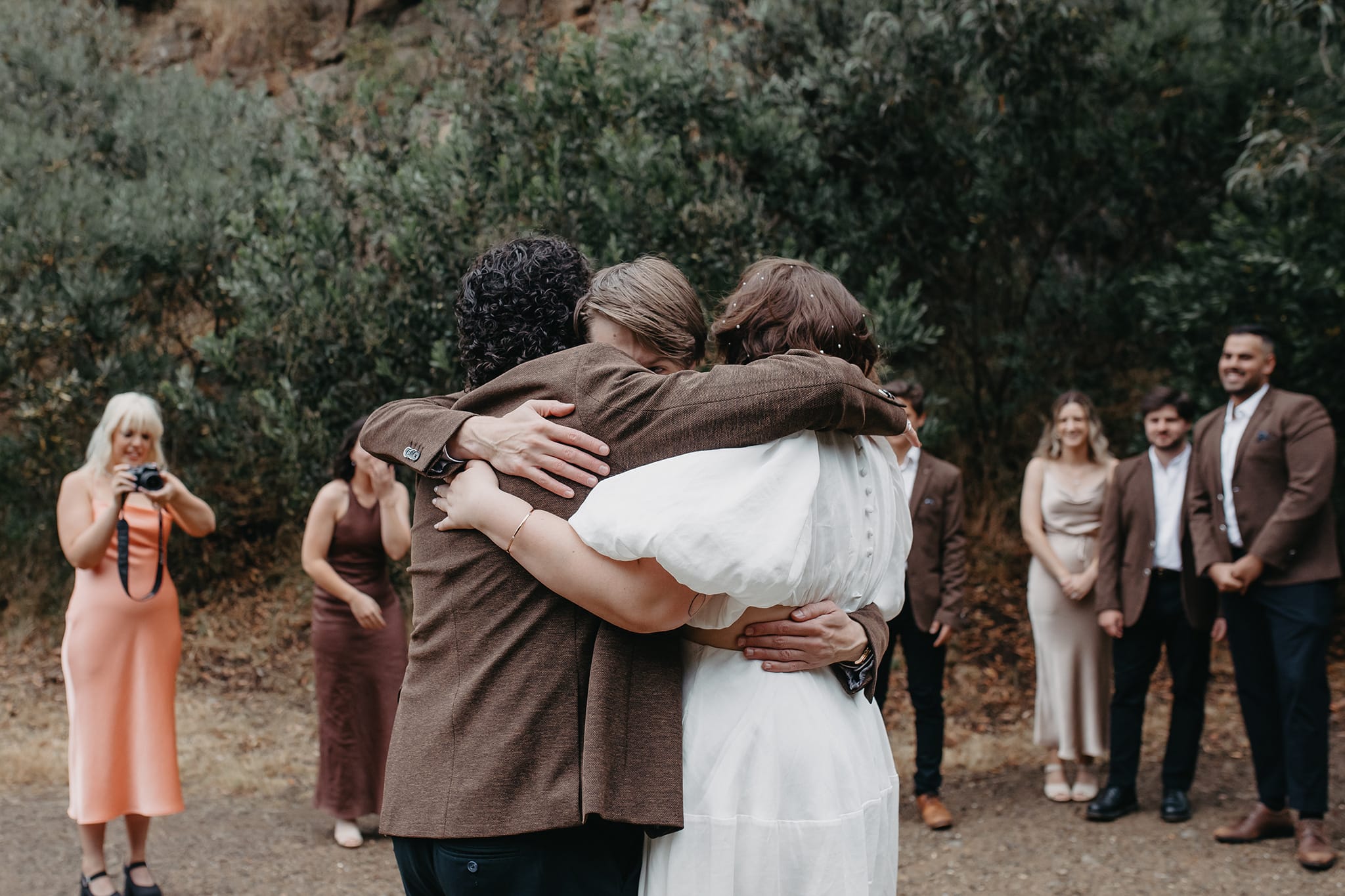 CONTRIBUTING VENDORS Photographer Lovegood Images Cinematographer Anna Jameson Florist & Stationery DIY Venue Commonfolk Café Food Trucks Gather Round Pizza Wagon Other Desserts Family Lighting & Sound Hire Clear Systems Celebrant & Entertainment Renee the Celebrant Rings Averie Jewellery via Etsy (Groom) & A Gilded Leaf (Bride) THE BRIDE Bridal Gown Designer Aje Shoes R.M. Williams Accessories Mejuri Hair & Makeup The Distinctive Dame Bridesmaid Dresses Beginning Boutique, Bec + Bridge Bridesmaid Shoes Chloe & Current Mood via Dolls Kill THE GROOM Jacket & Pants Politix Shoes Trent Nathan Socks Peggy and Finn Watch Treehut Grooming Drunken Barber Groomsmen Jackets Politix