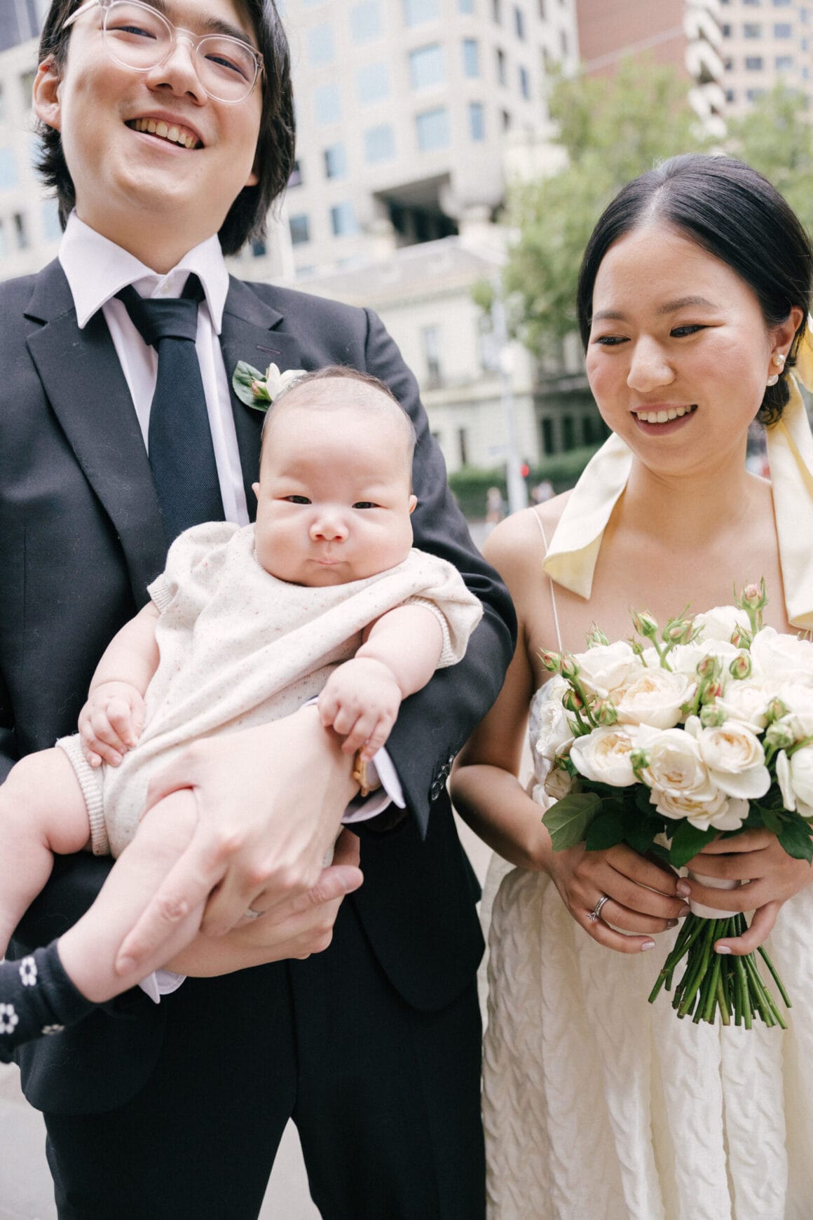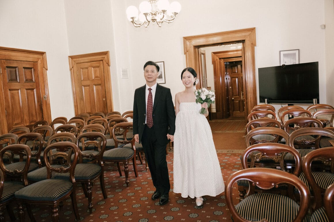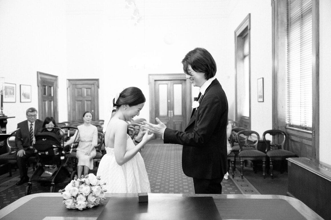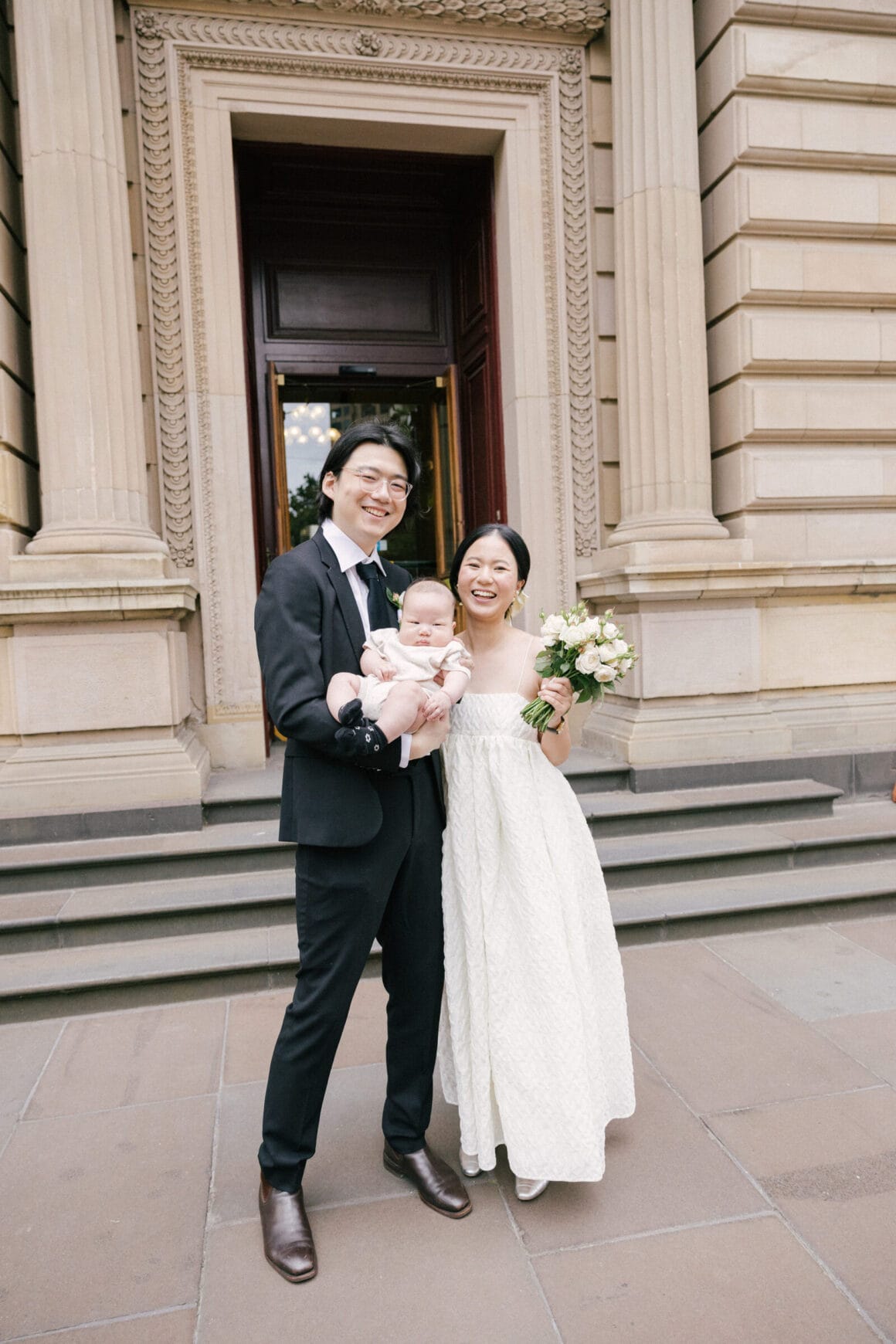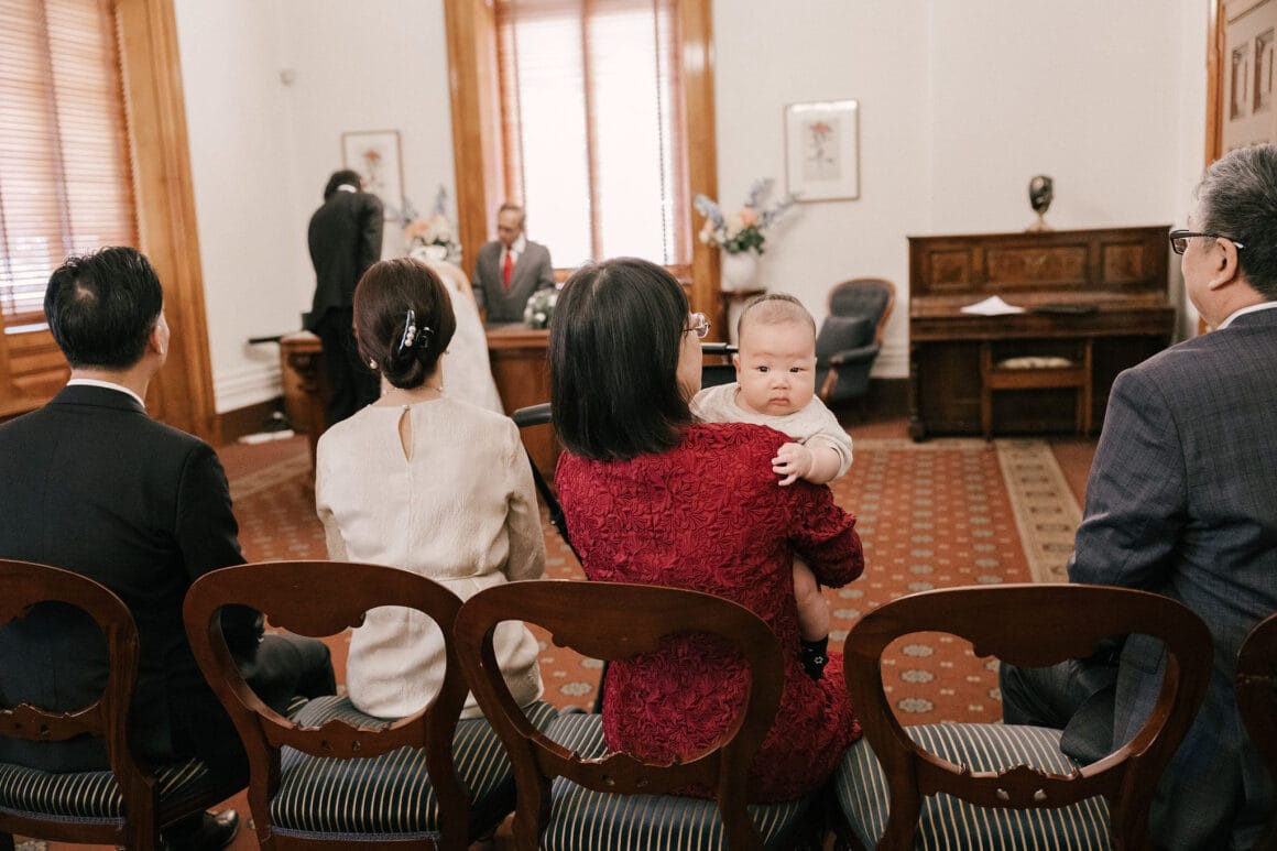 “Oh, we were late to the Treasury Building, worried we might miss our appointment and not be able to get married! We ran to the building, pushing our son in his pram. It was hilarious—and somehow totally symbolic of us as a post-COVID couple. We struggled and felt overwhelmed as new parents, but we loved and supported each other every step of the way. We’d been completely buried in the full-time job of caring for this tiny human, with little time just for us. But that day reminded us where we came from, and even with the added complexity in our relationship, it only made us stronger.”