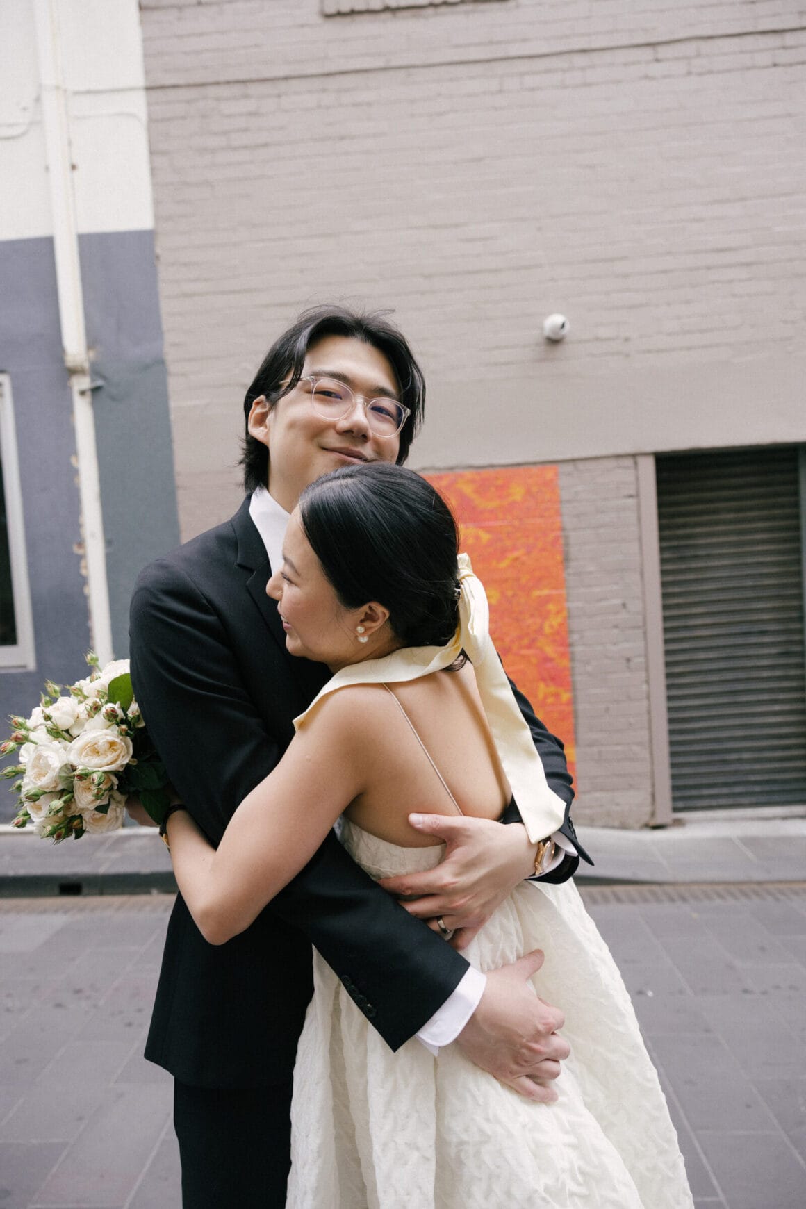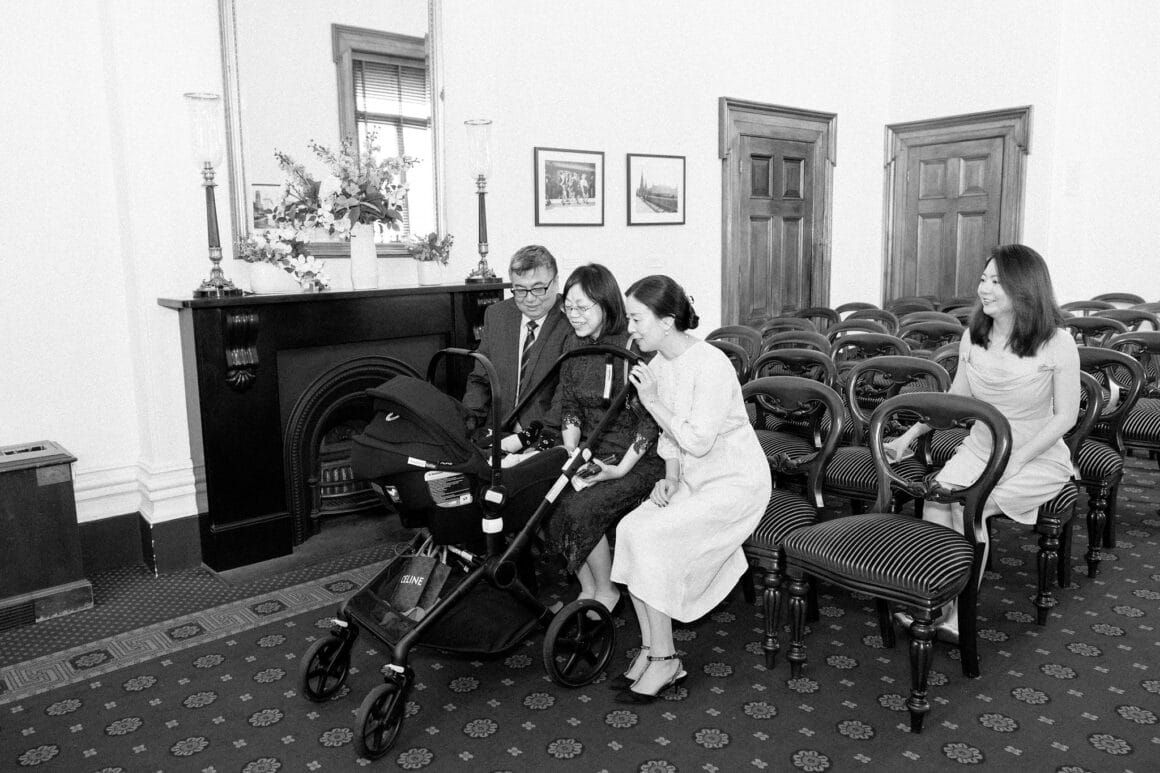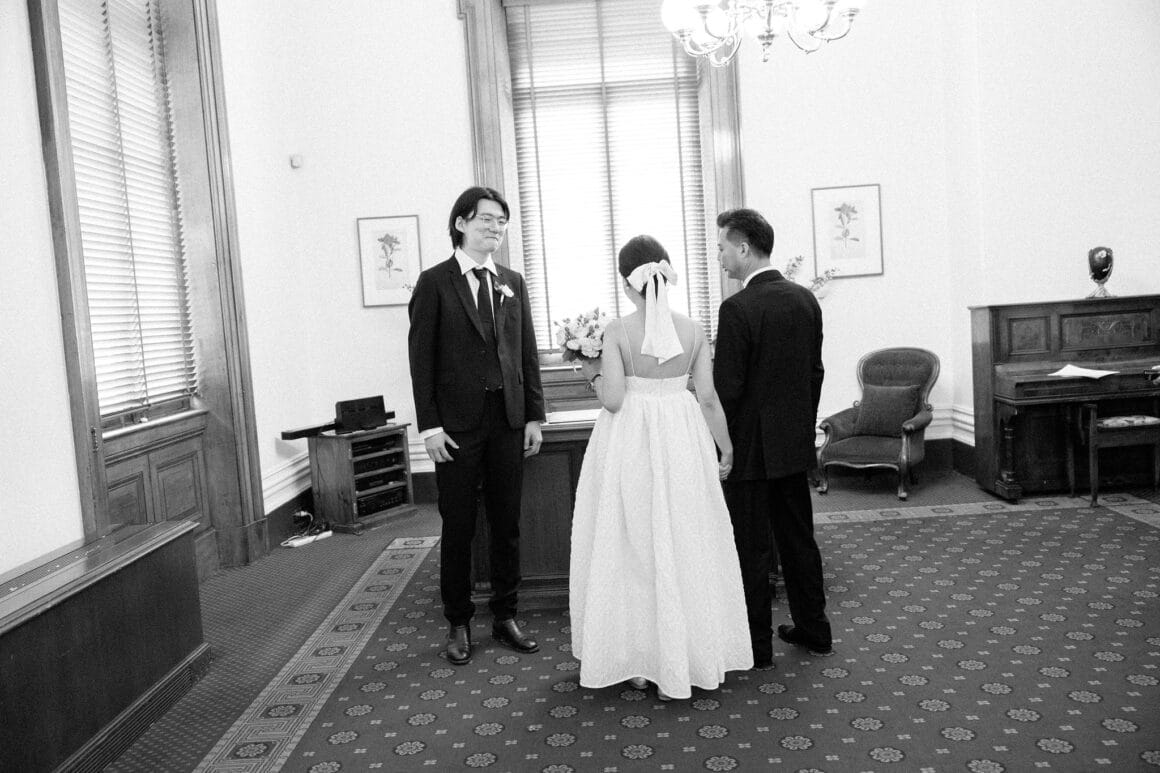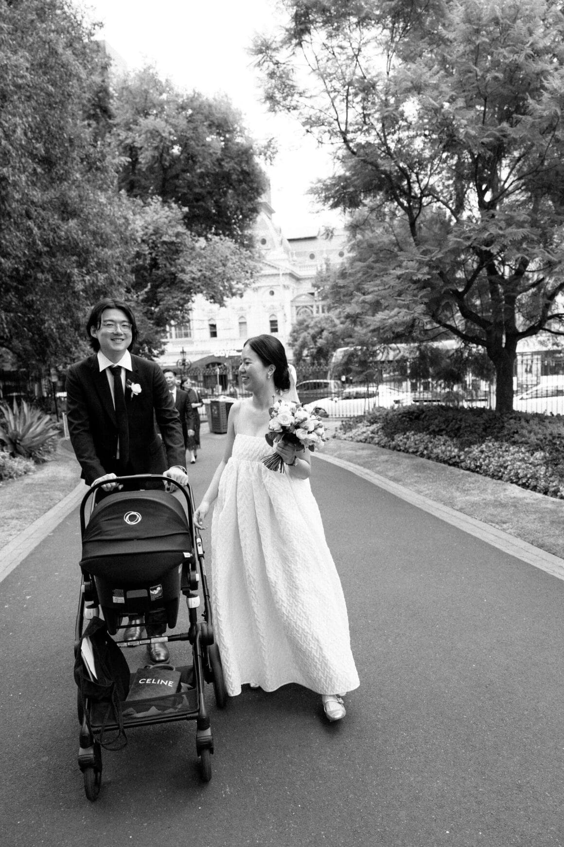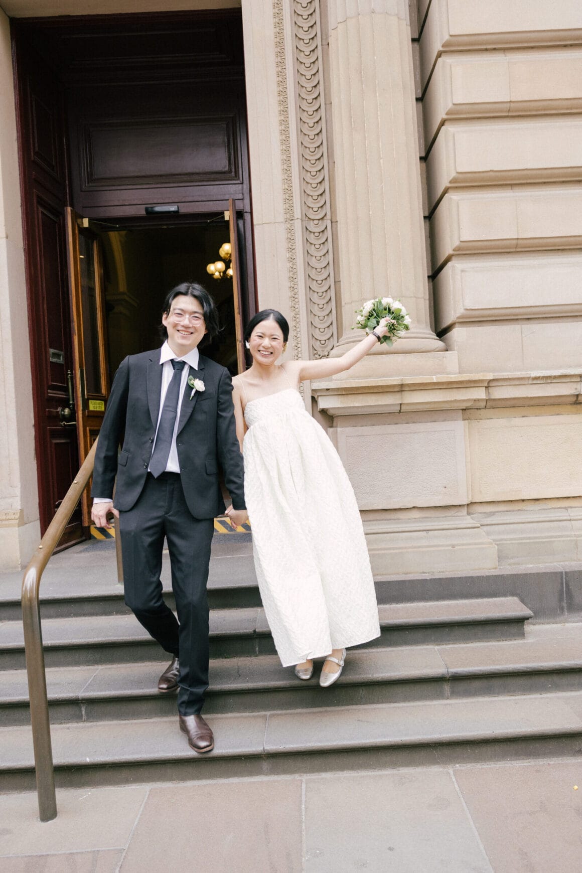 “Oh, we were late to the Treasury Building, worried we might miss our appointment and not be able to get married! We ran to the building, pushing our son in his pram. It was hilarious—and somehow totally symbolic of us as a post-COVID couple. We struggled and felt overwhelmed as new parents, but we loved and supported each other every step of the way. We’d been completely buried in the full-time job of caring for this tiny human, with little time just for us. But that day reminded us where we came from, and even with the added complexity in our relationship, it only made us stronger.”