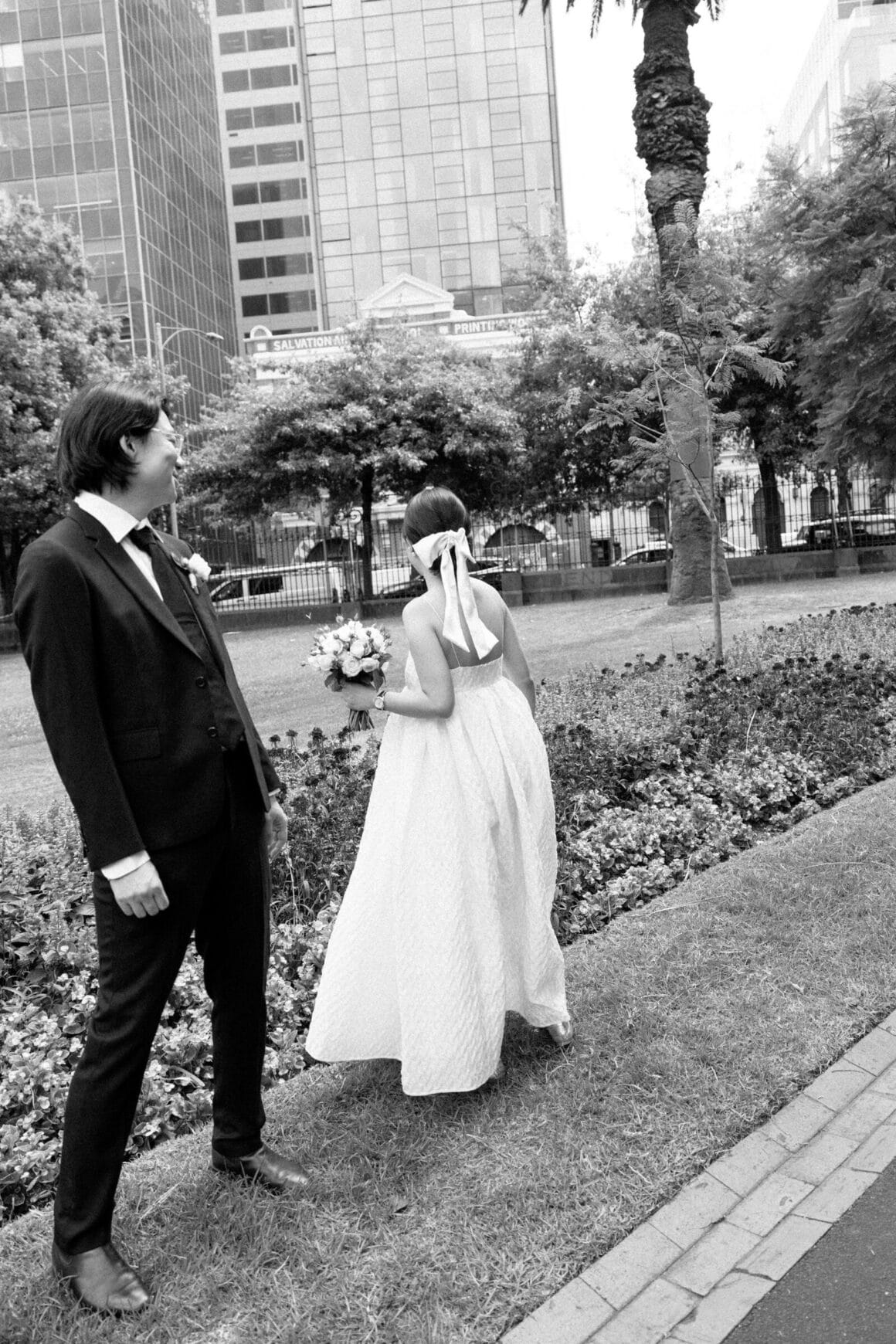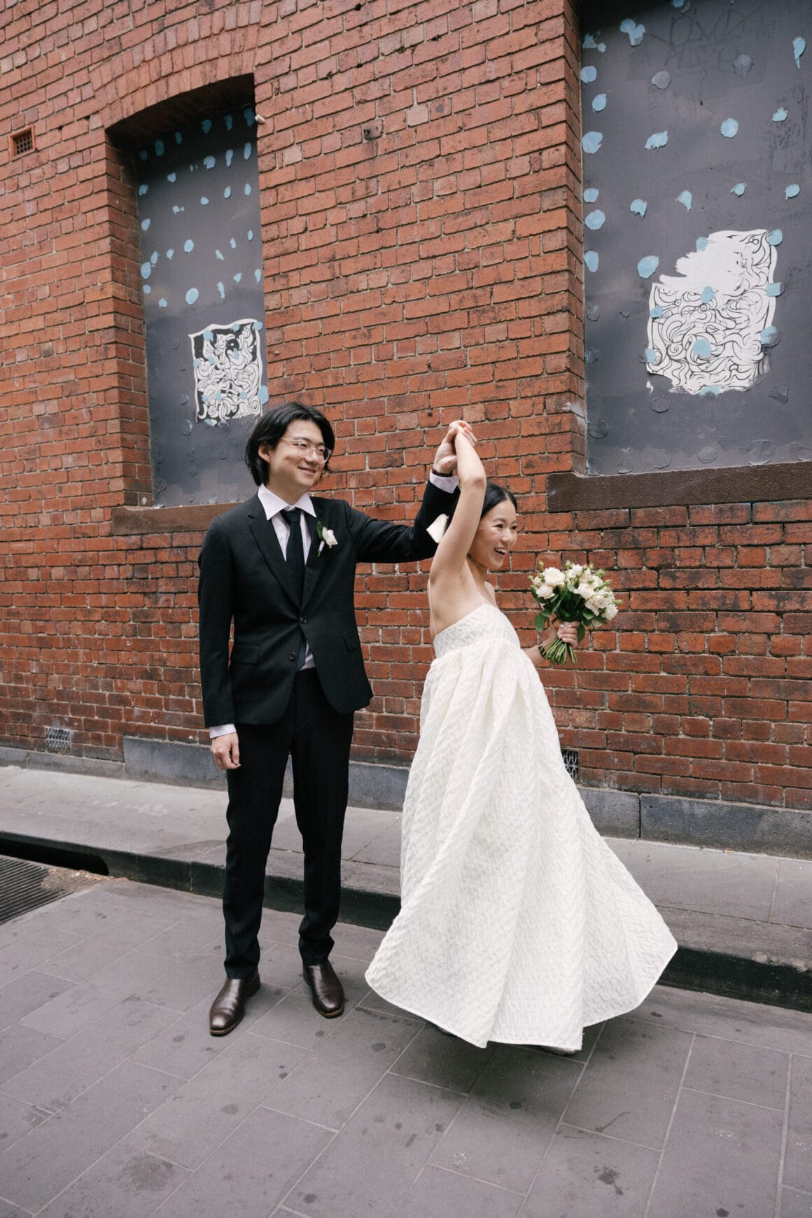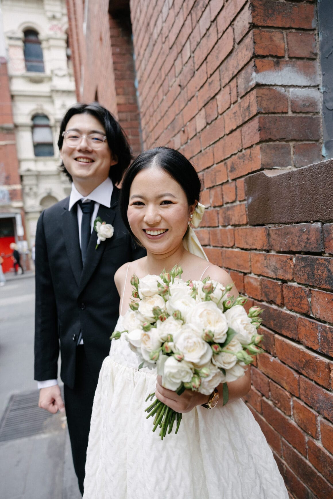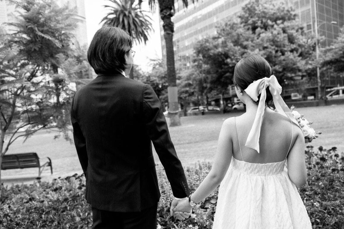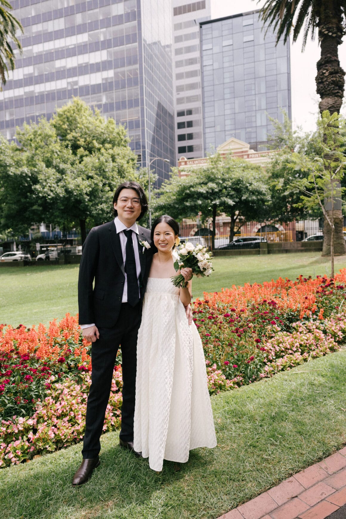 “Oh, we were late to the Treasury Building, worried we might miss our appointment and not be able to get married! We ran to the building, pushing our son in his pram. It was hilarious—and somehow totally symbolic of us as a post-COVID couple. We struggled and felt overwhelmed as new parents, but we loved and supported each other every step of the way. We’d been completely buried in the full-time job of caring for this tiny human, with little time just for us. But that day reminded us where we came from, and even with the added complexity in our relationship, it only made us stronger.”