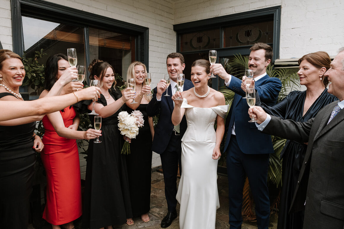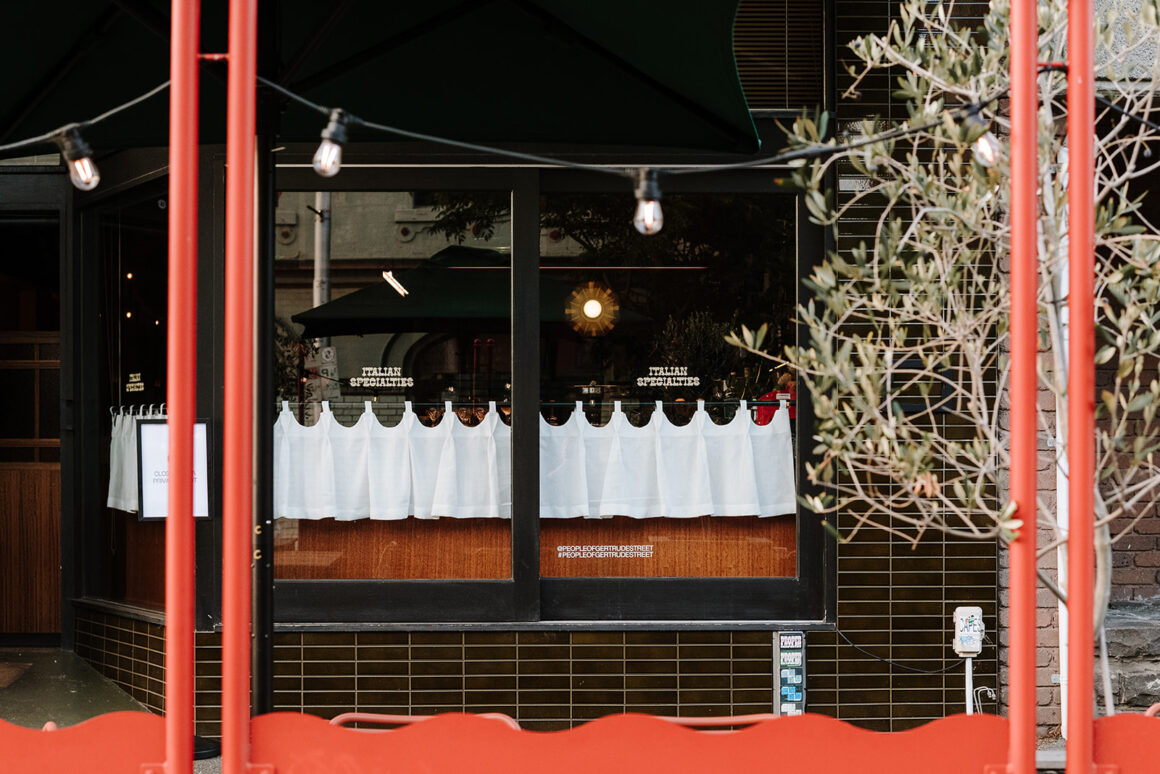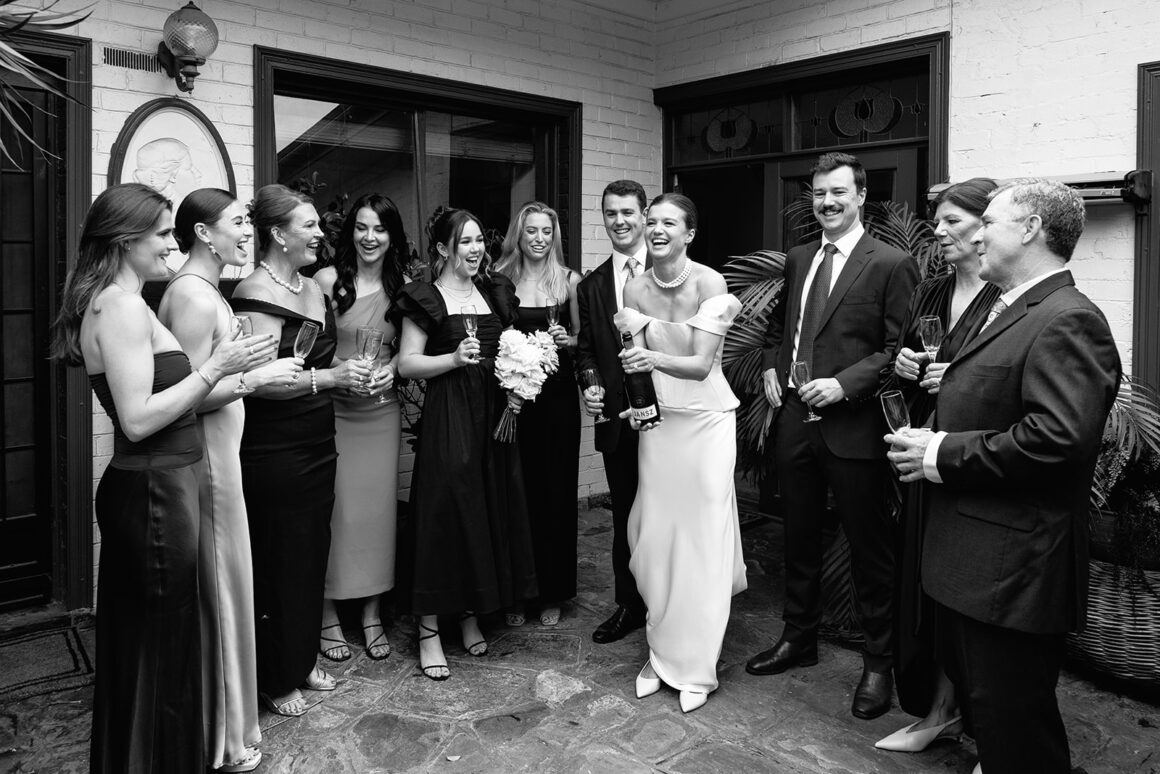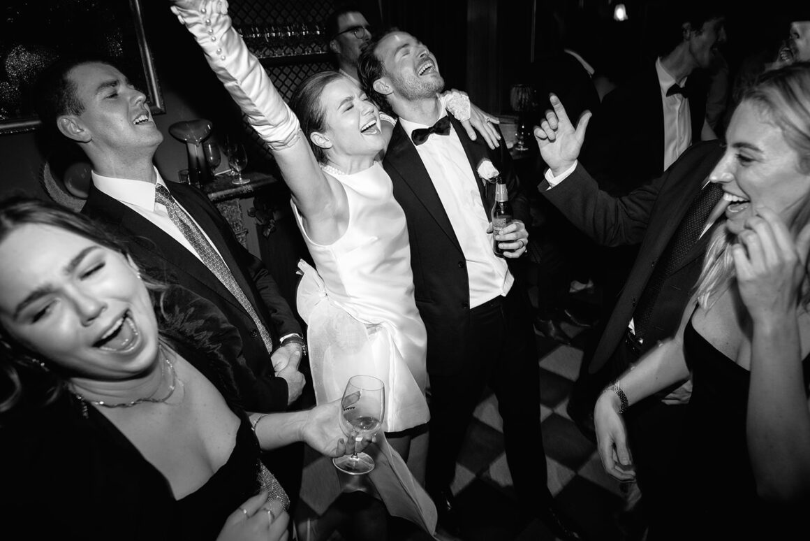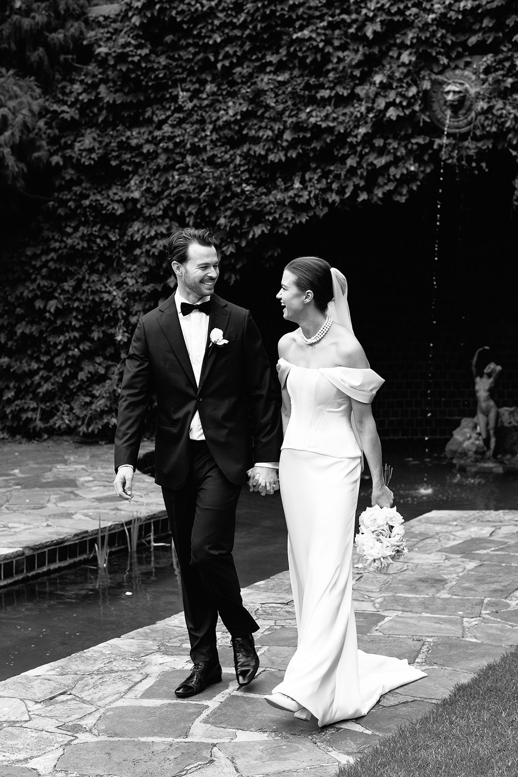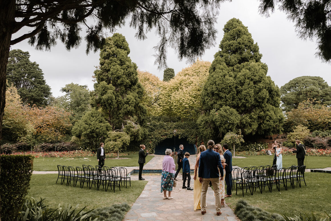 The Pioneer Women’s Garden was an easy decision for the ceremony; it’s a central, intimate garden flanked by flowers and a bubbling fountain. We wanted the reception space to feel like an authentic Melbourne establishment; somewhere warm and brimming with personality, with a superb wine list, excellent food and the kind of interiors you could lean into without obscuring with your own decorations. Crucially, it needed to offer multiple spaces as opposed to one big hall; where you could park up for cocktails at a retro bar, sink meatball subs on the balcony under the stars, or squeeze yourself into a room with a live band and heaving dancefloor. Rocco’s delivered on all fronts (and more).”