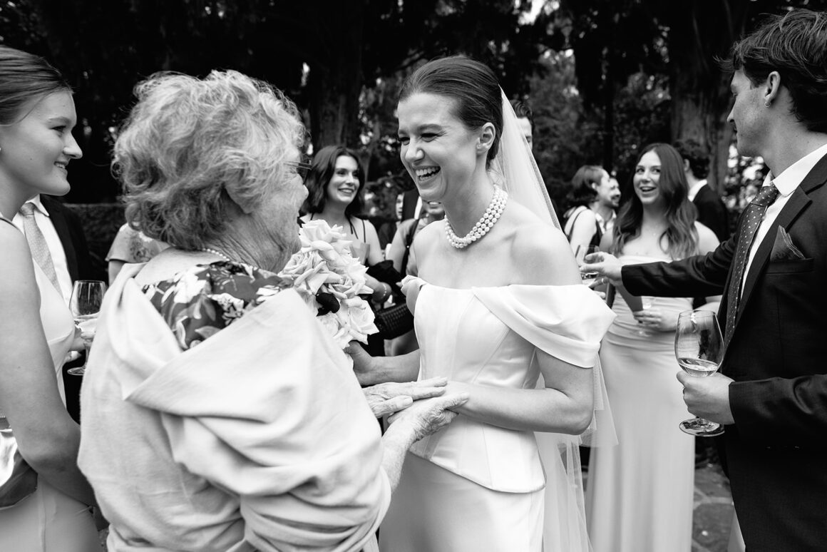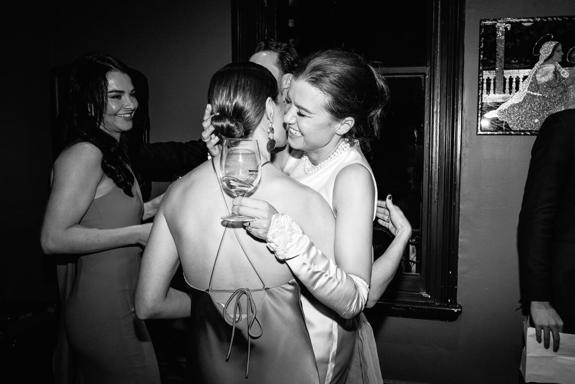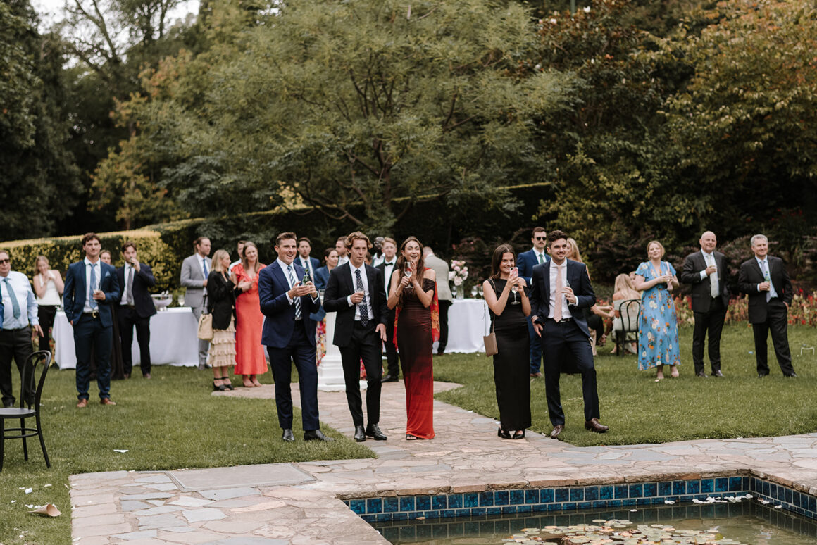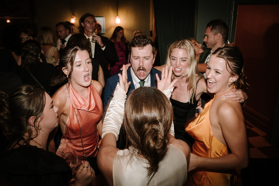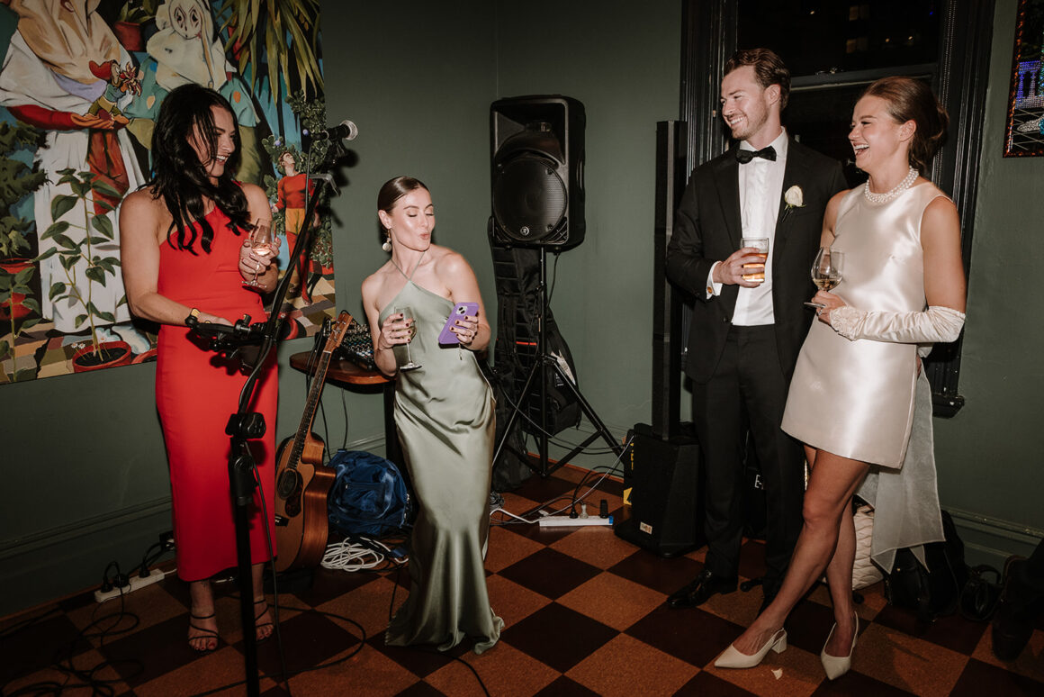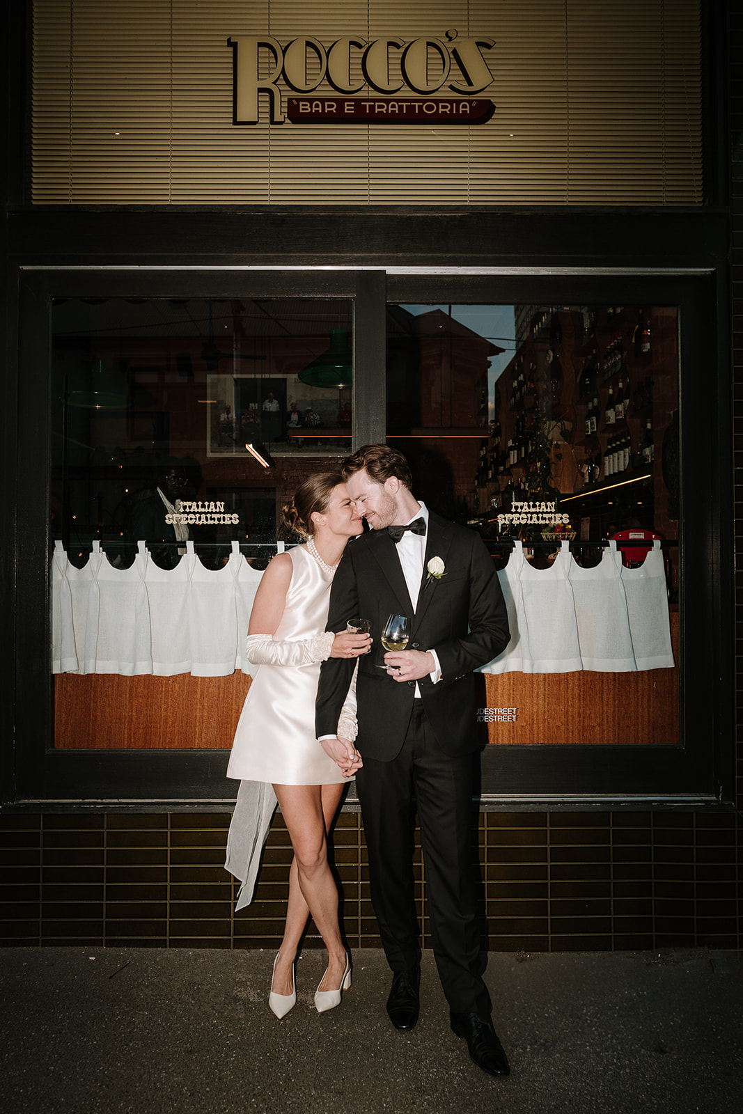 The Pioneer Women’s Garden was an easy decision for the ceremony; it’s a central, intimate garden flanked by flowers and a bubbling fountain. We wanted the reception space to feel like an authentic Melbourne establishment; somewhere warm and brimming with personality, with a superb wine list, excellent food and the kind of interiors you could lean into without obscuring with your own decorations. Crucially, it needed to offer multiple spaces as opposed to one big hall; where you could park up for cocktails at a retro bar, sink meatball subs on the balcony under the stars, or squeeze yourself into a room with a live band and heaving dancefloor. Rocco’s delivered on all fronts (and more).”