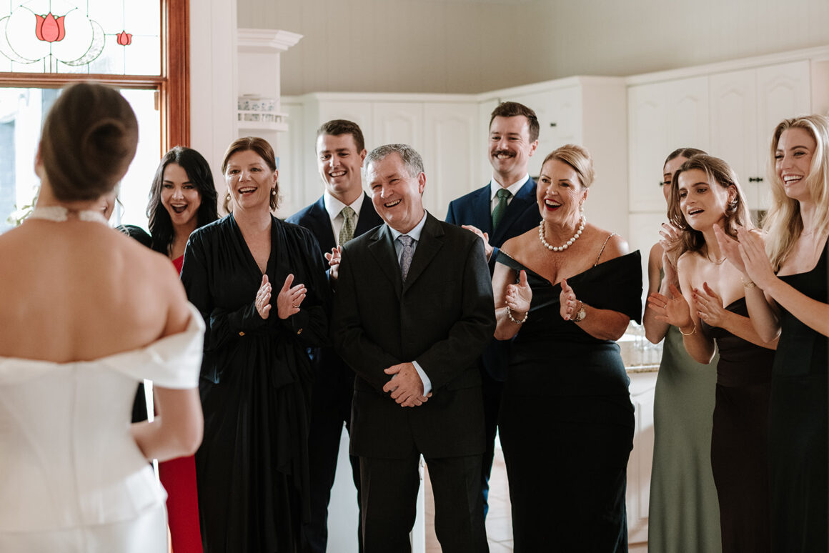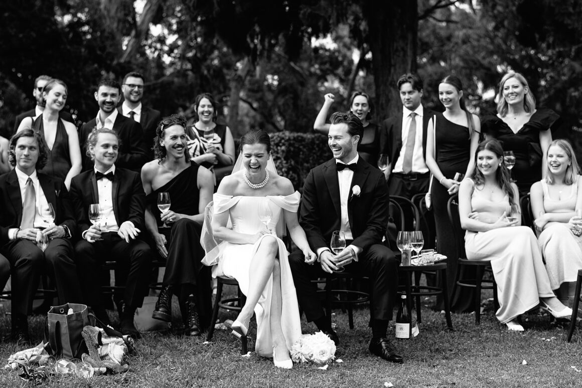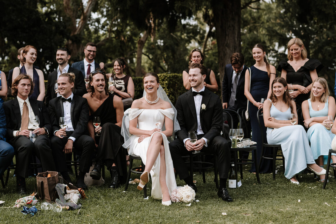 “We loved organising a wedding that truly reflected us. Anything that started to stress us out was binned and as a result we really enjoyed the planning process as well as the day. That meant getting married at the courthouse a week prior so one of our greatest mates could “marry” us on the day. It meant no family friends or bridal parties. It meant a huge bucks and no hens. It meant booking a band after we saw them at a gig when we were many beers deep. It meant baking the world’s most average cake and laughing that we forced our friends to eat it.”