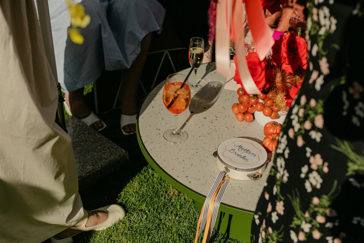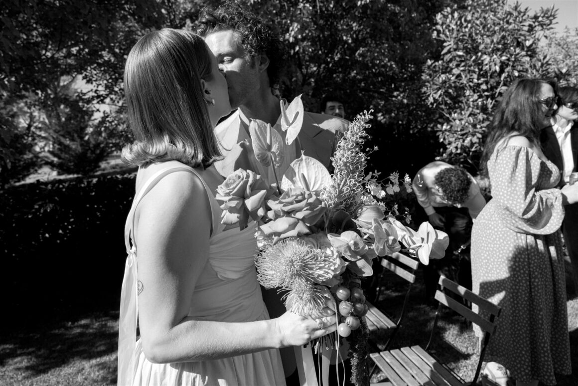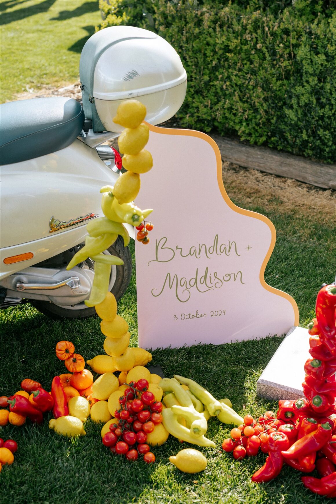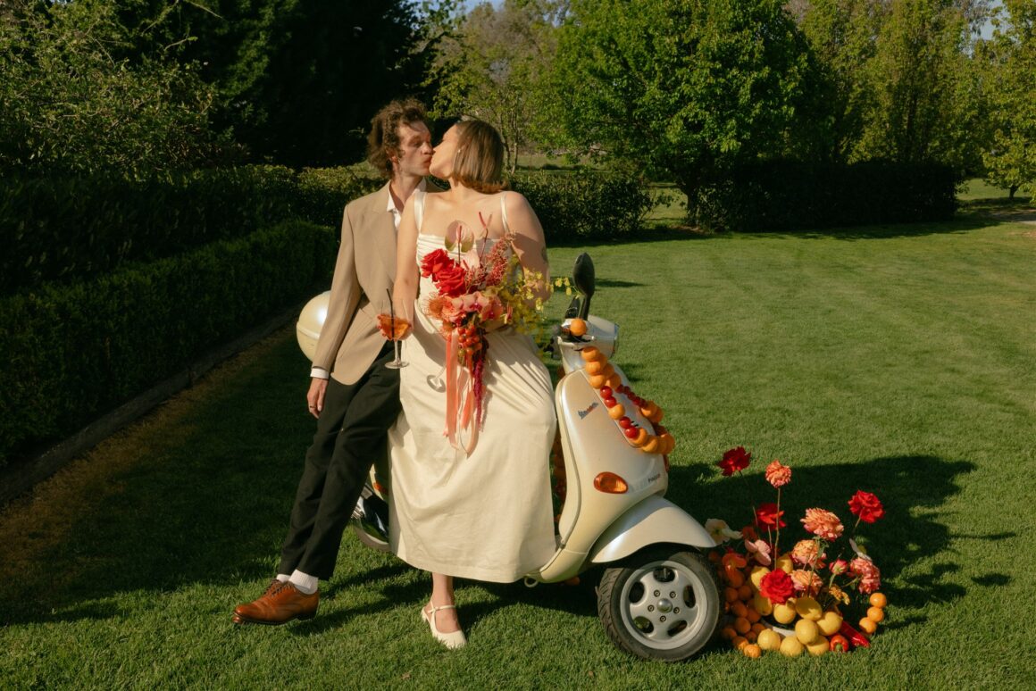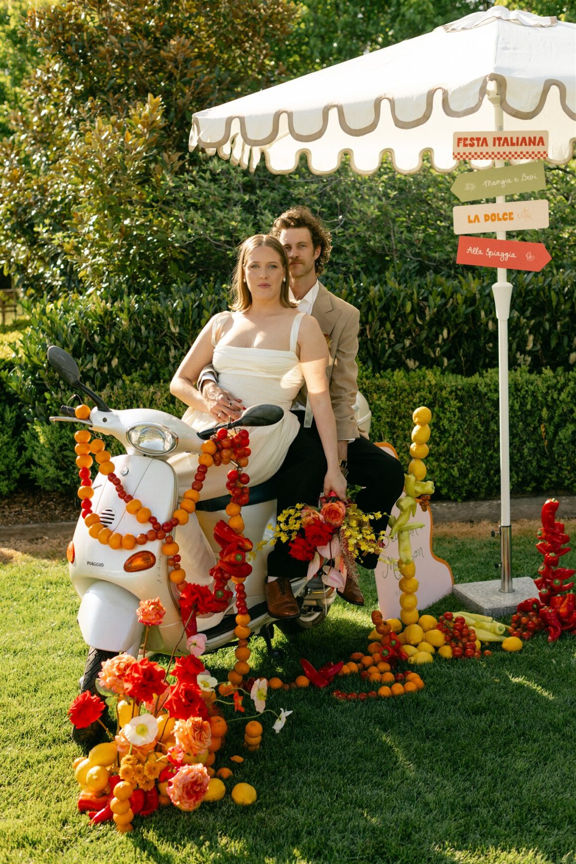 Yep, Dope Elope (the brainchild of Sarah Marie Celebrancy) coordinated the whole ‘La Dolce Vita’ themed shebang, including stationery and signage by Maeke and photography by Corinna and Dylan. In fact, the couple didn’t know what their wedding actually looked like until the day of and, while this might seem unsettling for some, Mads and Brandan share that the surprise was undoubtedly a highlight. Scroll on and take a squiz.