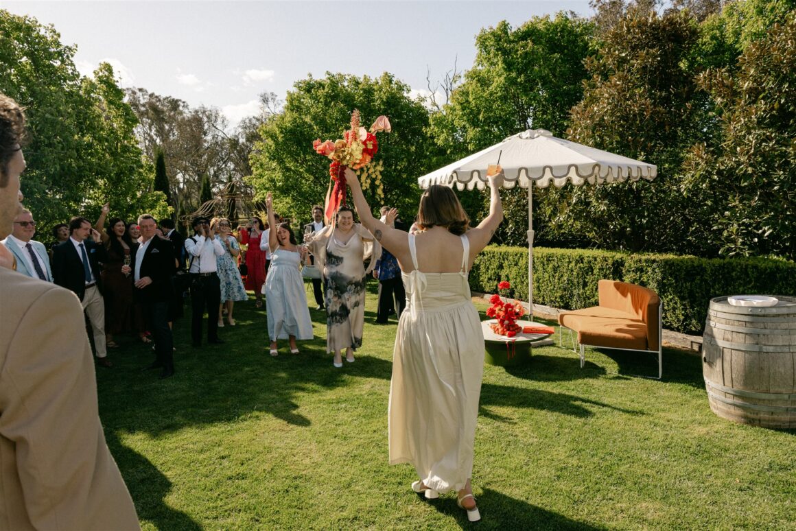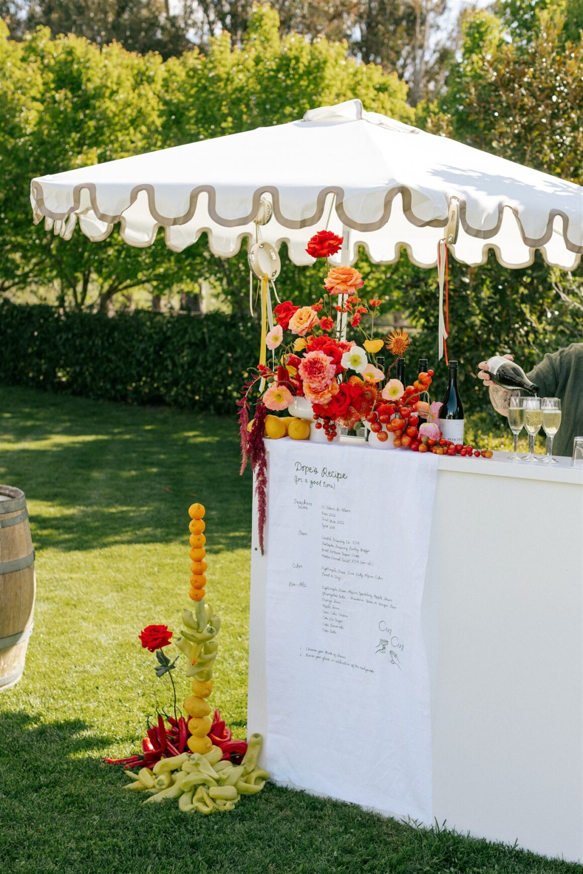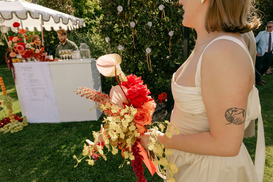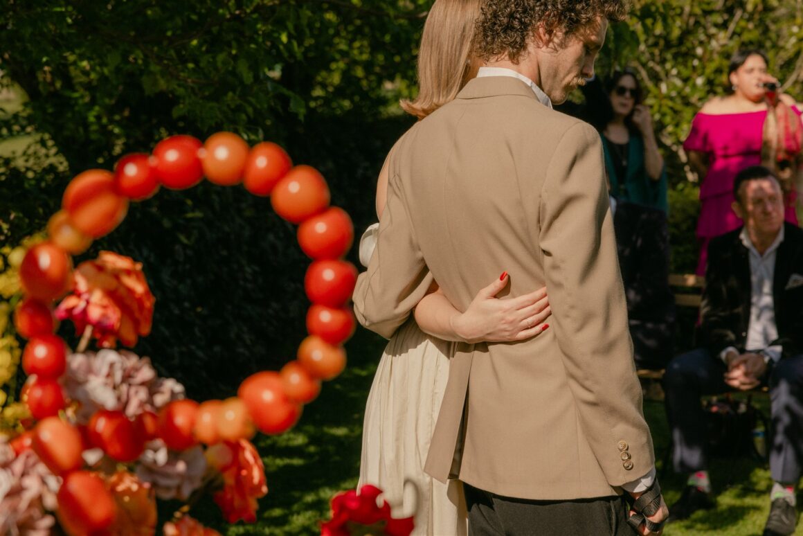Yep, Dope Elope (the brainchild of Sarah Marie Celebrancy) coordinated the whole ‘La Dolce Vita’ themed shebang, including stationery and signage by Maeke and photography by Corinna and Dylan. In fact, the couple didn’t know what their wedding actually looked like until the day of and, while this might seem unsettling for some, Mads and Brandan share that the surprise was undoubtedly a highlight. Scroll on and take a squiz.