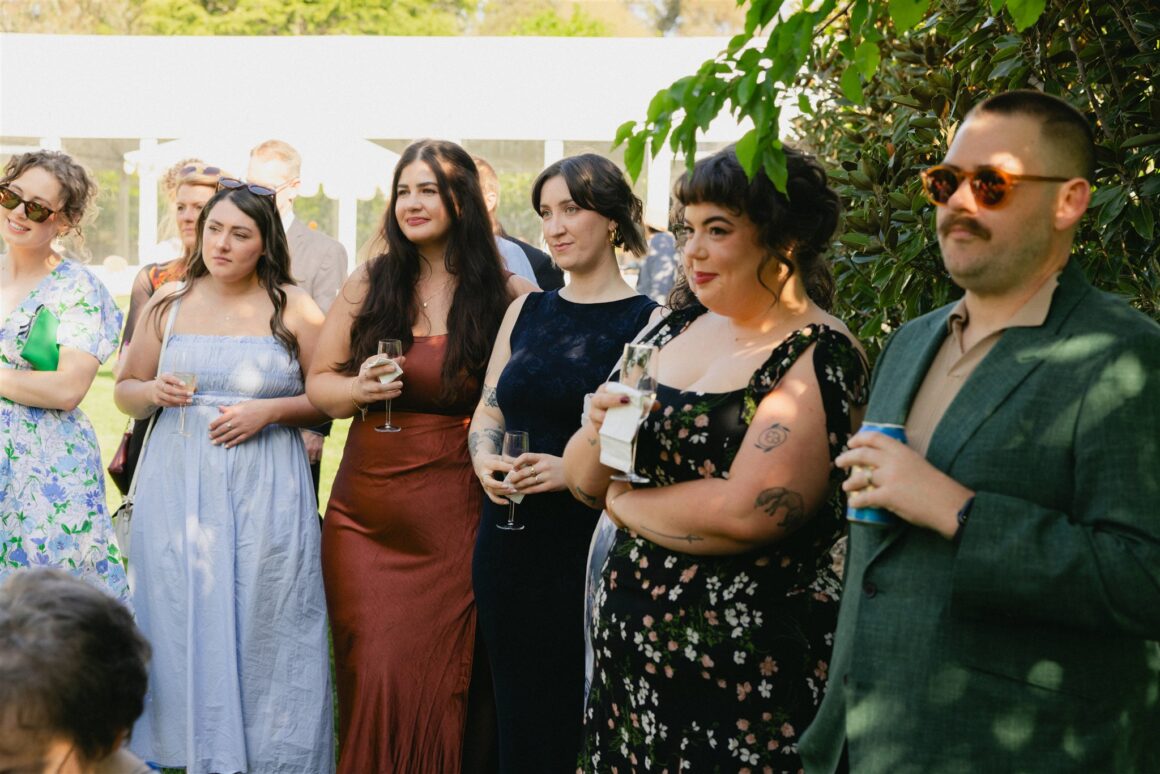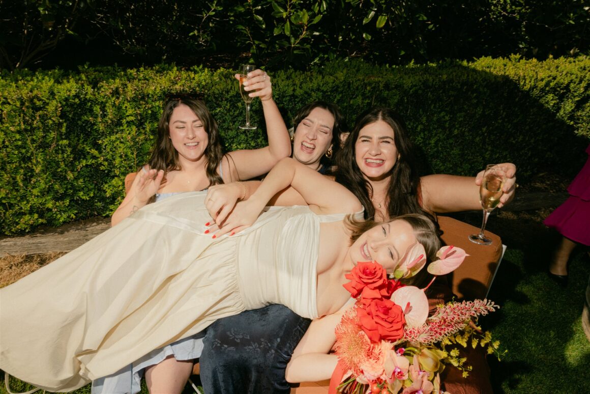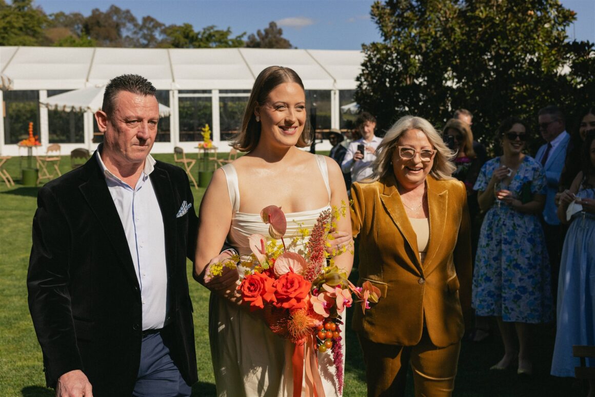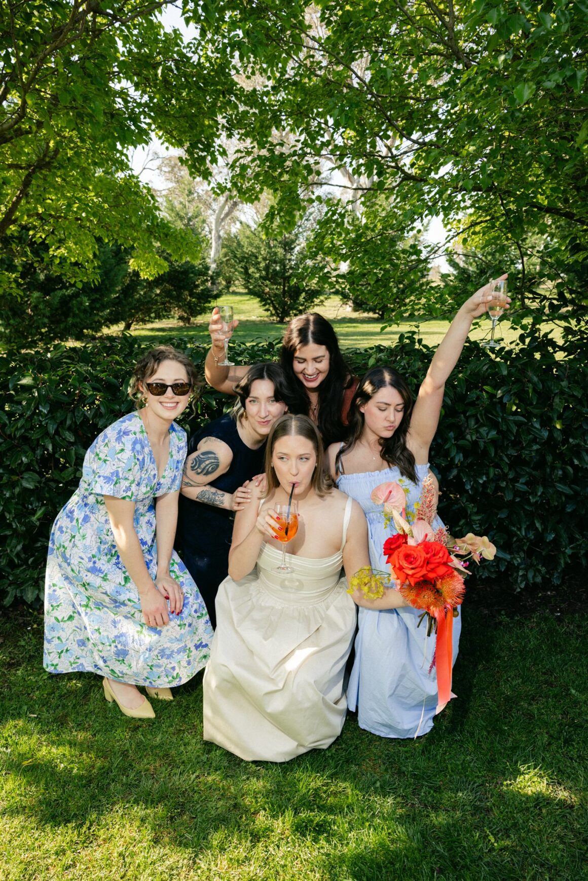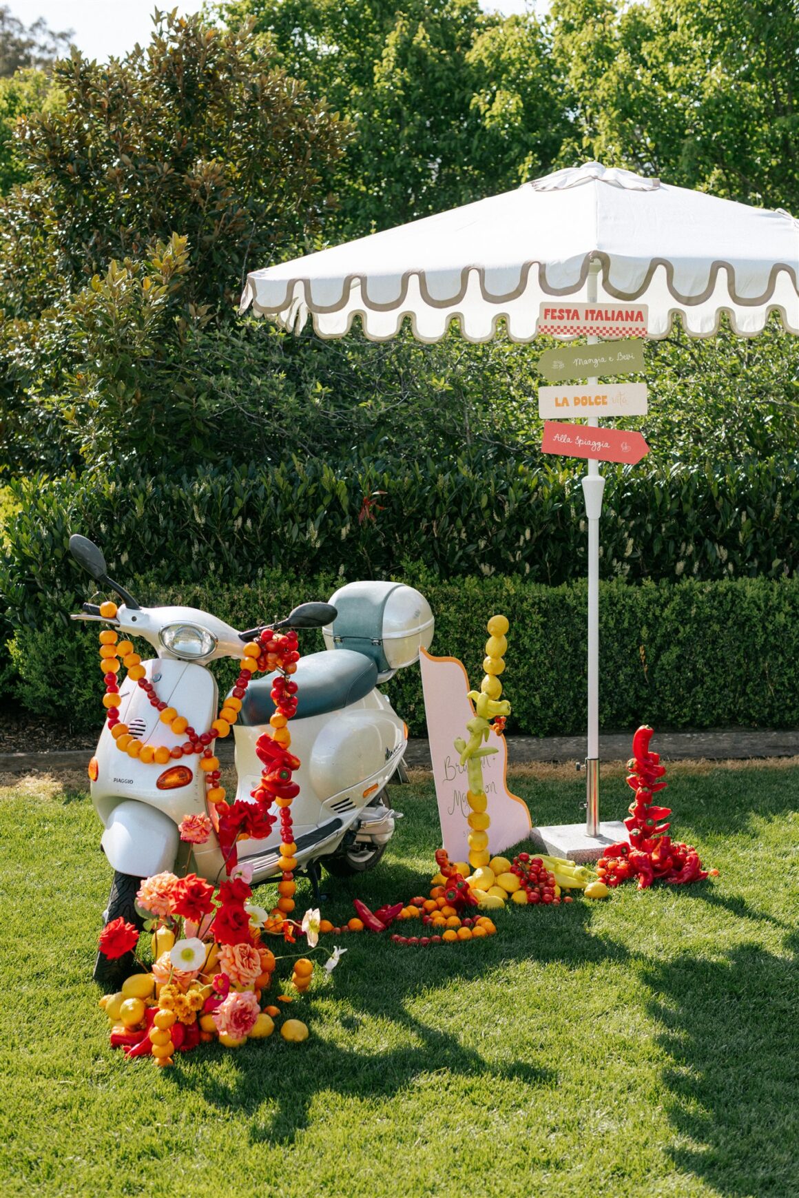 Yep, Dope Elope (the brainchild of Sarah Marie Celebrancy) coordinated the whole ‘La Dolce Vita’ themed shebang, including stationery and signage by Maeke and photography by Corinna and Dylan. In fact, the couple didn’t know what their wedding actually looked like until the day of and, while this might seem unsettling for some, Mads and Brandan share that the surprise was undoubtedly a highlight. Scroll on and take a squiz.