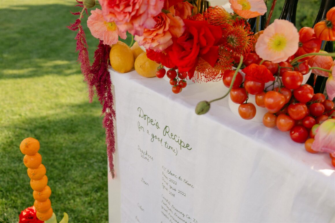 (Mads) “Everything was so perfect. I love that it was a surprise and I had no idea what anything would look like. I was obsessed with the flowers!! I couldn’t have asked for anything more perfect.” (Brandan) “I loved the surprise of it all, I didn’t know what I was walking into or what I would expect. I loved the incorporation of fruits and vegetables into the floral displays.”