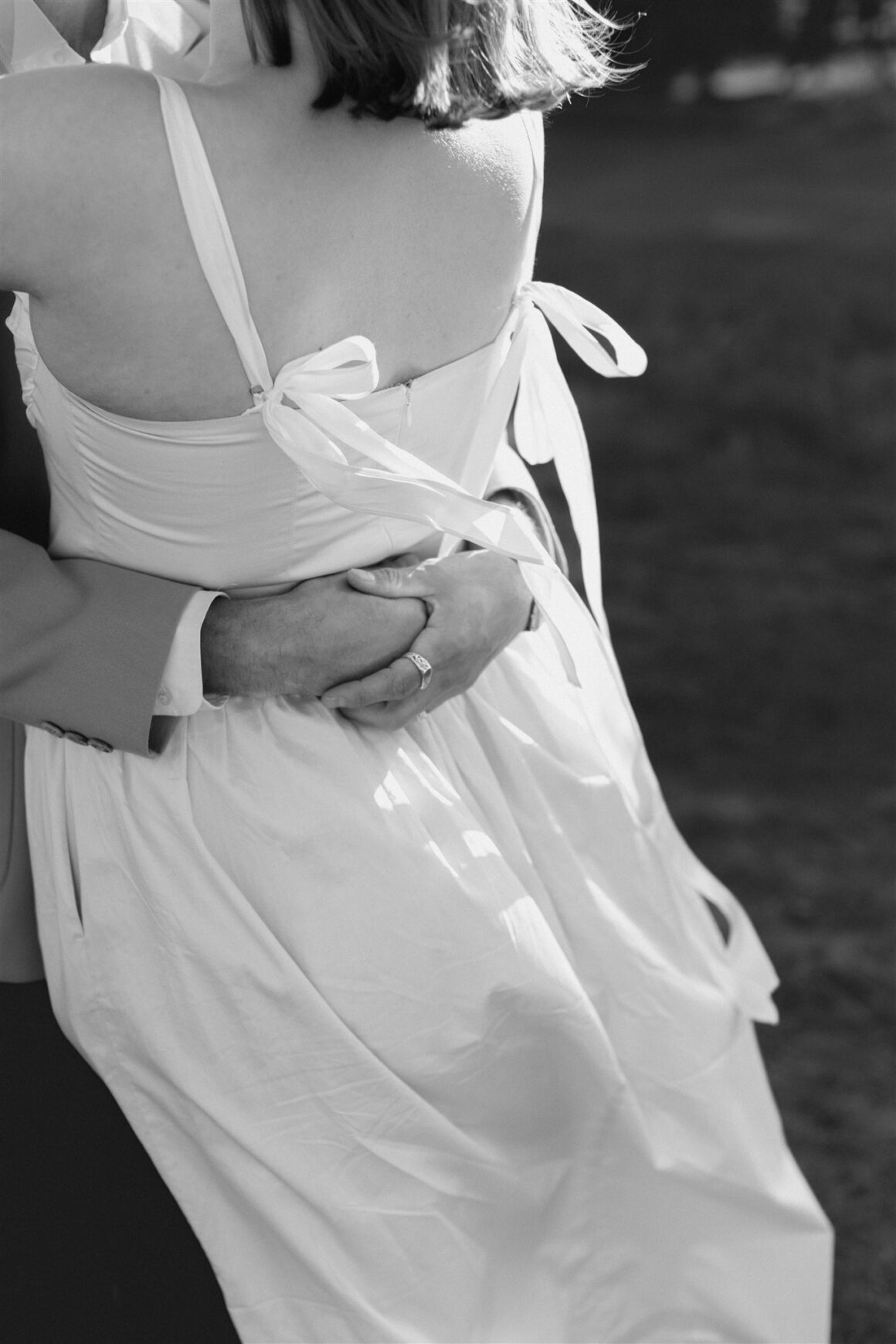“I went to a bridal shop to try on dresses and it was very overwhelming. It was a fun experience but I had something a bit more unique in mind. I had been searching online and I found a small Norwegian brand called Murlong Cres. I loved the simplicity of their dresses. I ordered it on a whim and it came and fit perfectly! I stopped looking there and then.” (Brandan) “We found my jacket on Mad’s Birthday, when we went out vintage shopping, It’s from a great little antique store in Canberra called Down Memory Lane.”