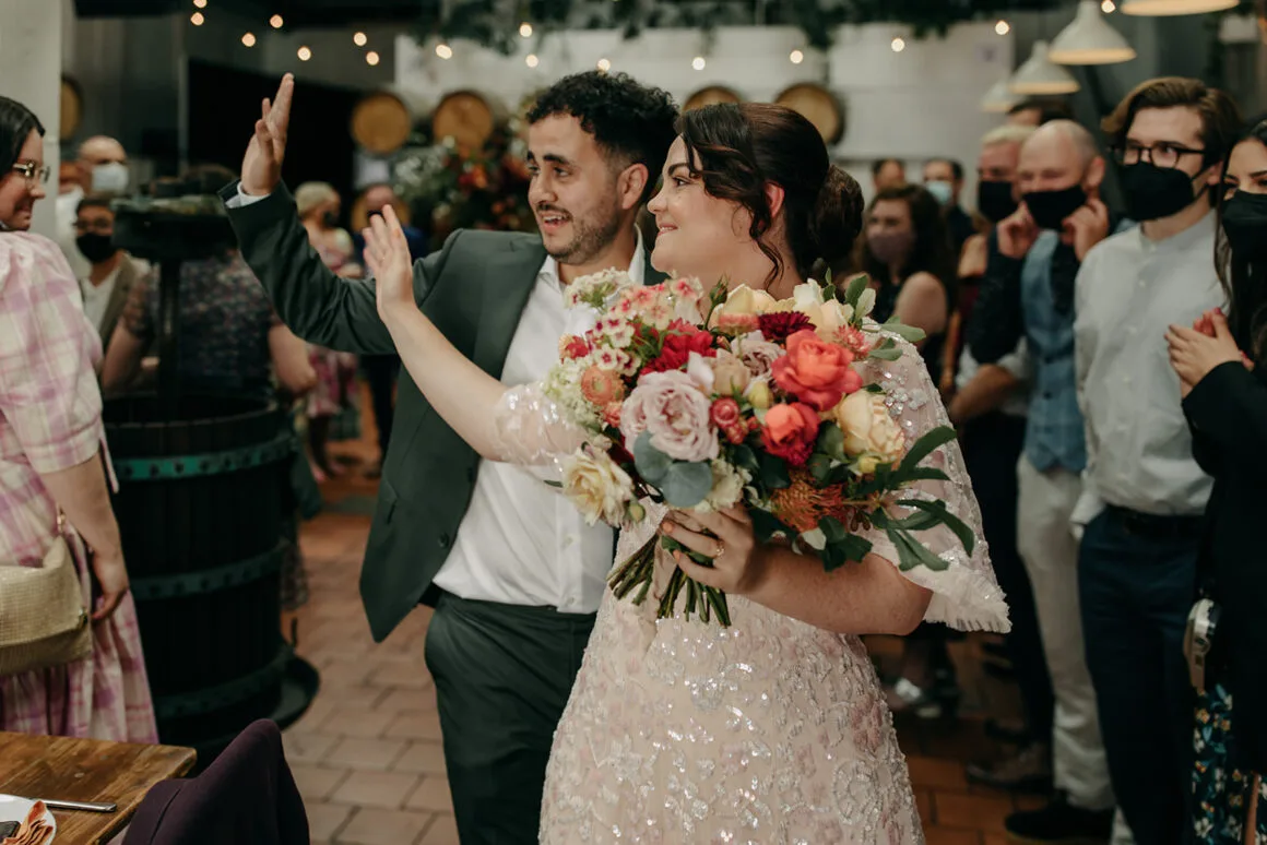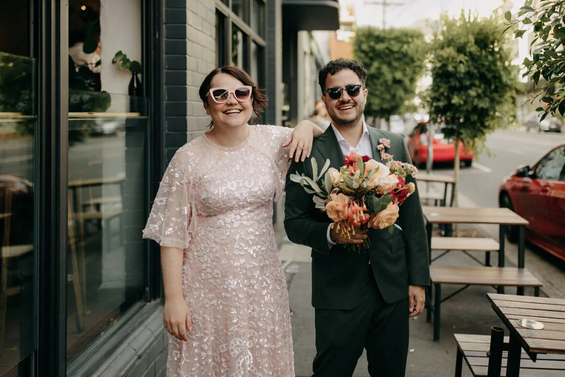 These guys are all about the fun, folks, and you can see it in every darn moment of their day. From bride Maddy’s pink wedding dress to their urban winery venue, this Melbourne wedding was one “big fabulous party”, just as the bride and groom hoped. “We decided to pick the traditions we liked, and skip the traditions that didn’t feel like us.”