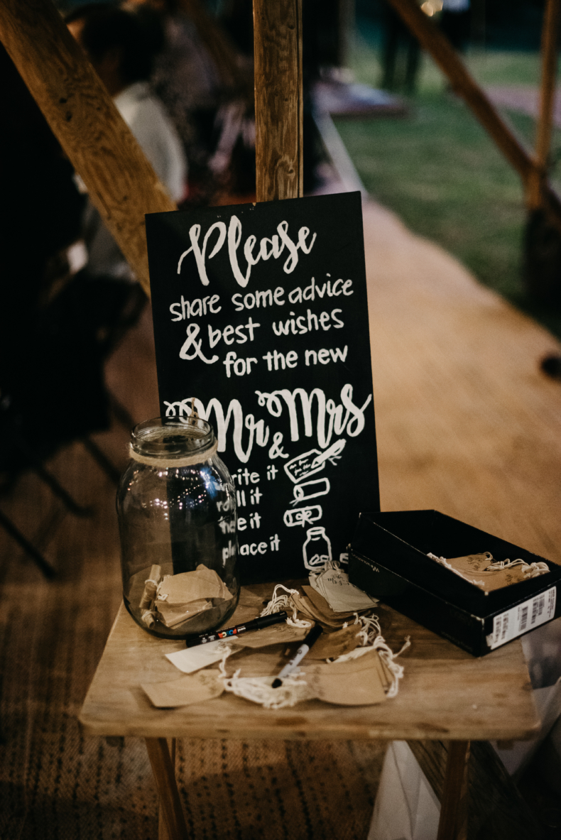 DIY “Yes we did most of the setup, signage (fabric and seating chart), invitations, place cards, menus, fire pits, candle holders, pillows. We wanted to waste as little as possible and also loved the idea of being able to produce something that we can bring into our home.”