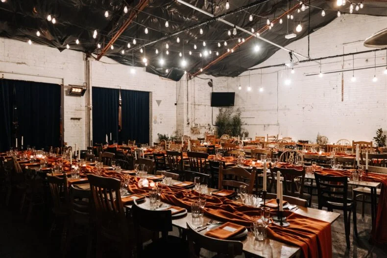 THE VENUE “Kiri was the one who found The Line and he knew straightaway it was perfect. It was a blank canvas, a bit rough around the edges and with loads of character. There was space outside to have gyros cooked on site (a dream of Kiri’s), and, most importantly, concrete floors, which meant we could smash plates!”