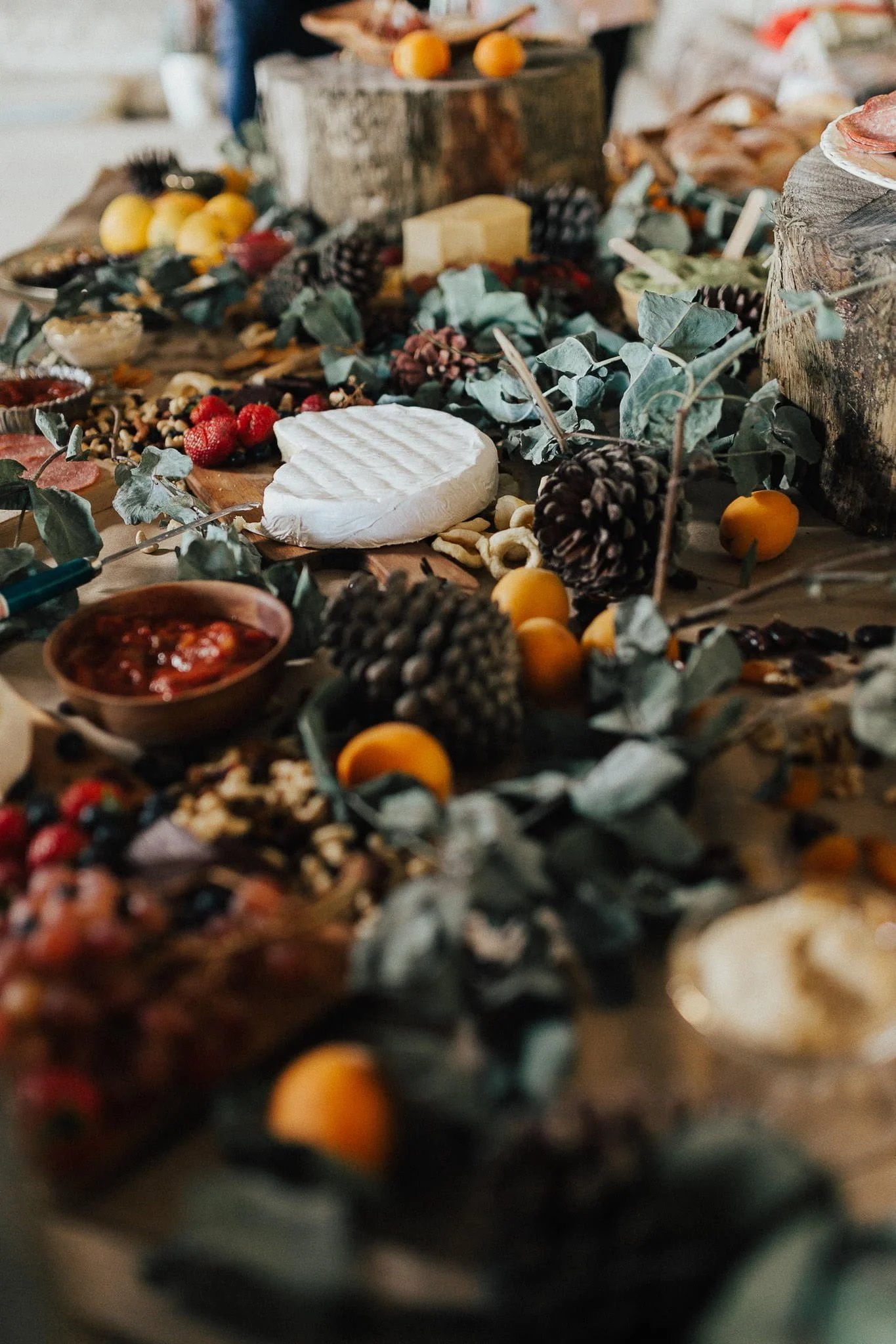 DIY “Me and my best friend, Bec spent the week before the wedding picking gum leaves, green leaves, bush leaves, etc. Really any native plant that we could find on the side of the road. Oh and pinecones-haha! We decorated the hay shed with these plants, large logs for seating and blue grain barrels that we covered in wool sacks. We loaned heaps of jars from the farm and filled them with little plants and candles and all of the signage to get to the wedding was handmade. The wedding was a DIY and lots of hands contributed.”