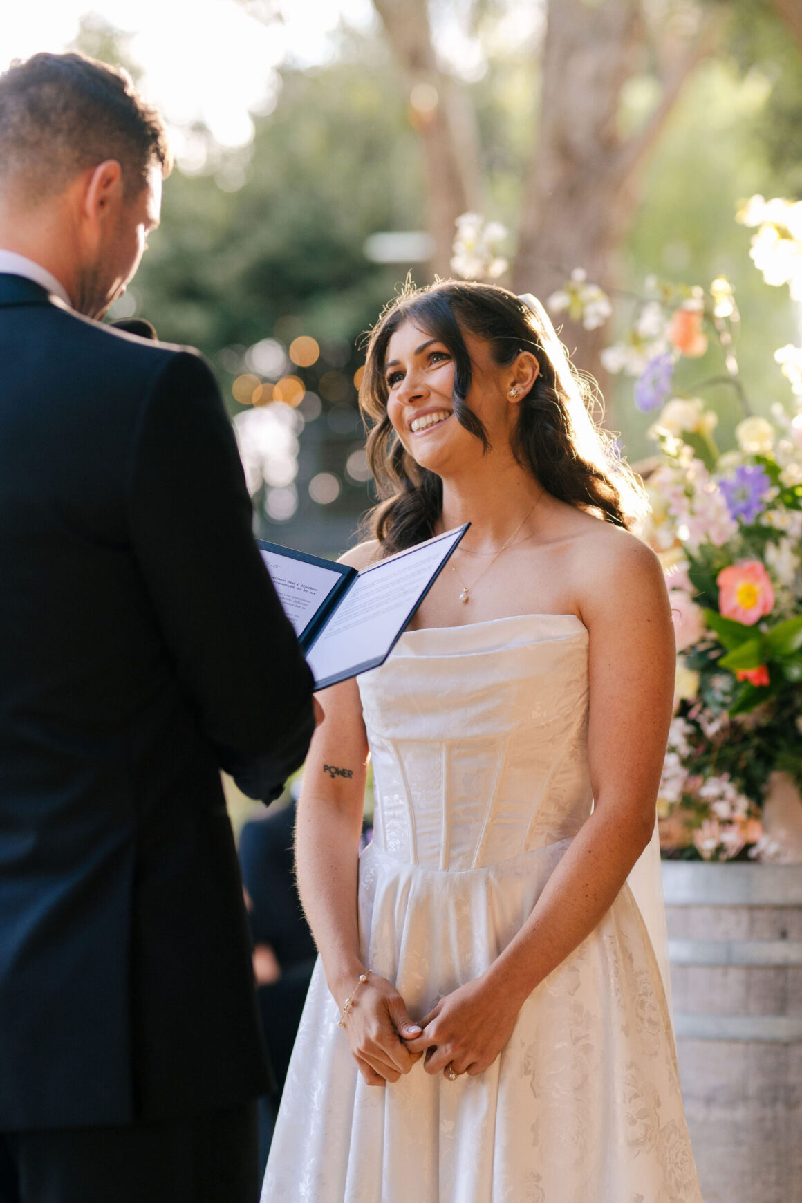 When we think ‘quintessential spring wedding’, something resembling Marisa and Matthew’s comes to mind: vineyard views, soft, whimsical tones, and an evening of festoon-lit dancing. “We weren’t too concerned with fuss or frills,” the couple shared. “But wanted our guests to leave feeling the love in the room and feeling like they had a little look into our hearts.”