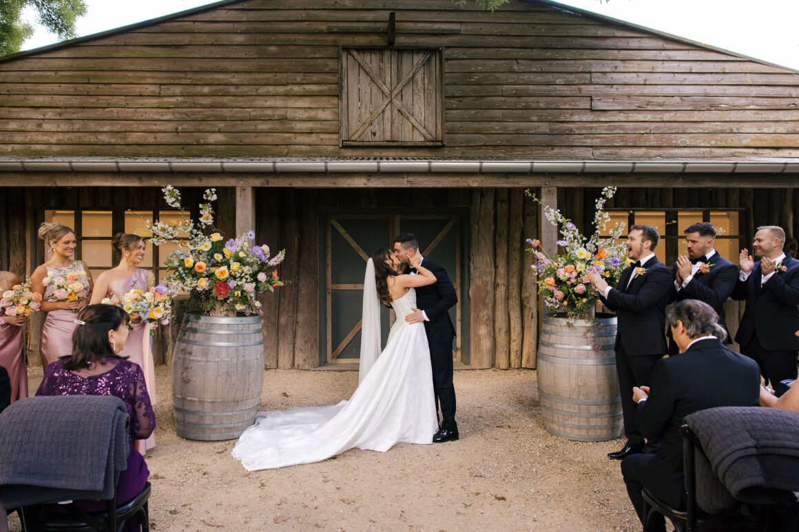 Upon visiting their peaceful Warrandyte venue, The Farm Yarra Valley, Marisa and Matthew were quickly won over by the stunning scenery and “genuine warmth of the team”. “It just felt so us — a beautiful boutique winery with incredible food and the perfect intimate dining space. We feel so lucky to have stumbled upon it and couldn’t have been in better hands.”