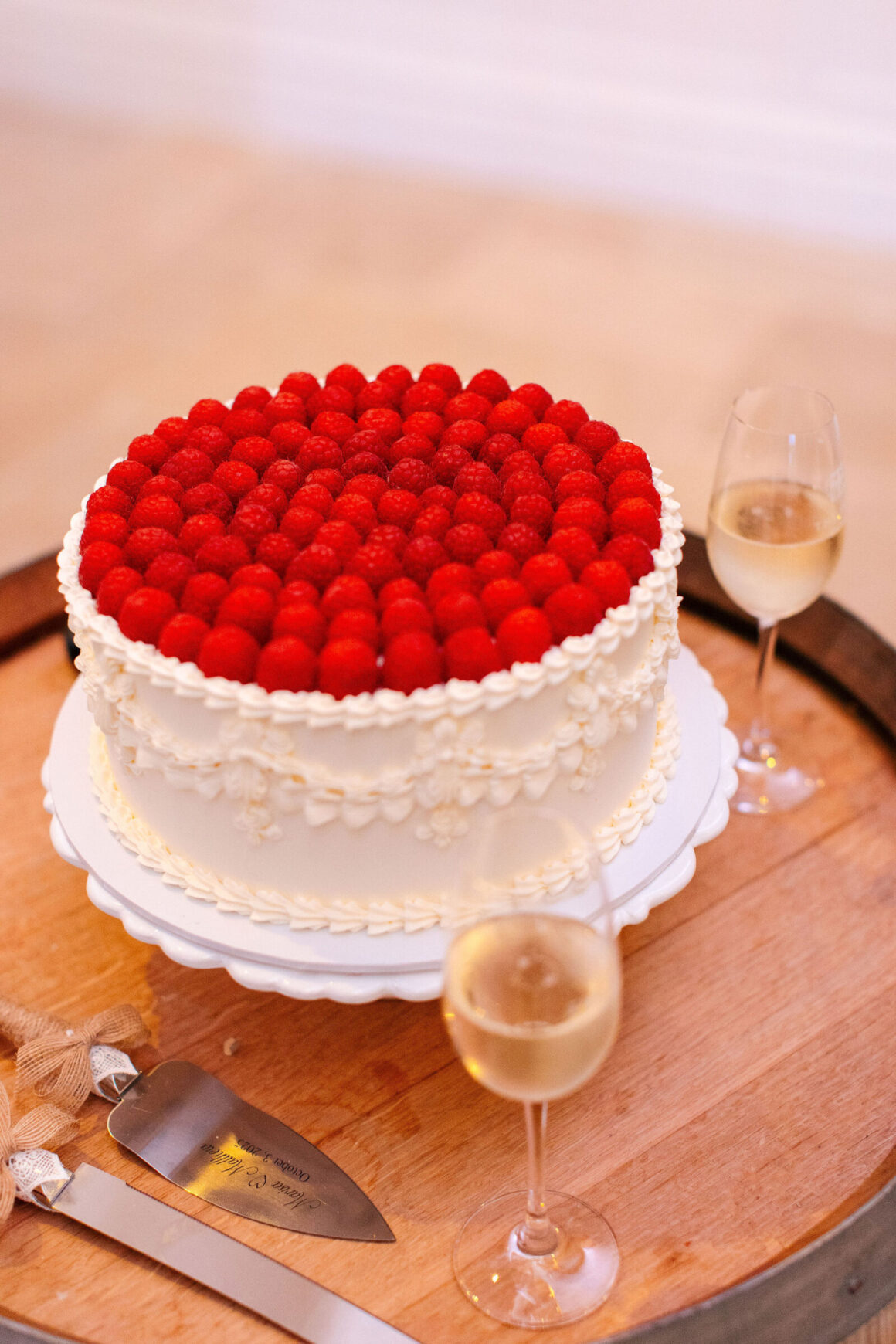 “We adored our flowers from Elsa and Gray, Chloe went above and beyond and really just nailed the brief. We wanted textures with soft spring colours, and were blown away with her arrangements. Our cake was also one of our favourite details, it was so stunning. We went with Good Good Cake, as Pip has some mean piping skills. We envisioned a classic look with the raspberries on top, which she executed perfectly. Not to mention, the cake was absolutely delicious as well, with many of our guests commenting on how great it was. . .”