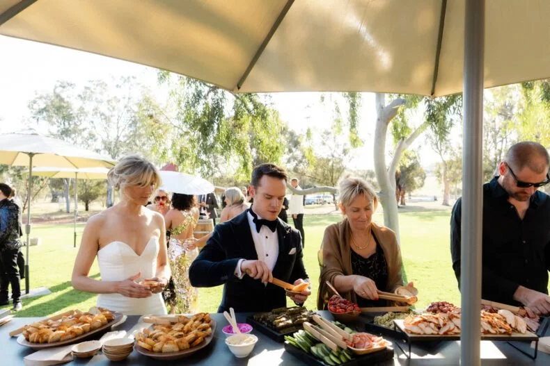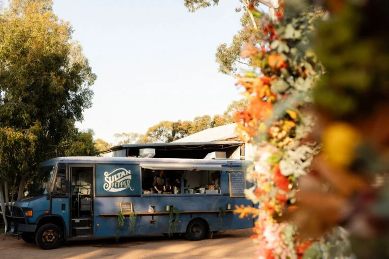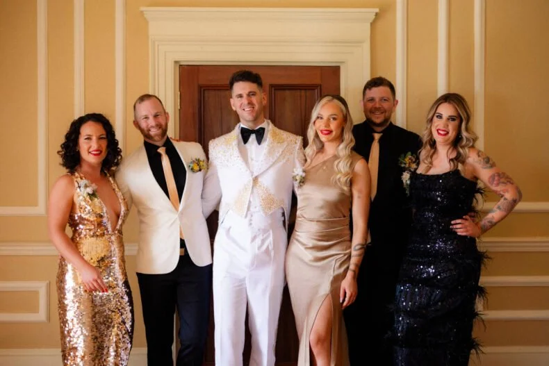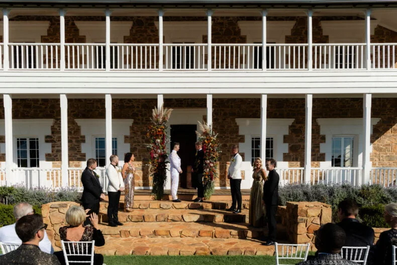 CONTRIBUTING VENDORS Photographer James Simmons Photography Cinematographer/Social Media Content Creator How Creative Media Florist Flowers for Weddings Perth Stationery Personalised Favours, The Wedding Star Wedding Invites Paperless Pos Wedding Website Say I Do Ceremony & Reception Venue Buckland Estate Catering Sultan Pepper (Food), The Yard Bar (Drinks) Wedding Favours Langmeil Winery Hire Items Black Label Events Lighting & Sound Hire DJ Sailor Entertainment David Lazarus, Art Simone, DJ Sailor Celebrant Marry Me Josh Rings Family heirloon, Greenwood Jewellers Transport Coach Hire Accomodation Cool Cabanas Glamping Parasols The Lantern Shop Custom acrylic fans Personalised Favours Biodegradable Confetti Cannons & Sparklers The Whole Bride THE GROOMS (Marty) Suit Reigner Clothing Shirt InStitchu Bowtie Gucci Earrings Michael Hill Shoes RM Williams Grooming Grmd Barber Co Groomspeople Suits Suit Vault Dresses Bec + Bridge, Eliya The Label, ASOS Earrings JT Luxe (Neil) Jacket Reigner Clothing Shirt & Pants InStitchu Groomspeople Dress Bronx and Banco