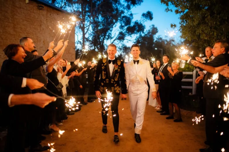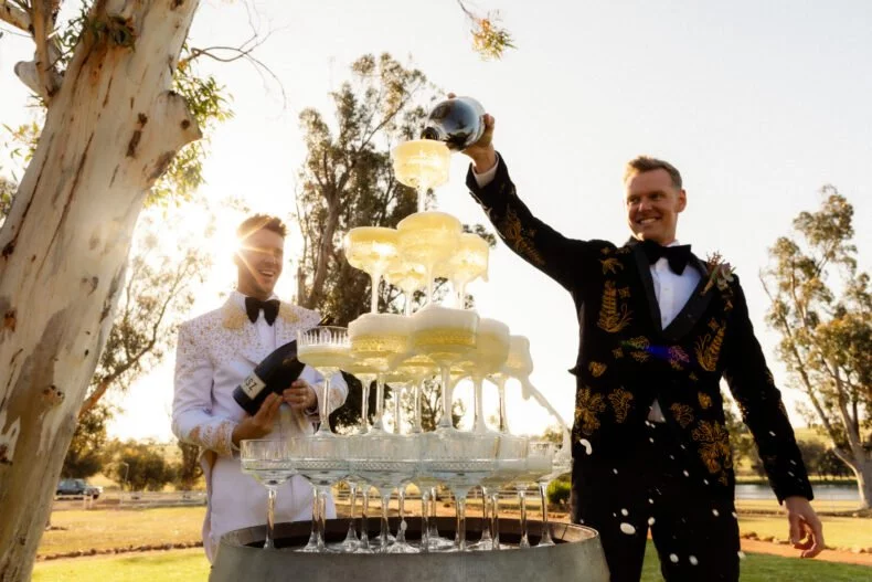 As well as having pretty cool jobs – Neil is the newsroom Chief of Staff at 10 News First Perth and Marty a senior zookeeper at Perth Zoo – these two also have a super-cute proposal story. During a three-week trip to South Australia, Marty proposed to Neil surrounded by 200 candles with his grandfather’s signet ring. “Marty is never lost for words but in this moment he was struggling to get his words out, and before he was able to say ‘will you marry me?’ I was already saying yes. He finally got down on one knee and asked me and I said yes once more,” Neil shares.