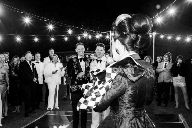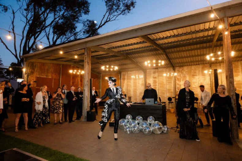 LITTLE LOL “When Neil and I started planning the wedding, one of the things I wanted was to book Ru Paul’s Drag Race Down Under contestant Art Simone as our MC. I first met Art in 2016 at the Broken Heel Festival in Broken Hill and instantly connected with her. Through Melbourne’s many lockdowns in 2020 we organised a virtual Drag Queen Bingo with Art via ZOOM. When we booked Art for the wedding, Neil told me that we should keep it a secret. Which turned out to be the worst kept secret of the wedding. Neil and I would have a couple of drinks with friends and it would come up all the time. While we were telling everyone we had booked Art, some how one of Neil’s aunts was telling other people we had booked Carlotta. I’m still not 100 per cent sure how that managed to get so mixed up.”