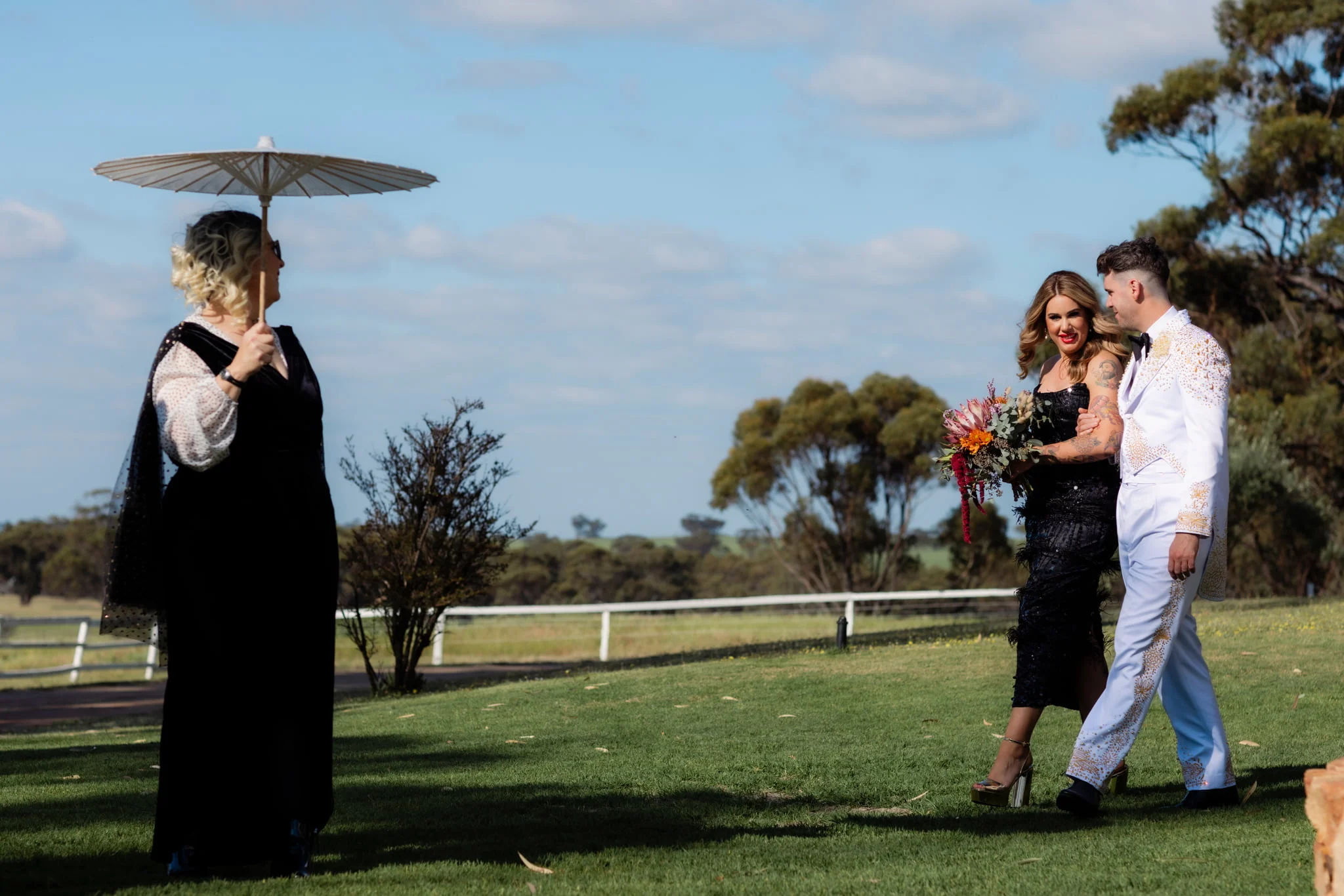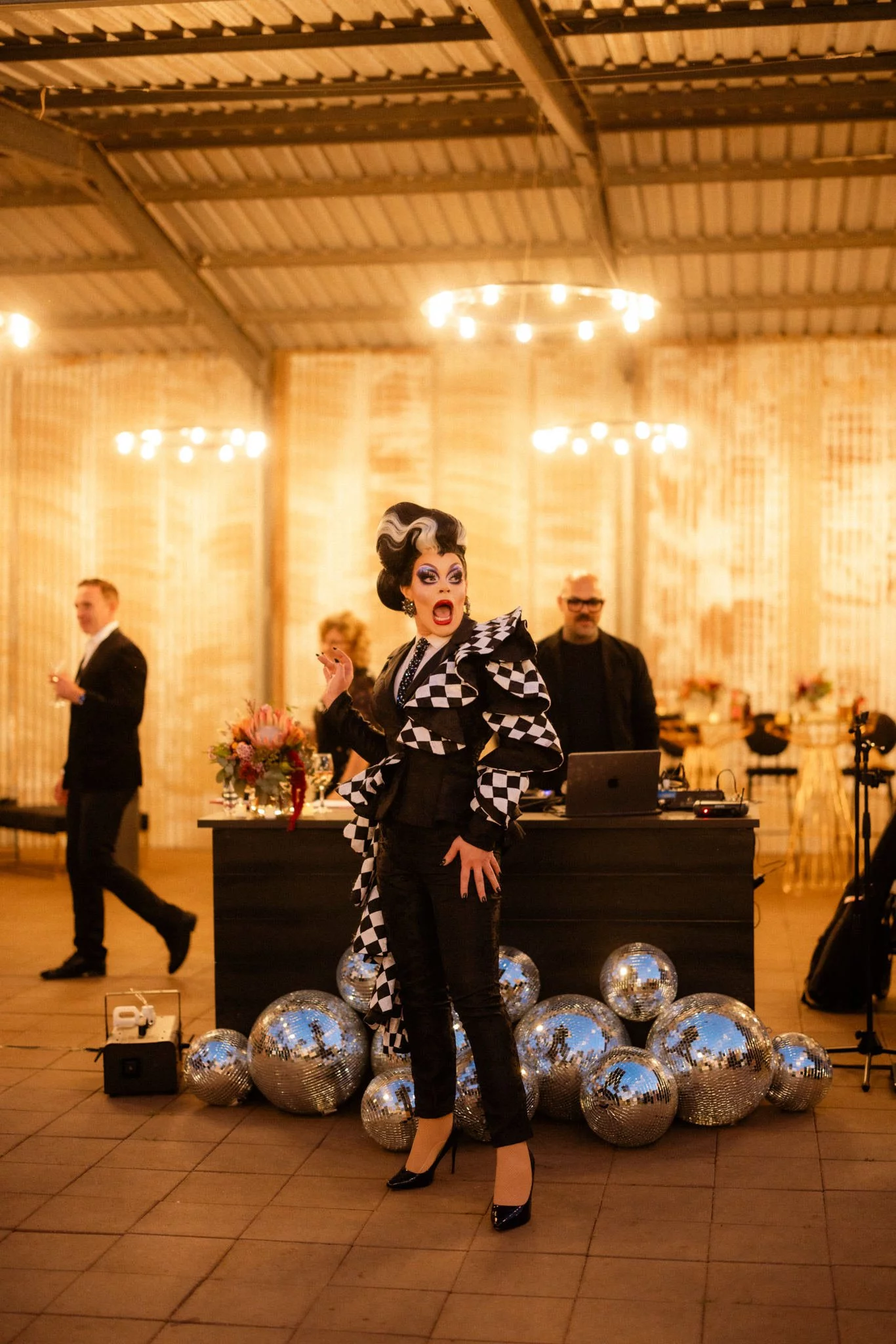 LITTLE LOL “When Neil and I started planning the wedding, one of the things I wanted was to book Ru Paul’s Drag Race Down Under contestant Art Simone as our MC. I first met Art in 2016 at the Broken Heel Festival in Broken Hill and instantly connected with her. Through Melbourne’s many lockdowns in 2020 we organised a virtual Drag Queen Bingo with Art via ZOOM. When we booked Art for the wedding, Neil told me that we should keep it a secret. Which turned out to be the worst kept secret of the wedding. Neil and I would have a couple of drinks with friends and it would come up all the time. While we were telling everyone we had booked Art, some how one of Neil’s aunts was telling other people we had booked Carlotta. I’m still not 100 per cent sure how that managed to get so mixed up.”