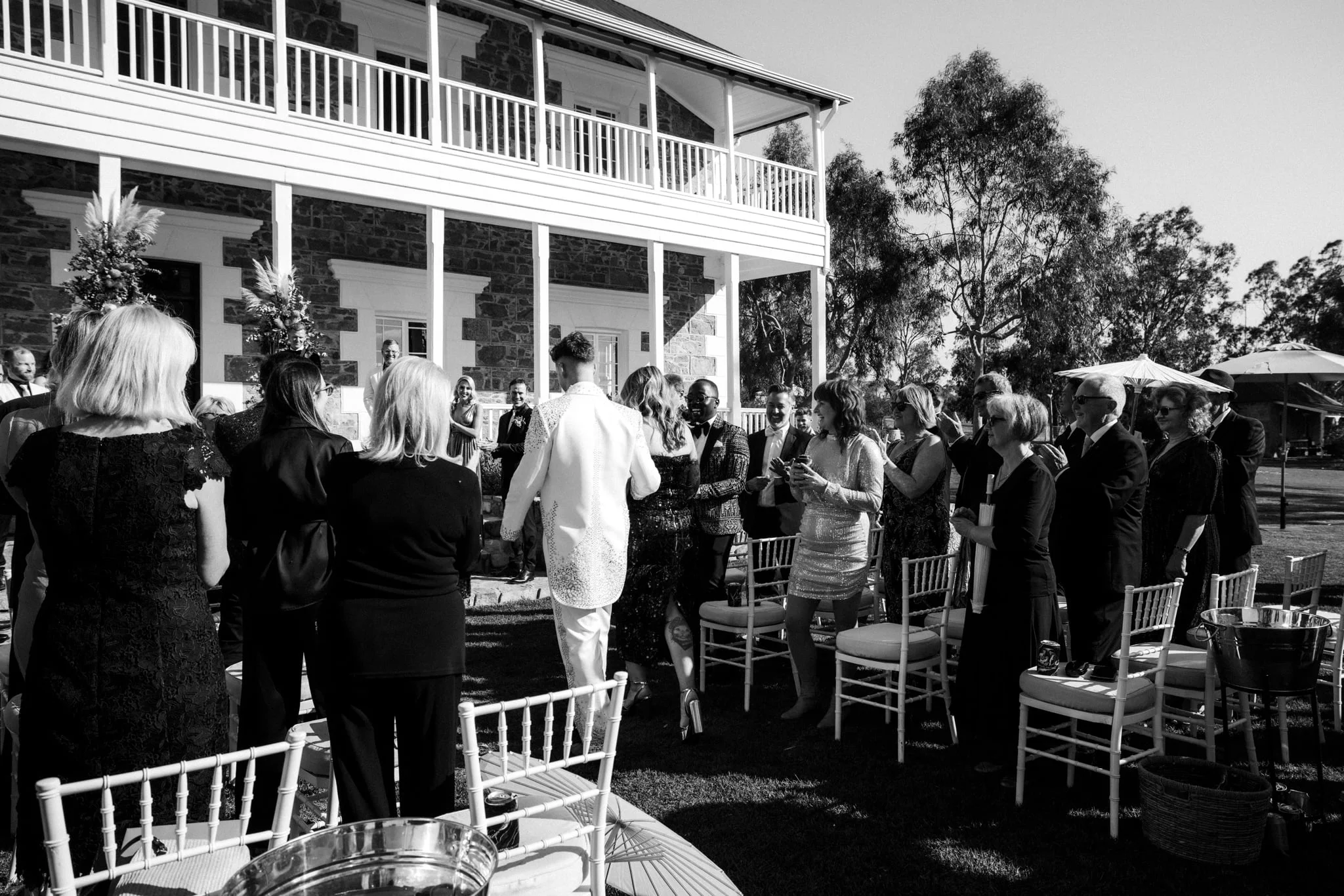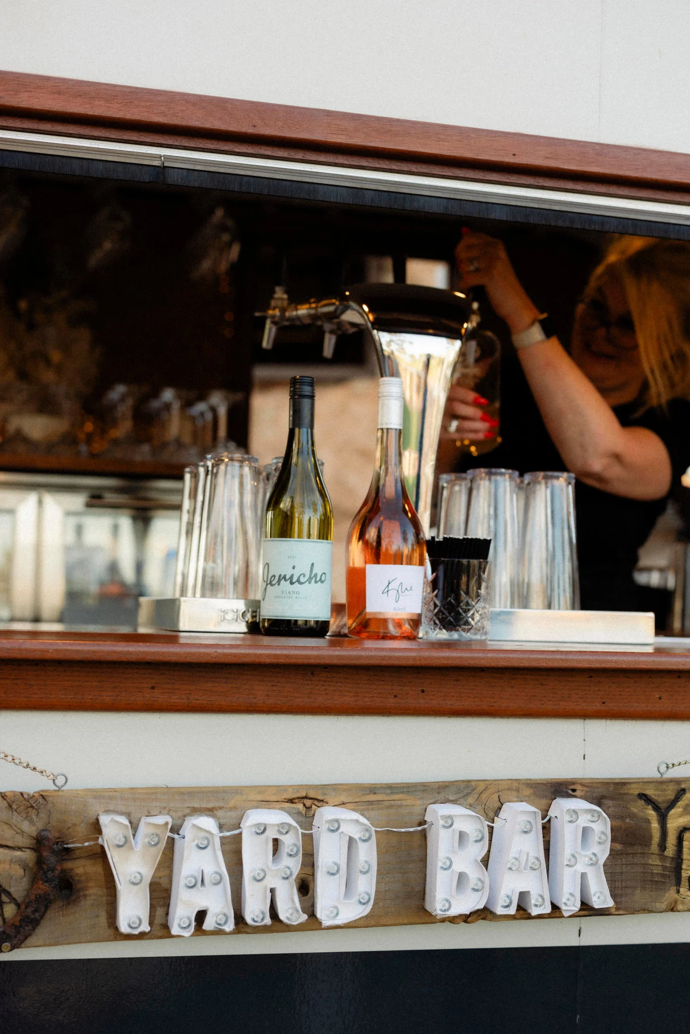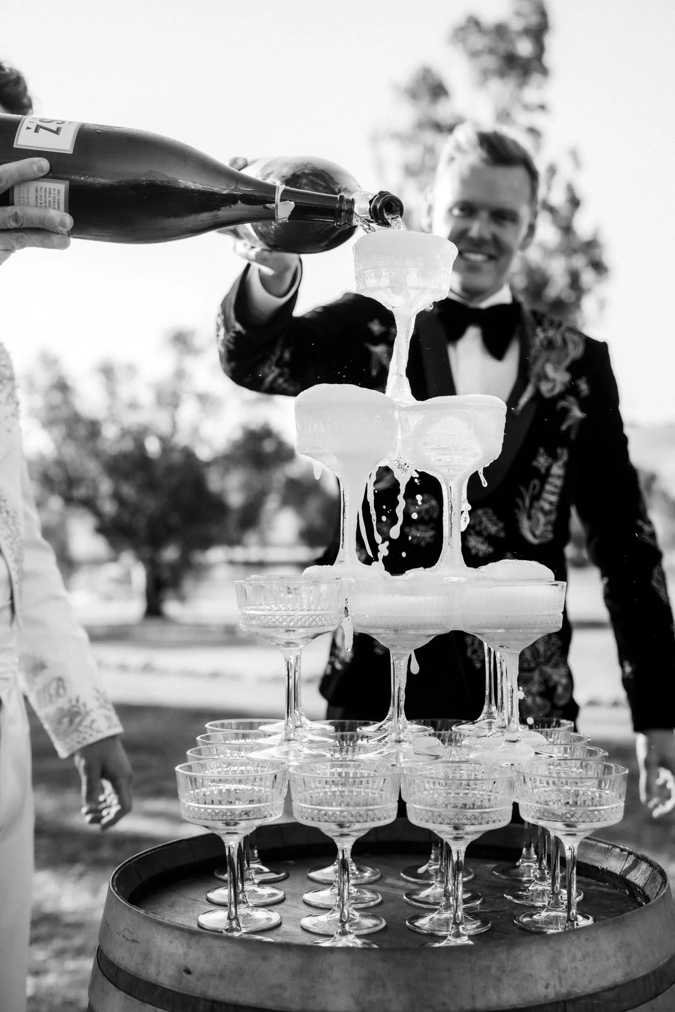 CONTRIBUTING VENDORS Photographer James Simmons Photography Cinematographer/Social Media Content Creator How Creative Media Florist Flowers for Weddings Perth Stationery Personalised Favours, The Wedding Star Wedding Invites Paperless Pos Wedding Website Say I Do Ceremony & Reception Venue Buckland Estate Catering Sultan Pepper (Food), The Yard Bar (Drinks) Wedding Favours Langmeil Winery Hire Items Black Label Events Lighting & Sound Hire DJ Sailor Entertainment David Lazarus, Art Simone, DJ Sailor Celebrant Marry Me Josh Rings Family heirloon, Greenwood Jewellers Transport Coach Hire Accomodation Cool Cabanas Glamping Parasols The Lantern Shop Custom acrylic fans Personalised Favours Biodegradable Confetti Cannons & Sparklers The Whole Bride THE GROOMS (Marty) Suit Reigner Clothing Shirt InStitchu Bowtie Gucci Earrings Michael Hill Shoes RM Williams Grooming Grmd Barber Co Groomspeople Suits Suit Vault Dresses Bec + Bridge, Eliya The Label, ASOS Earrings JT Luxe (Neil) Jacket Reigner Clothing Shirt & Pants InStitchu Groomspeople Dress Bronx and Banco