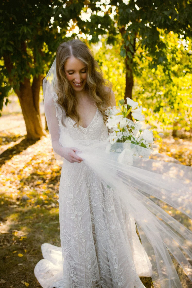 LITTLE LOL “There was a slight delay in me starting my walk down the aisle when my veil blew off. Lucky for us, our celebrant Shelley saved the day and put it back on, only for it to blow off again a few more times down the aisle and in the ceremony. It was a great ice breaker, everyone laughed it off and it made the moment feel relaxed.”