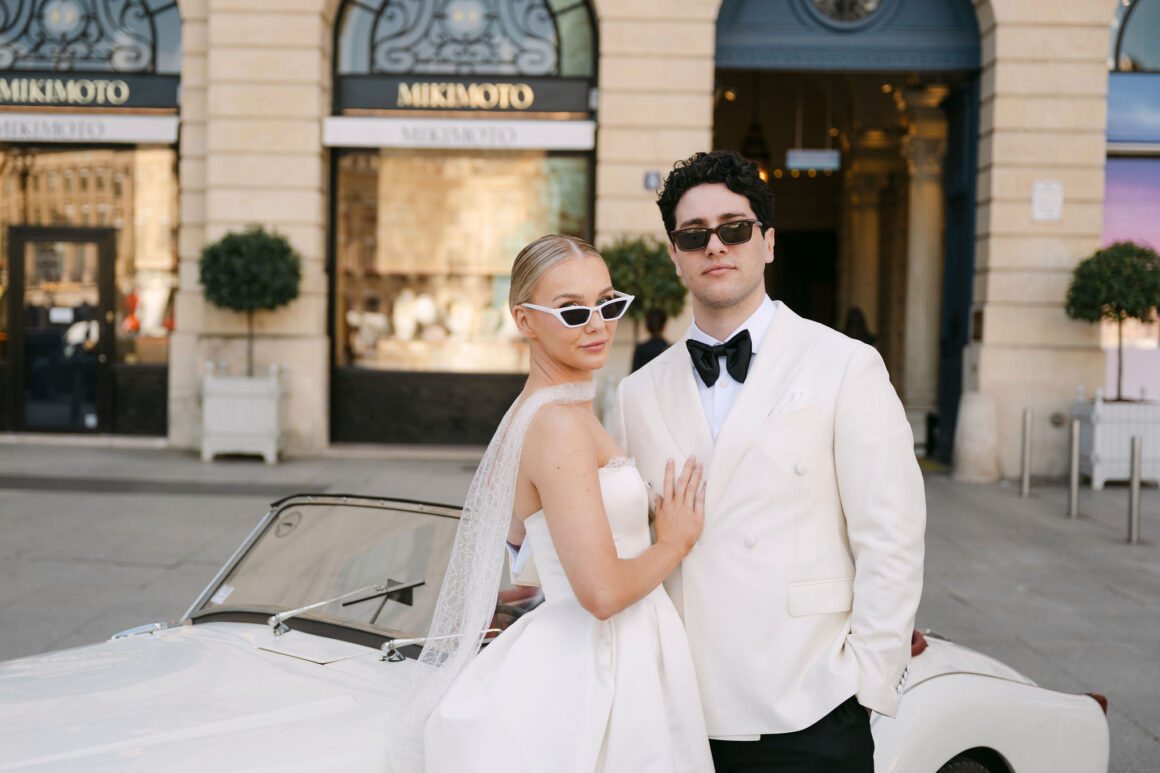 CONTRIBUTING VENDORS Photographer & Planner Alyssa Belkaci Photo Cinematographer Belkaci Films Ceremony Venue Jardin des Tuileries, Paris Hire Items Retro Motors Collection Celebrant Naïm Terrache – The Parisian Celebrant Rings Parade Jewellers Transport My Driver Paris THE BRIDE Bridal Gown, Veil & Neck Scarf Designer GP Creatives Shoes Betsey Johnson Sunglasses Amazon Hair & Makeup Parisian Makeup Fragrance Le Labo THE GROOM Suit, Jacket, Shirt & Pants Precision Tailoring and Alterations Sunglasses Local Supply Tie & Cufflinks Otaa Shoes Julius Marlow Watch Raymond Weil