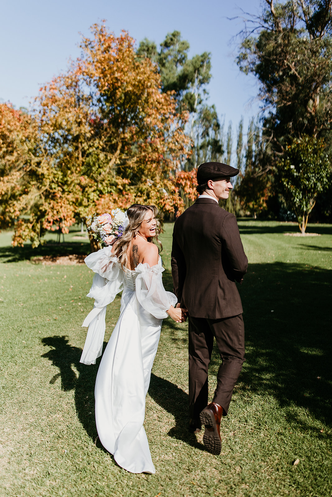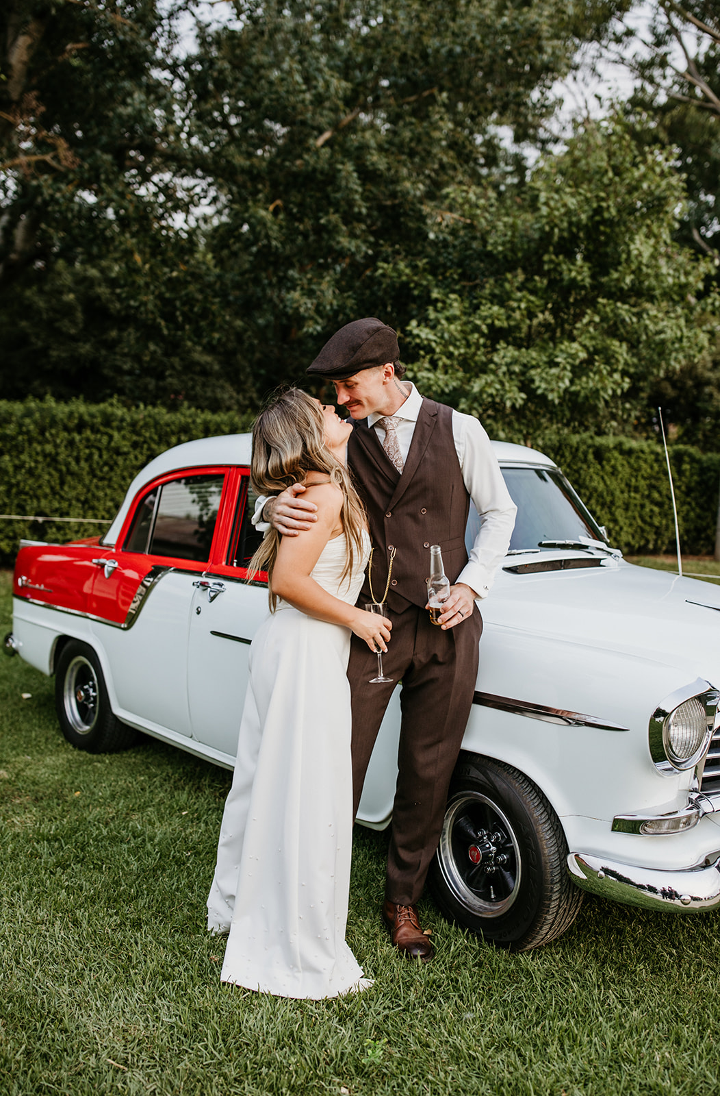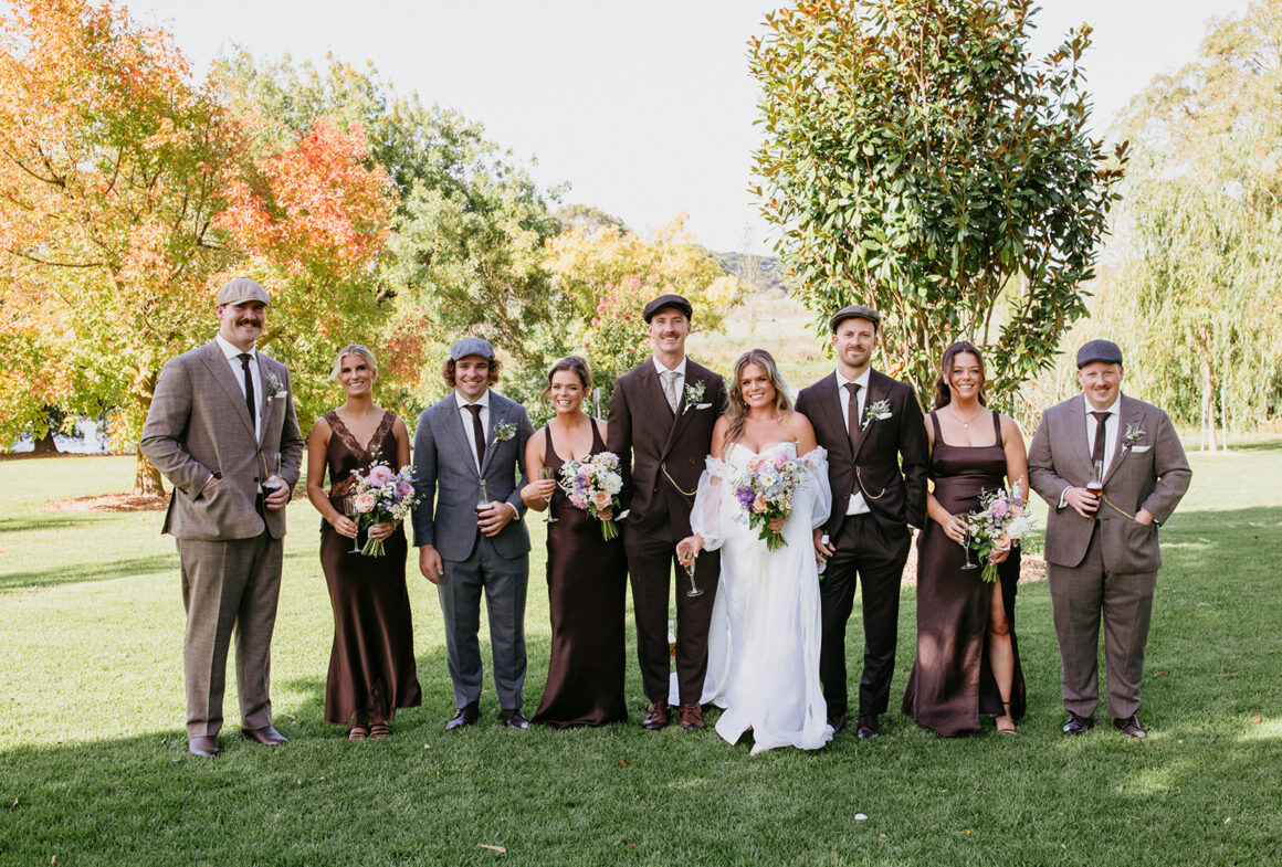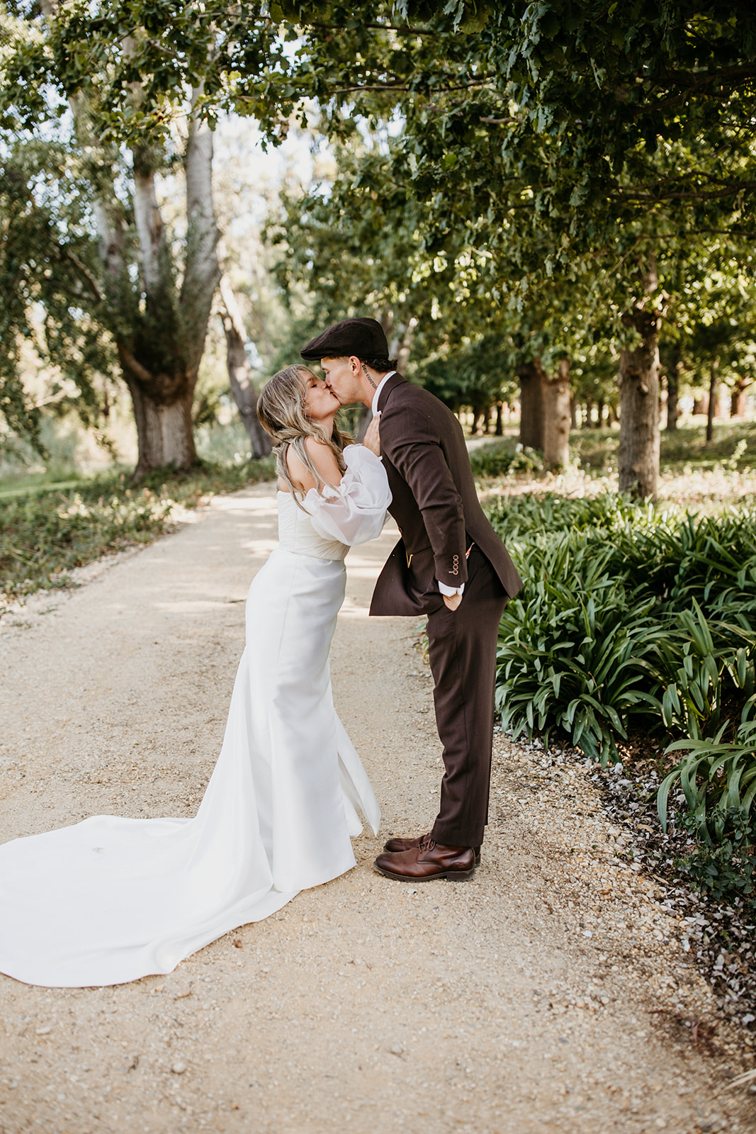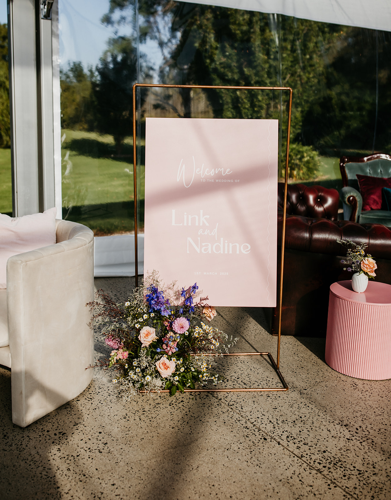 For Nadine and Link, Mewburn Park Homestead was an easy pick. But, when it came to narrowing down a theme, the pair were pulled in a few different directions. “We started with a Woodstock-inspired vibe,” the couple explained. “But when Link fell for the Peaky Blinders look, we knew we had to pivot.” Thankfully Nadine and Link had Lauren from ETC. Wedding Styling in their corner, who was able to create a “wild mash-up” of vibes. “Peaky Blinders/The Gentlemen meets Bridgerton, with just a hint of Woodstock boho. Sounds crazy, but it was perfection and [ETC] absolutely nailed it!”