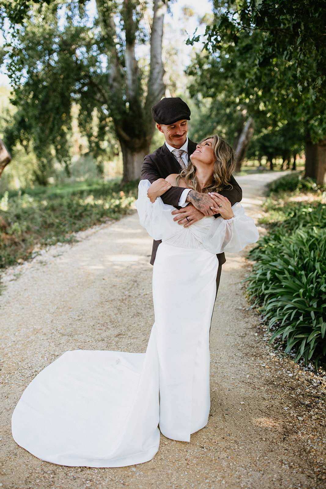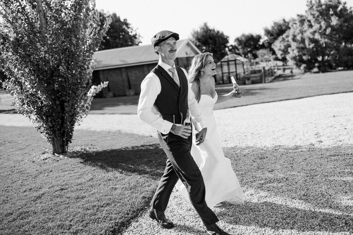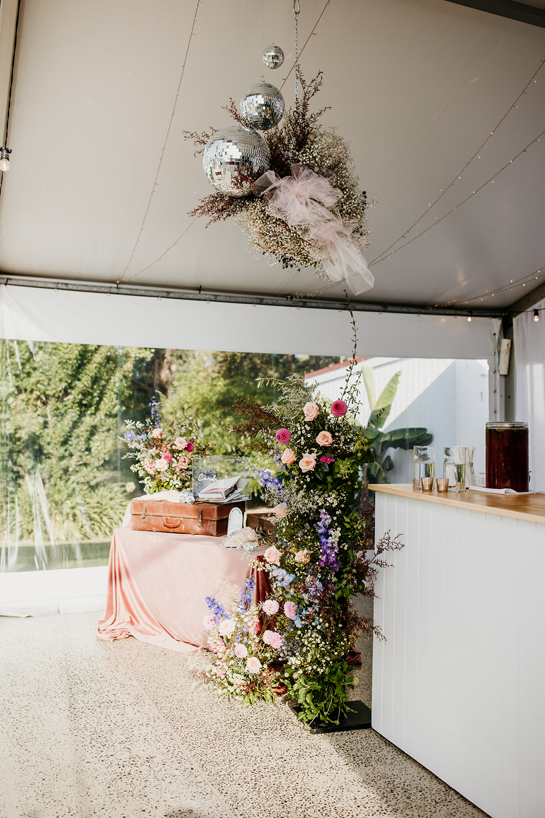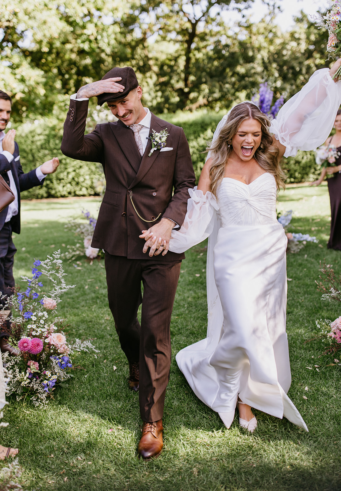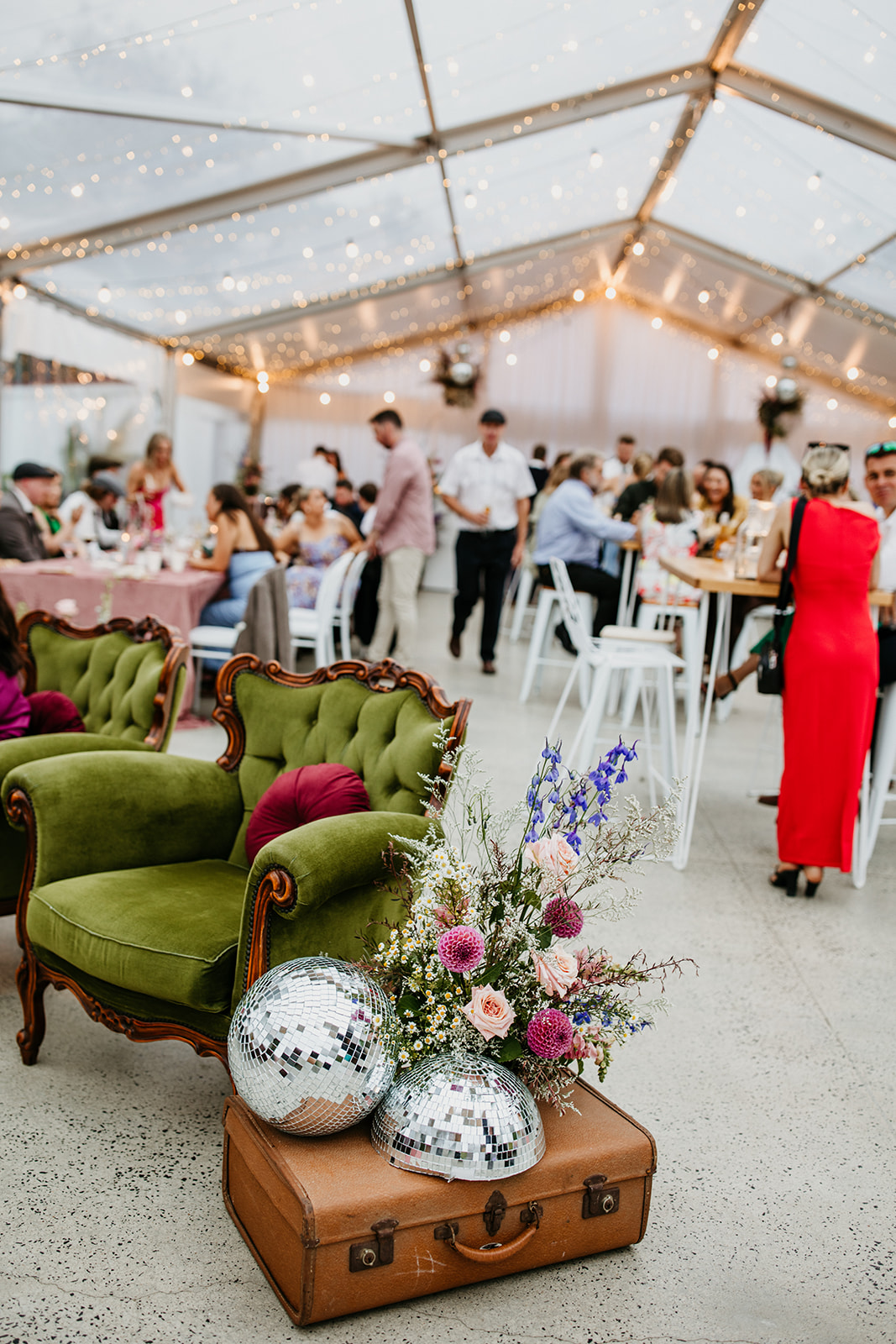 For Nadine and Link, Mewburn Park Homestead was an easy pick. But, when it came to narrowing down a theme, the pair were pulled in a few different directions. “We started with a Woodstock-inspired vibe,” the couple explained. “But when Link fell for the Peaky Blinders look, we knew we had to pivot.” Thankfully Nadine and Link had Lauren from ETC. Wedding Styling in their corner, who was able to create a “wild mash-up” of vibes. “Peaky Blinders/The Gentlemen meets Bridgerton, with just a hint of Woodstock boho. Sounds crazy, but it was perfection and [ETC] absolutely nailed it!”