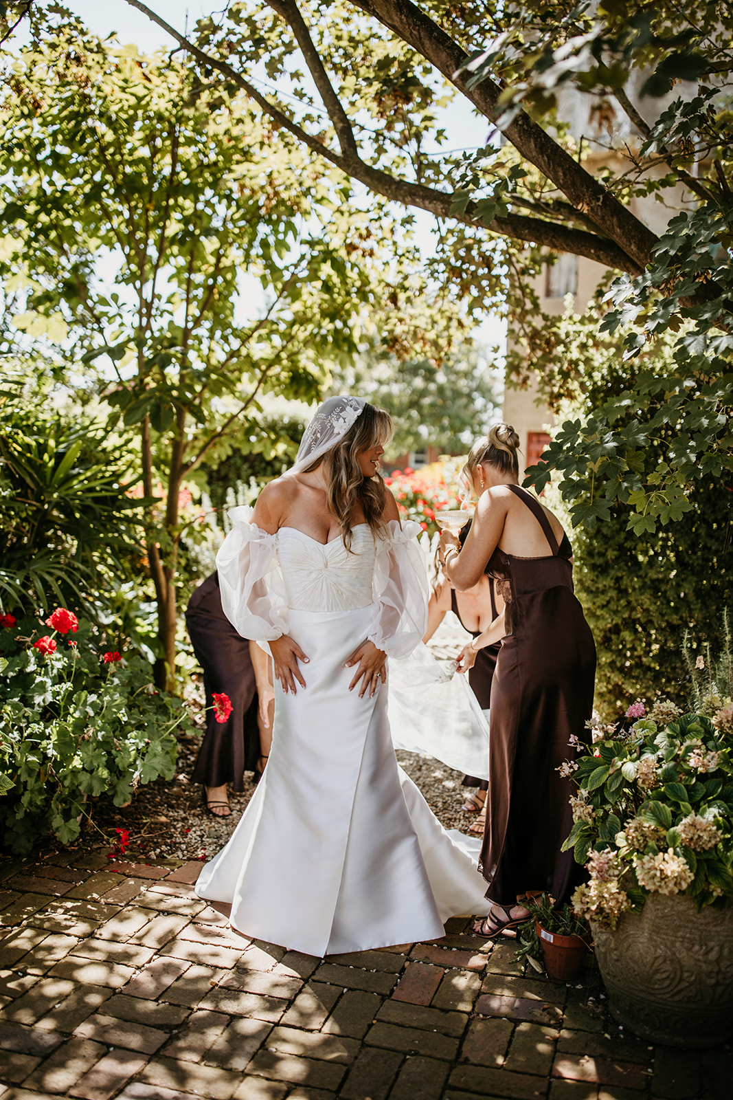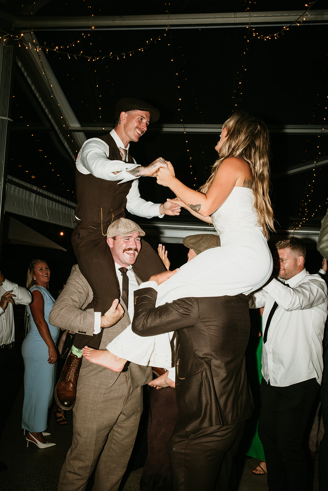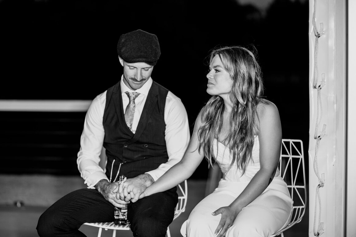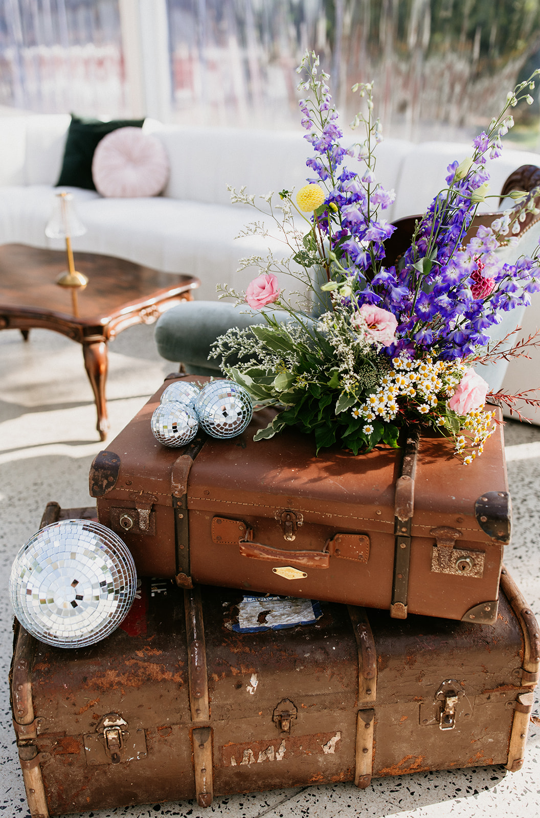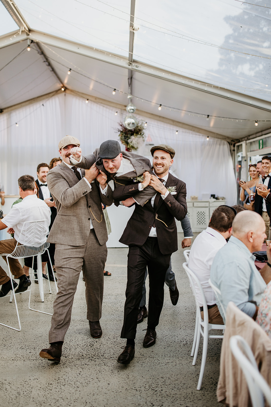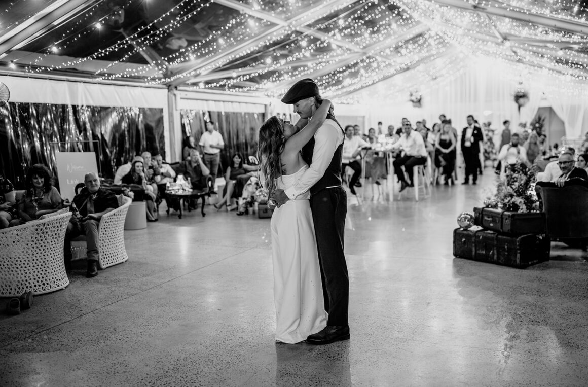 For Nadine and Link, Mewburn Park Homestead was an easy pick. But, when it came to narrowing down a theme, the pair were pulled in a few different directions. “We started with a Woodstock-inspired vibe,” the couple explained. “But when Link fell for the Peaky Blinders look, we knew we had to pivot.” Thankfully Nadine and Link had Lauren from ETC. Wedding Styling in their corner, who was able to create a “wild mash-up” of vibes. “Peaky Blinders/The Gentlemen meets Bridgerton, with just a hint of Woodstock boho. Sounds crazy, but it was perfection and [ETC] absolutely nailed it!”