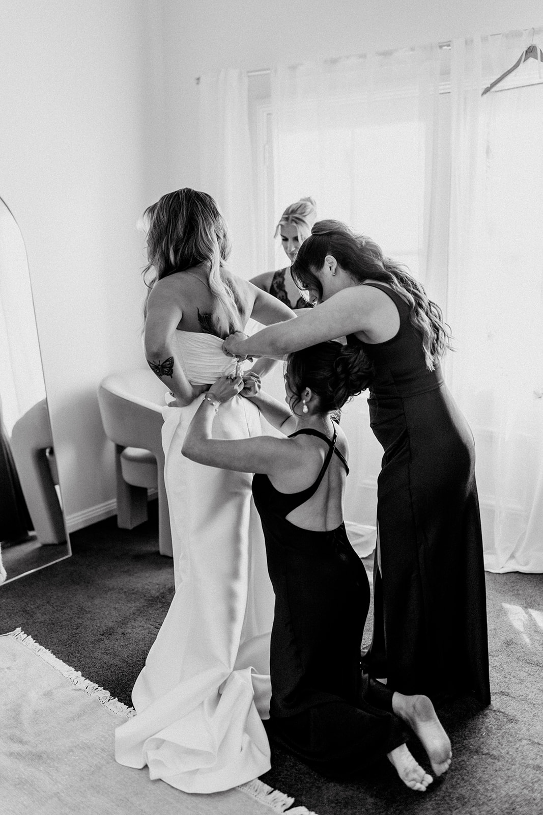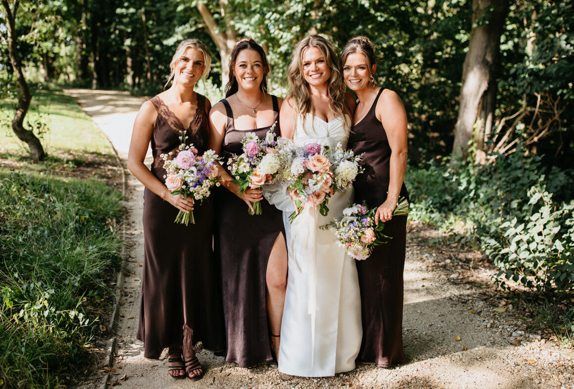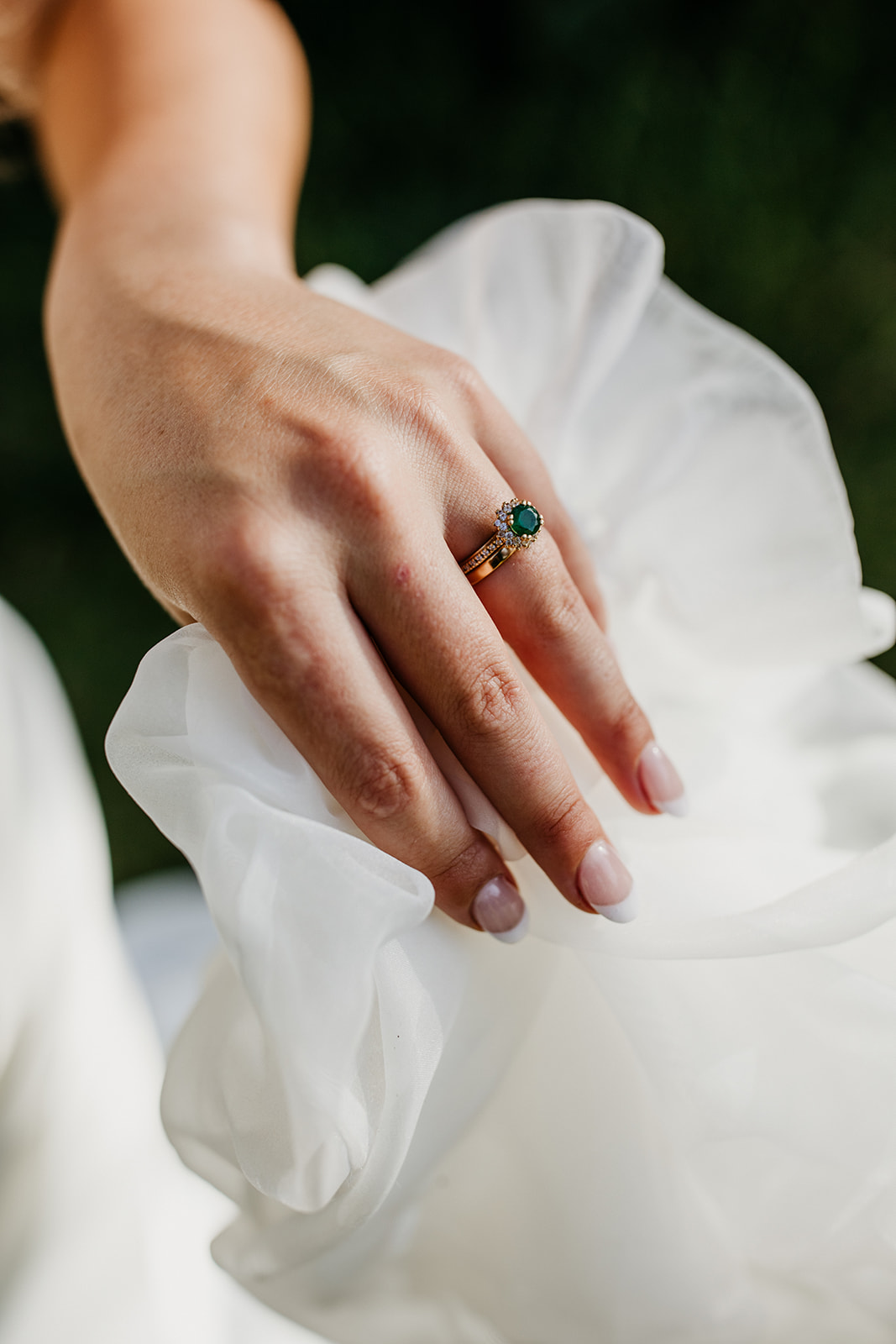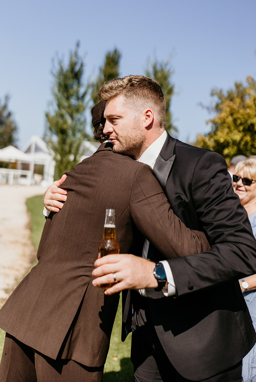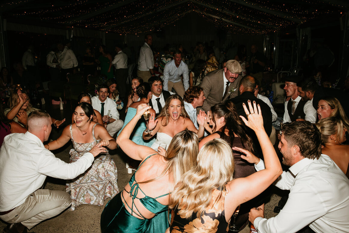 For Nadine and Link, Mewburn Park Homestead was an easy pick. But, when it came to narrowing down a theme, the pair were pulled in a few different directions. “We started with a Woodstock-inspired vibe,” the couple explained. “But when Link fell for the Peaky Blinders look, we knew we had to pivot.” Thankfully Nadine and Link had Lauren from ETC. Wedding Styling in their corner, who was able to create a “wild mash-up” of vibes. “Peaky Blinders/The Gentlemen meets Bridgerton, with just a hint of Woodstock boho. Sounds crazy, but it was perfection and [ETC] absolutely nailed it!”